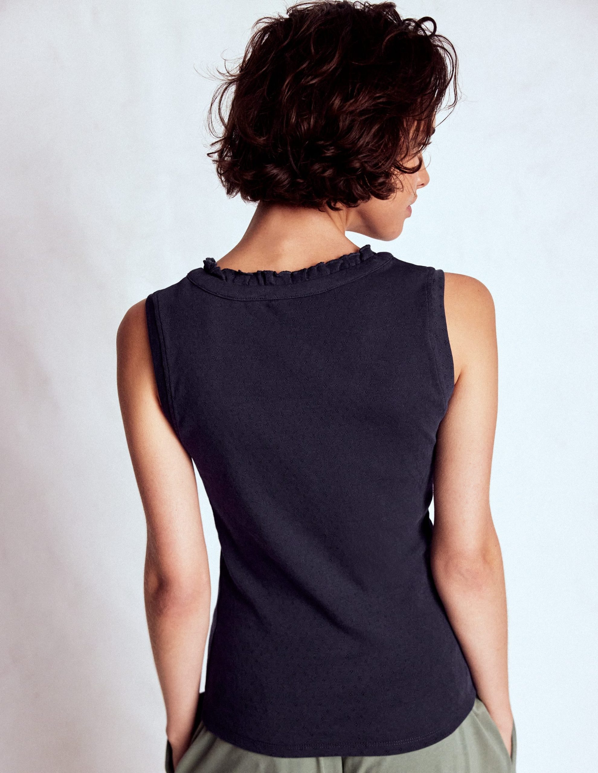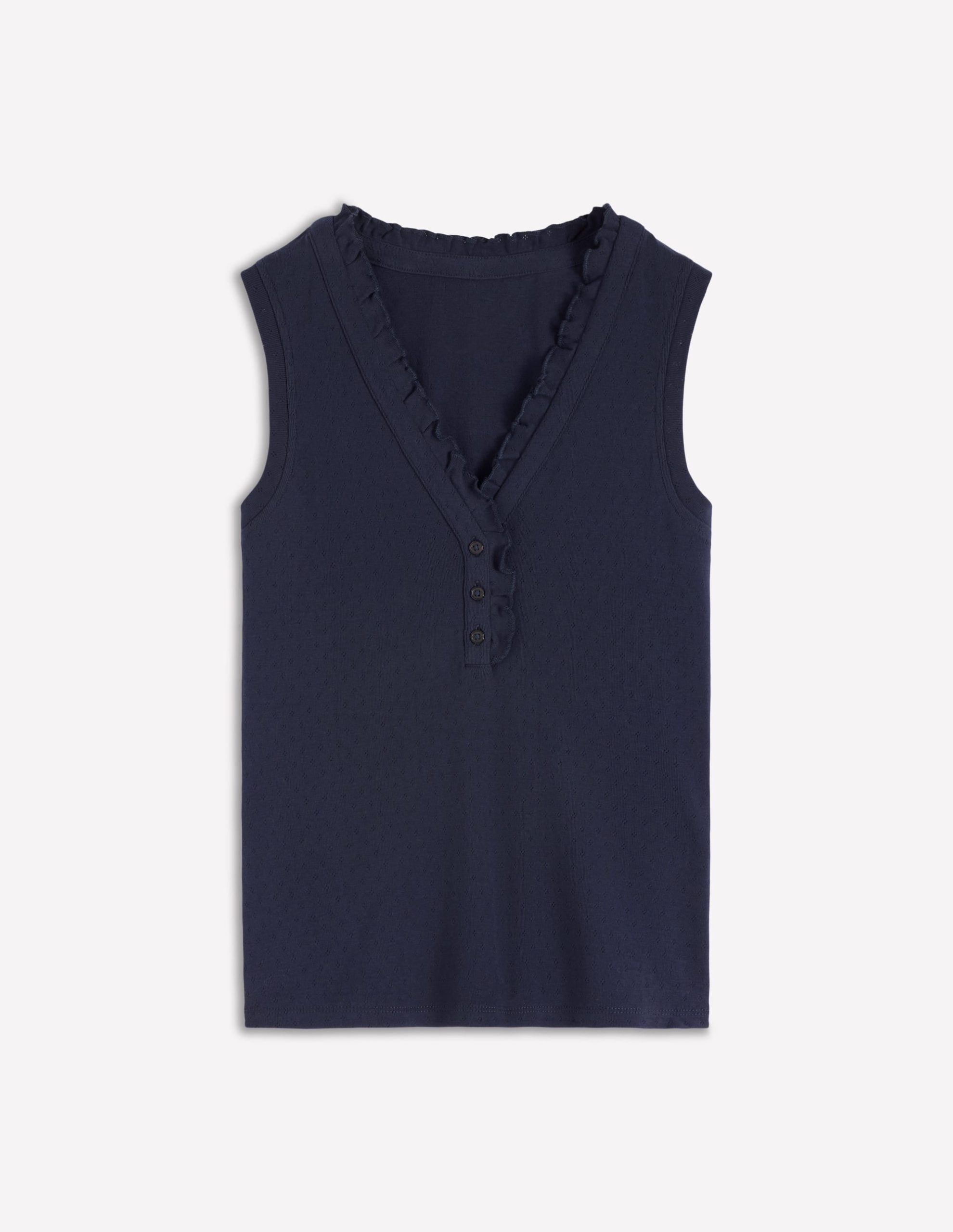 Soft. breathable cotton. a frilled neckline and button placket make our Henley pyjama vest a stylish bedtime choice.