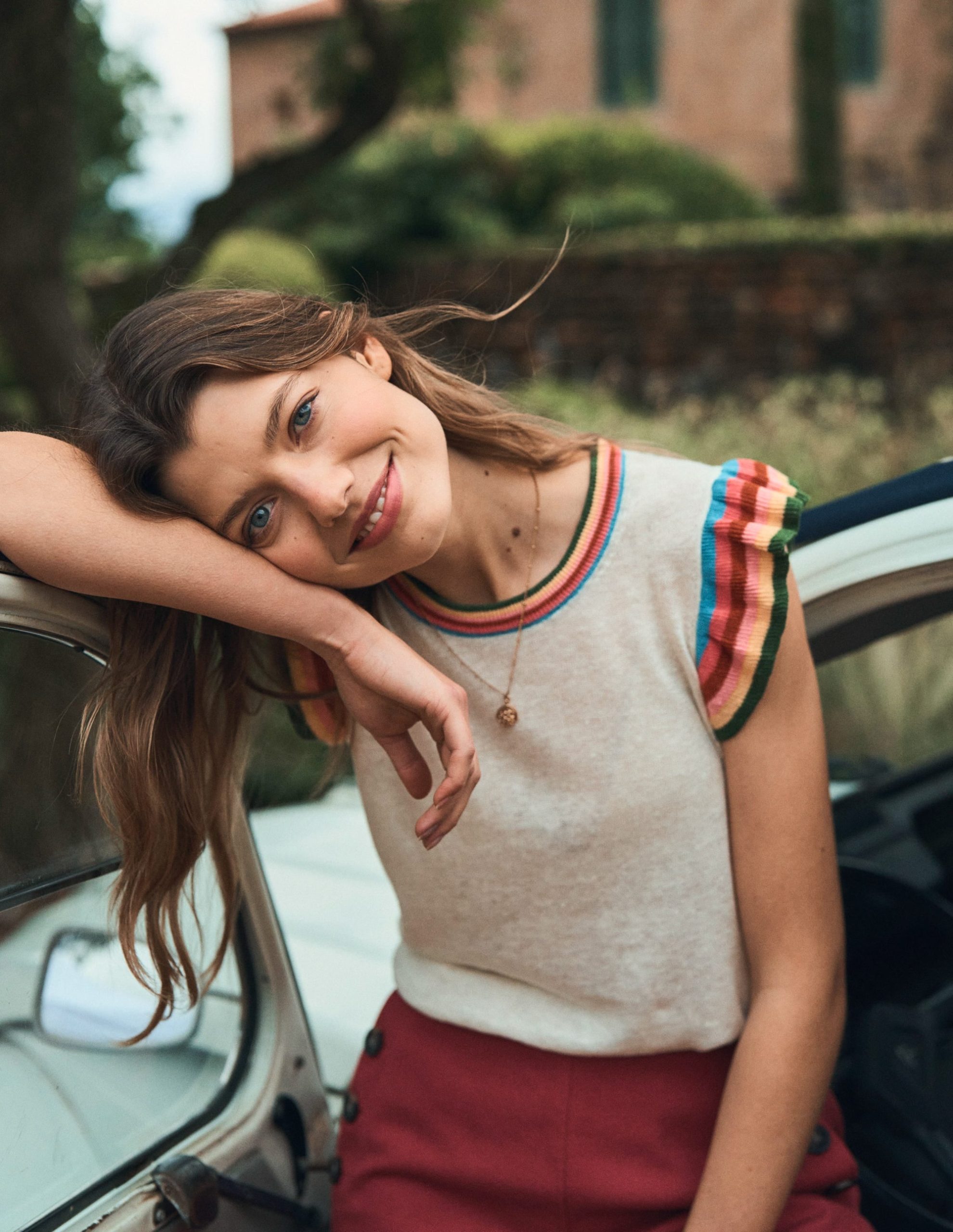 Too warm for a jumper. too cool for a T-shirt? Oh the British summer. We have given the classic tank a glow up by crafting it from 100% linen with frivolous frills just for fun.