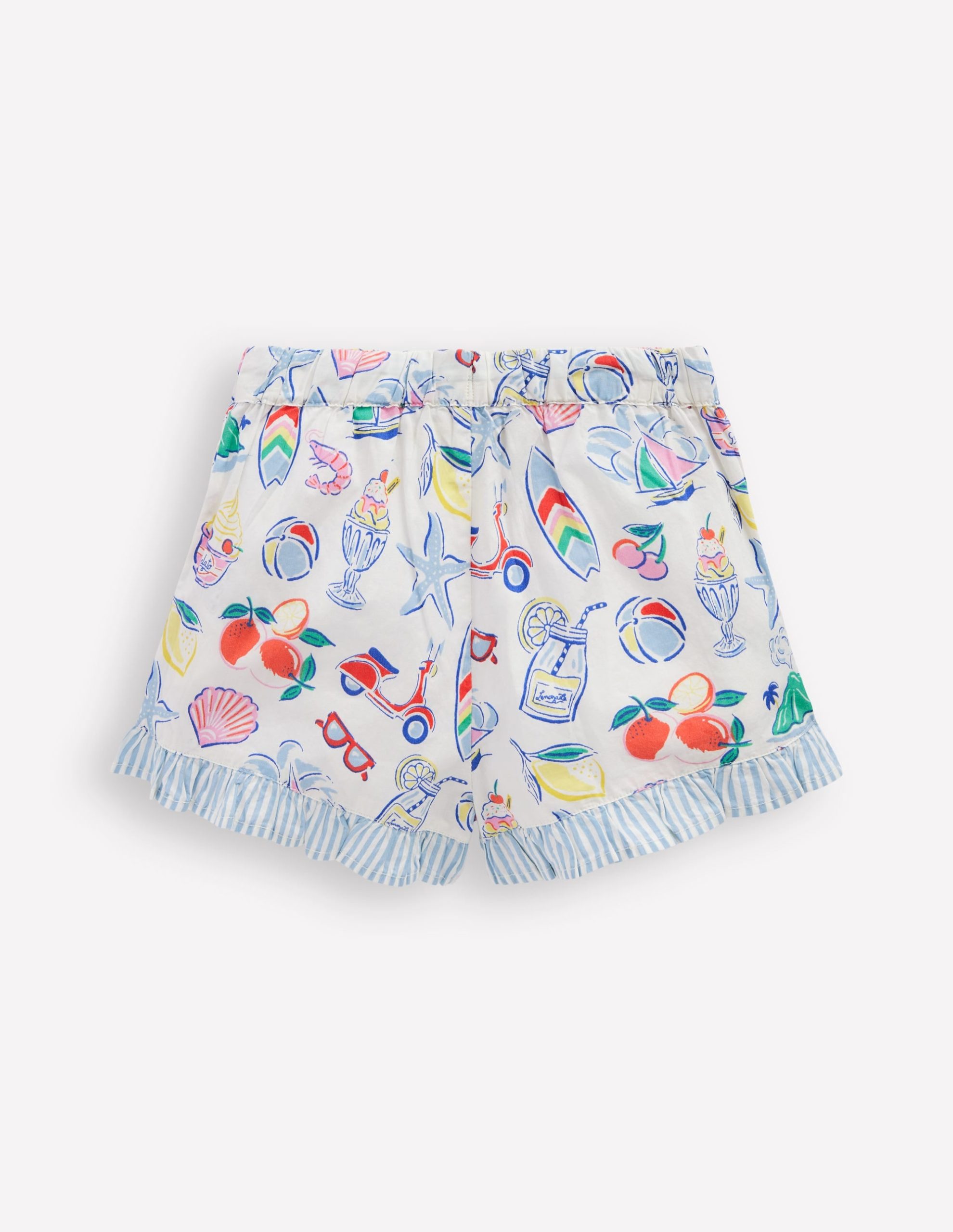 Cut from lightweight cotton. the Juniper shorts have delicate stitch detailing and frilly hems.