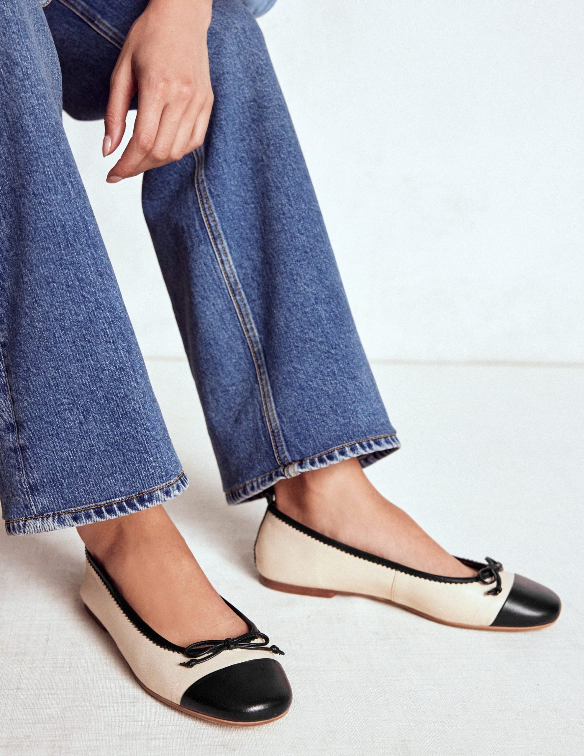 Kitty Flexi Sole Ballet Pumps-Ecru/Black