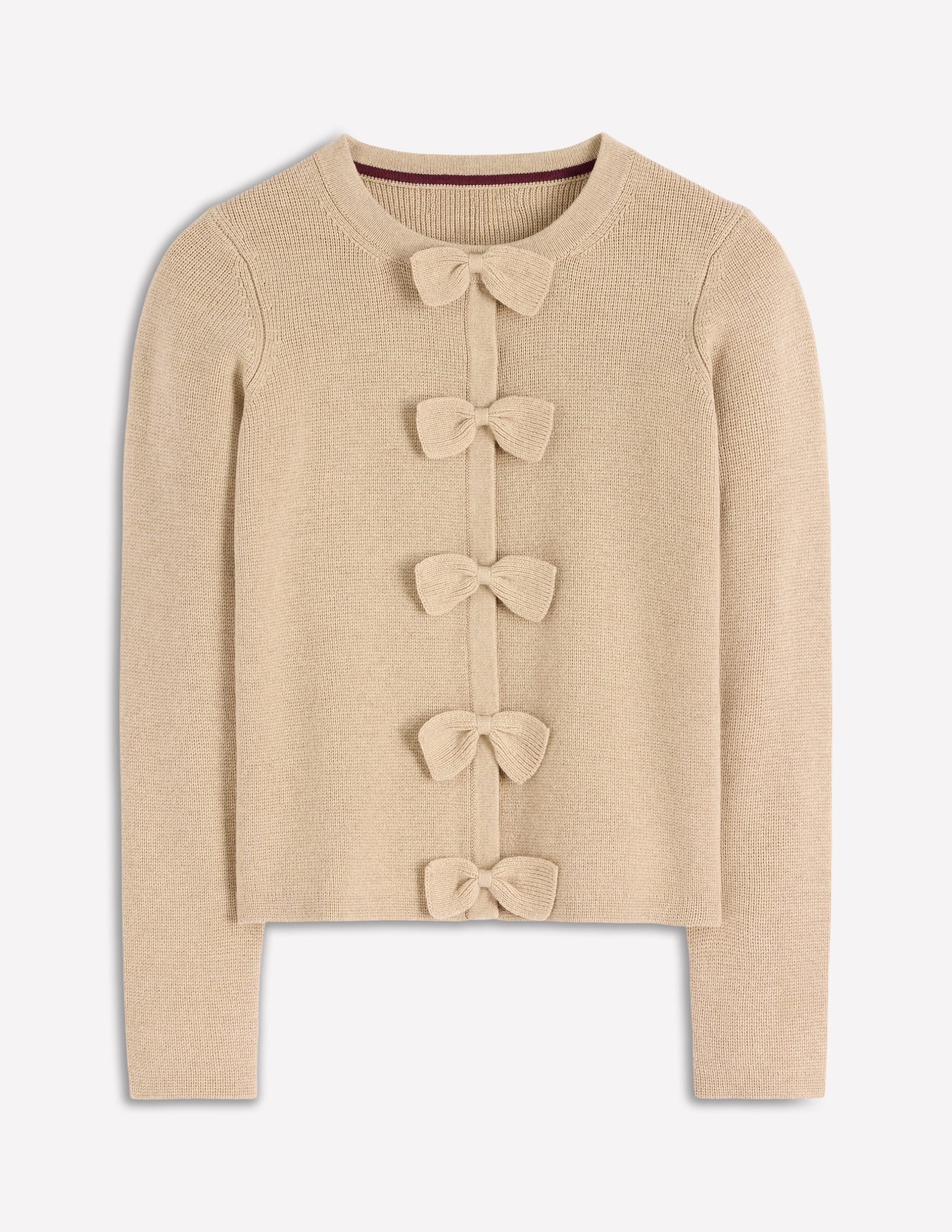 A cardigan with cute bows down the front (and hidden snaps underneath)? Yes please. This one is made extra special with a touch of cashmere for softness and a hint of luxury. Wear alone with jeans or layer over dresses.