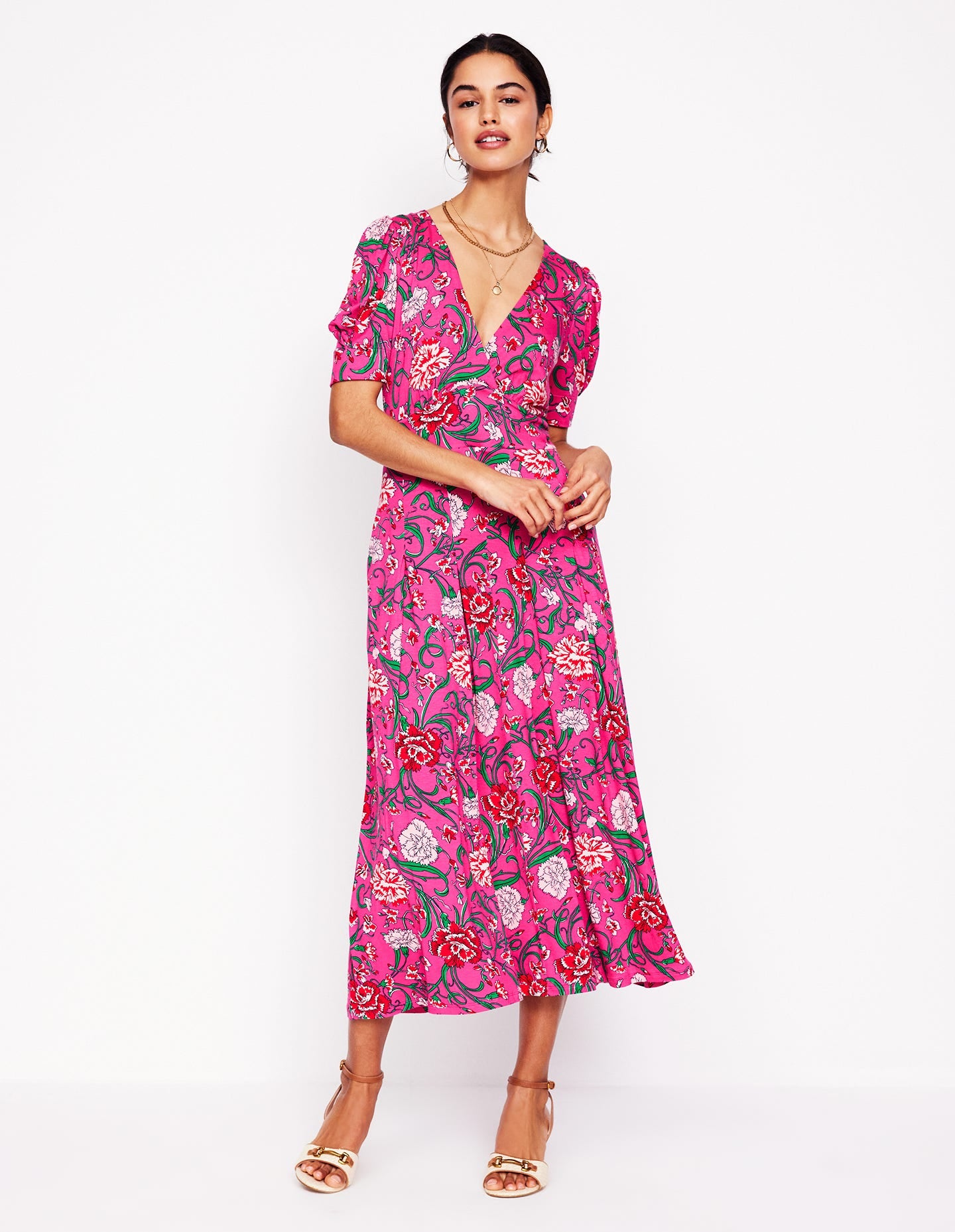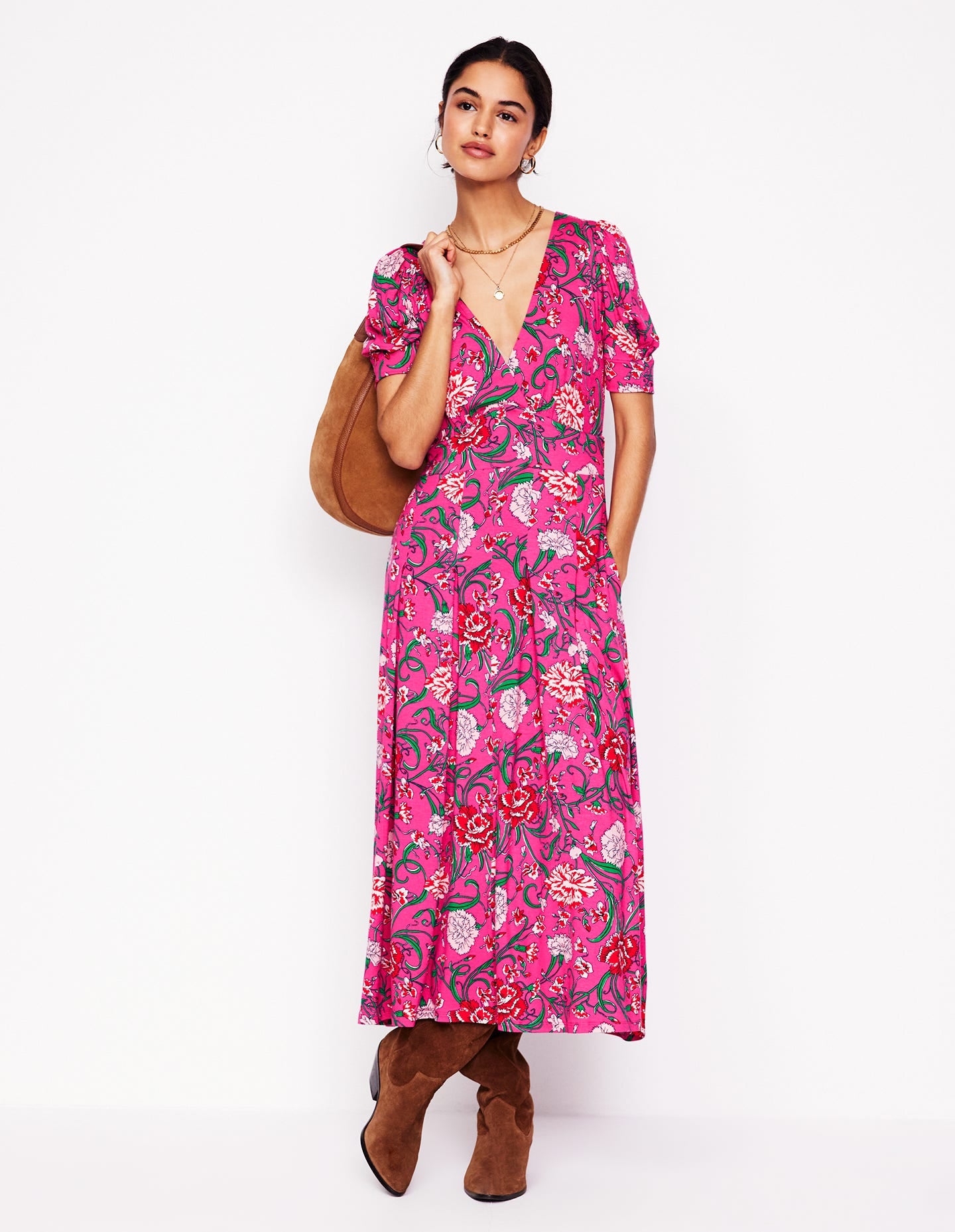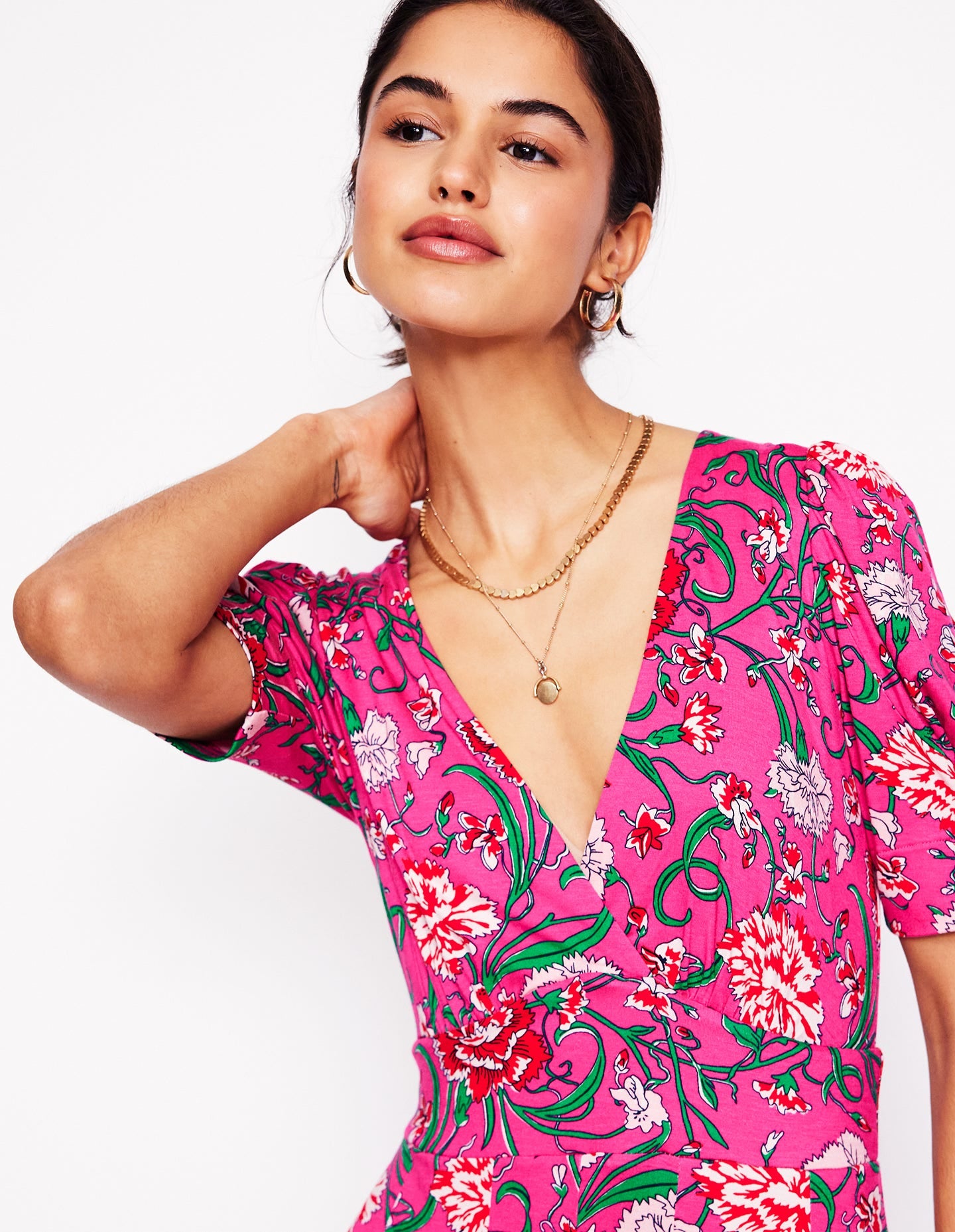 Kristen Pleated Jersey Dress-Pink Yarrow. Carnation Vine