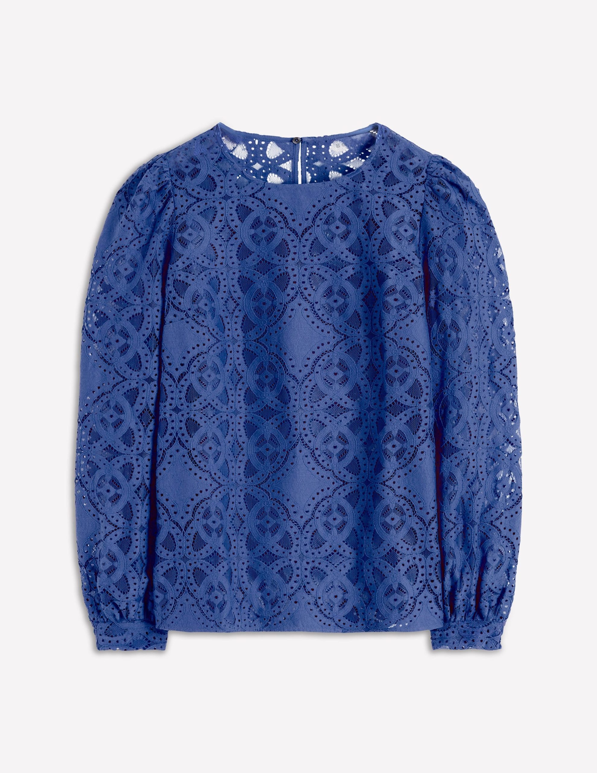 An easy-to-wear. yet elevated crew neck style with ever-so-slightly puffed sleeves and smock-backed cuffs. The sheer lace design makes it the perfect nice top to go with jeans. This will get you noticed in all the best ways.
