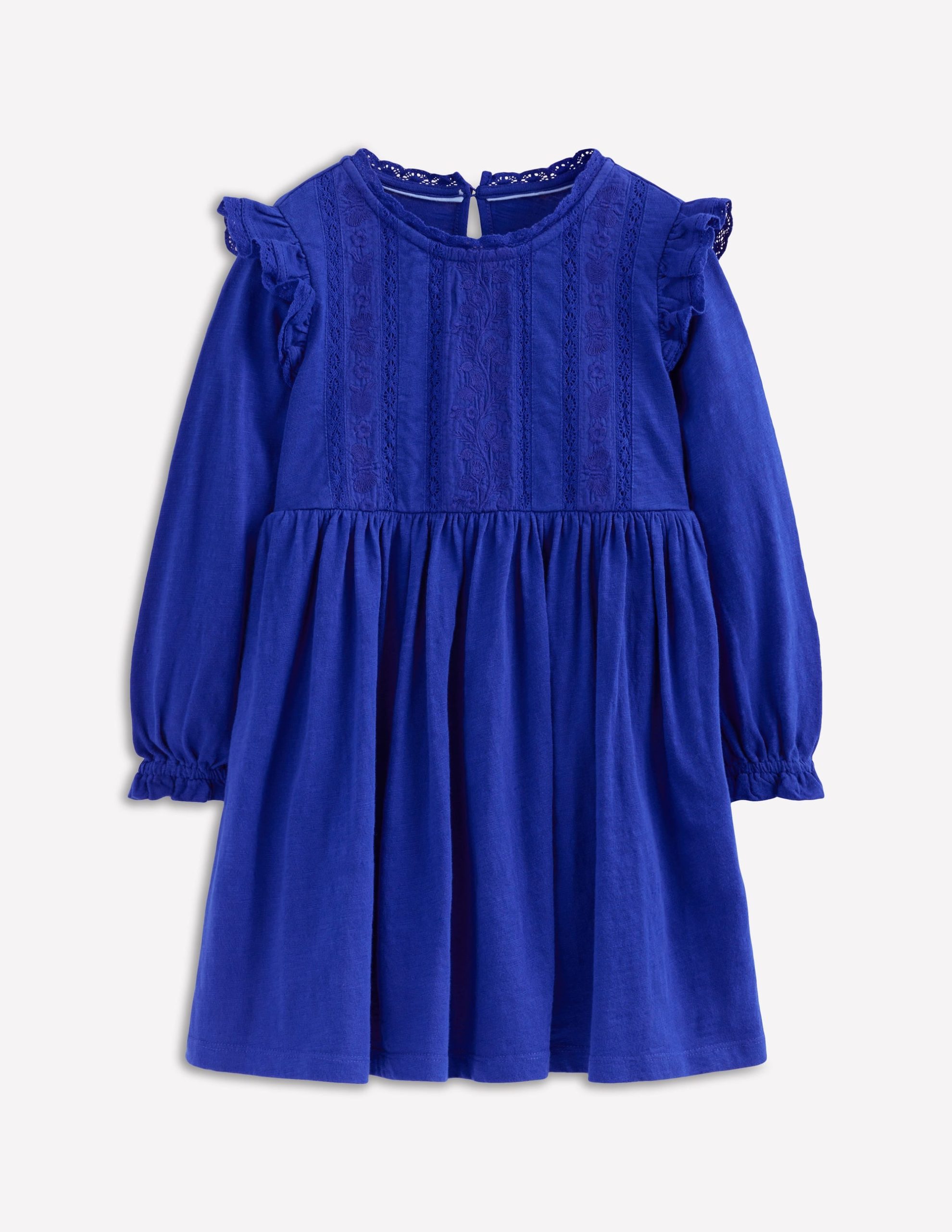 We’ve woven nostalgia into the fabric of this adorable lace trim dress. The soft cotton jersey and relaxed fit make it comfy for weekday play and pretty enough for Sunday best.