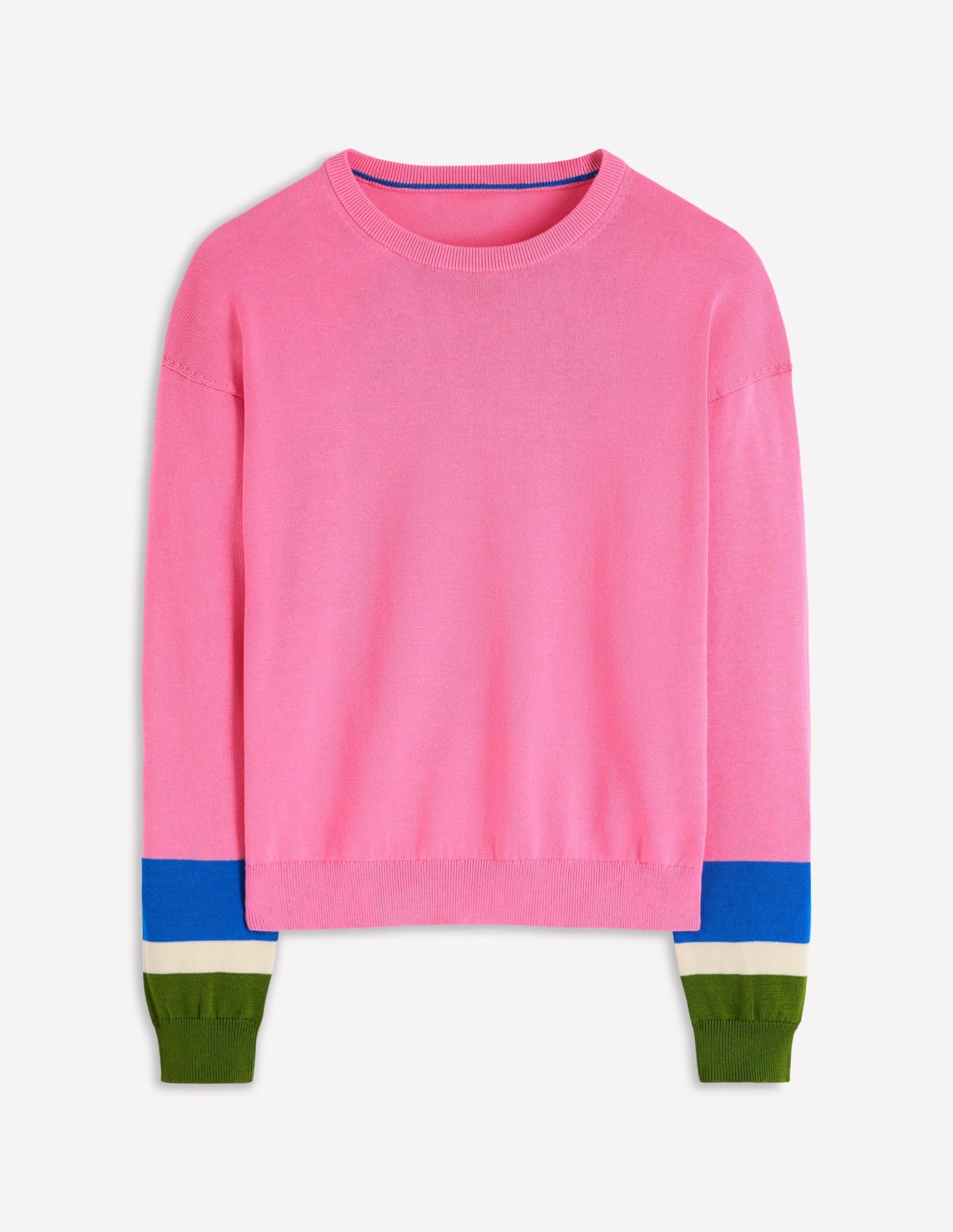 Lara Relaxed Cotton Jumper-Pink Lemonade. Cuff Stripe