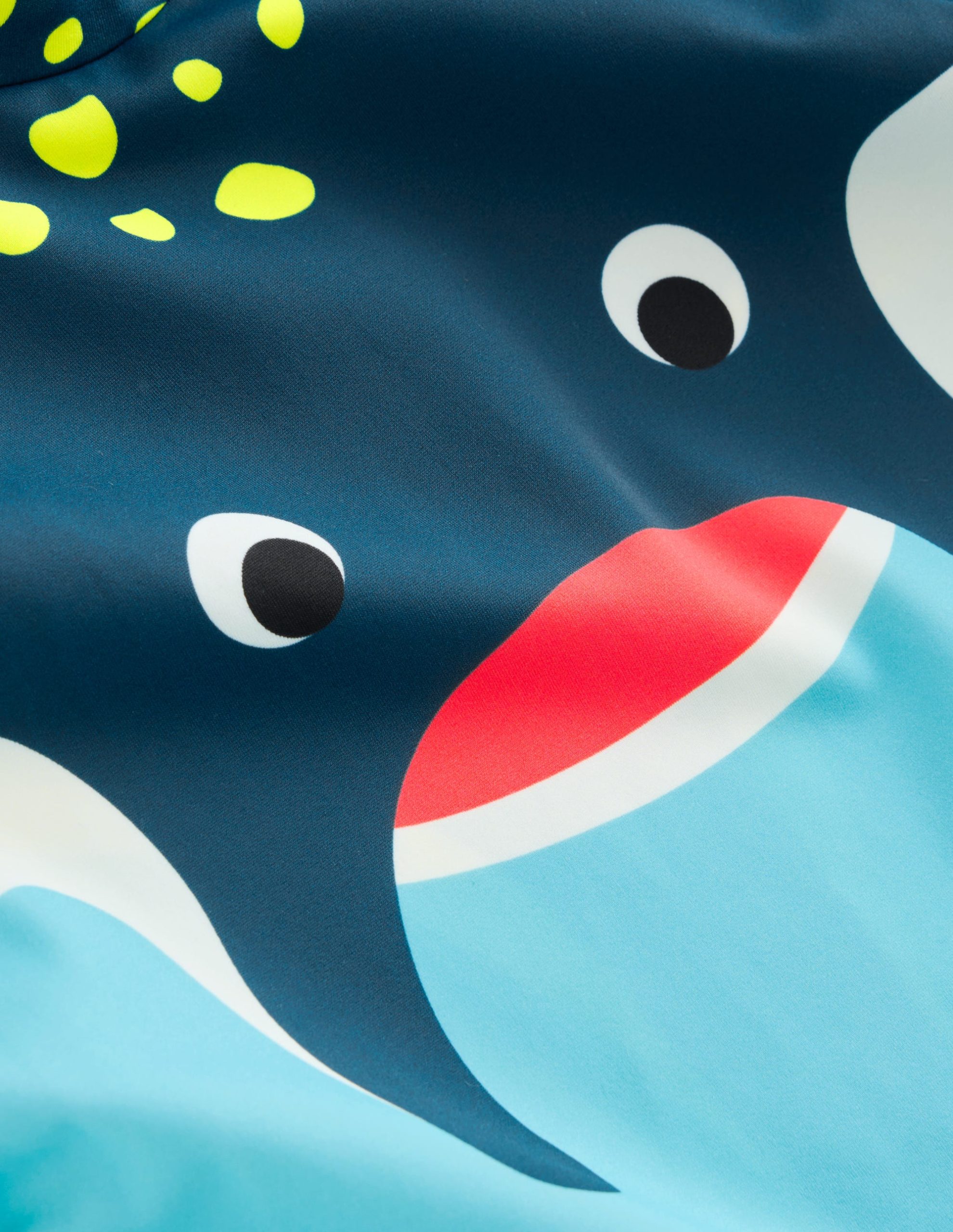 Ideal for those long beach days. this pull-on rash vest helps shield skin from UV rays thanks to its protective UPF50+ fabric. The bright pattern makes Minis easy to spot too.