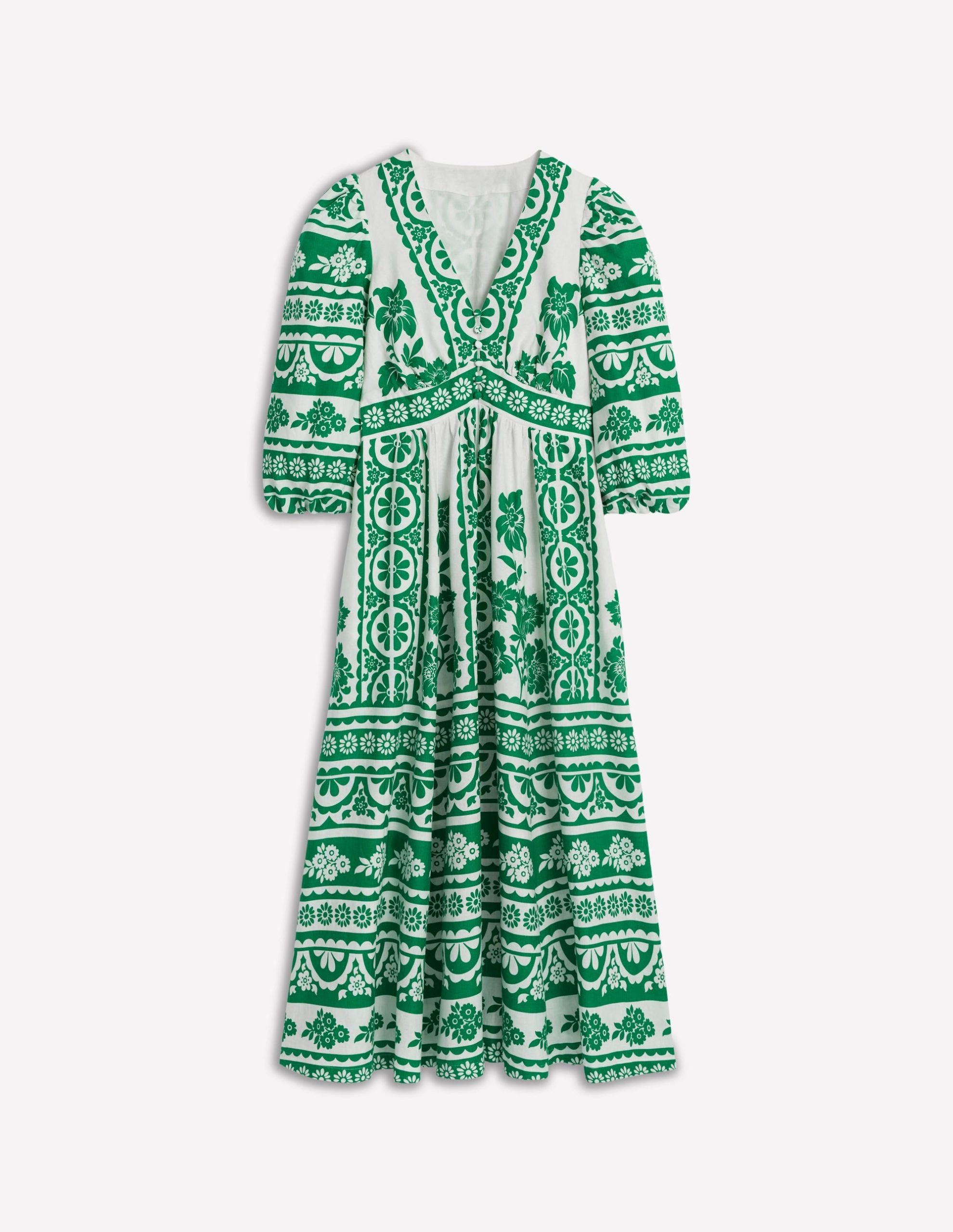 Lola Blouson Maxi Dress-Rich Emerald. Ornate Tropics
