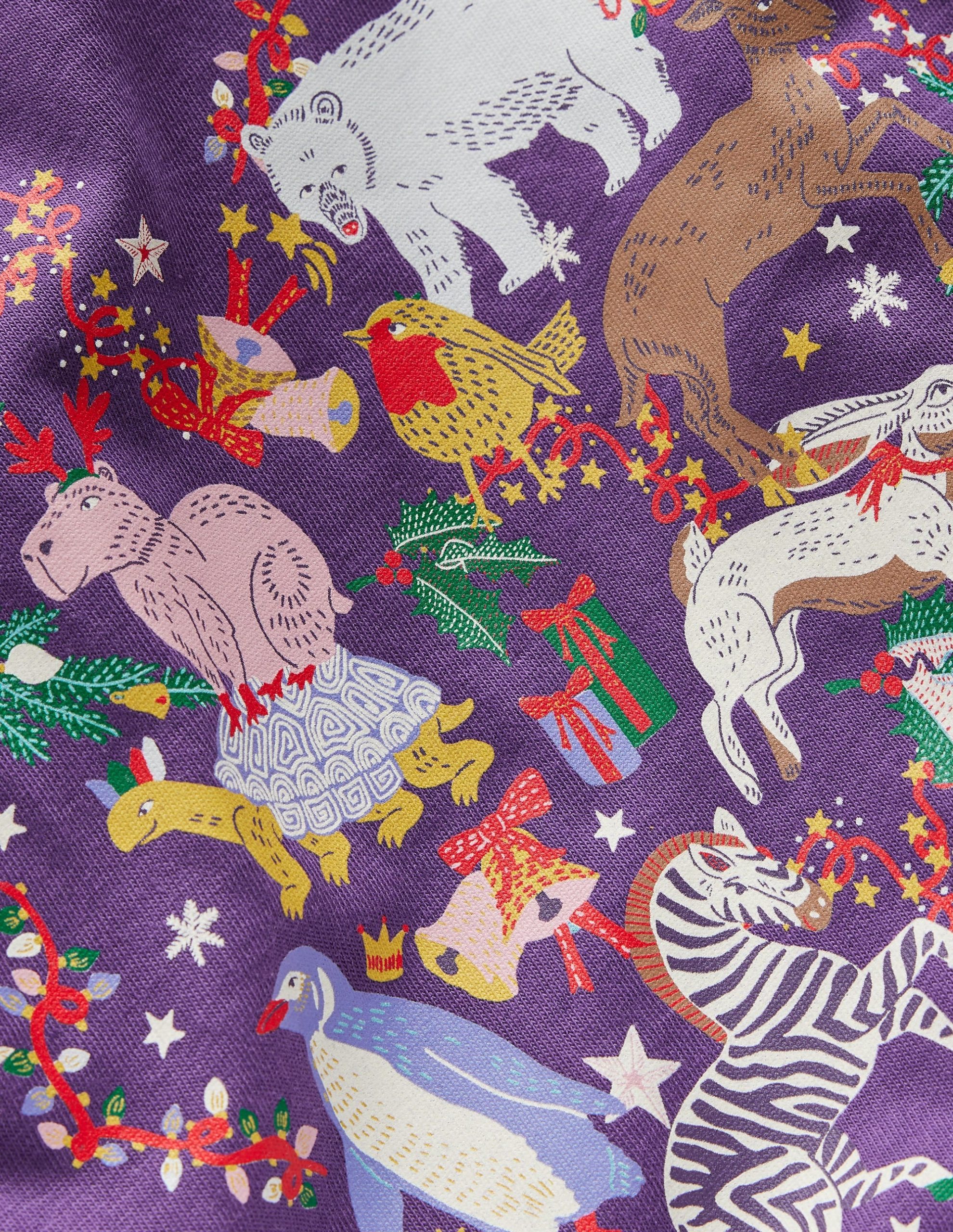 A soft cotton T-shirt with long sleeves topped with frills. We added an animal party within a heart and a touch of glow-in-the-dark magic. Charge it in daylight to see the design shine.