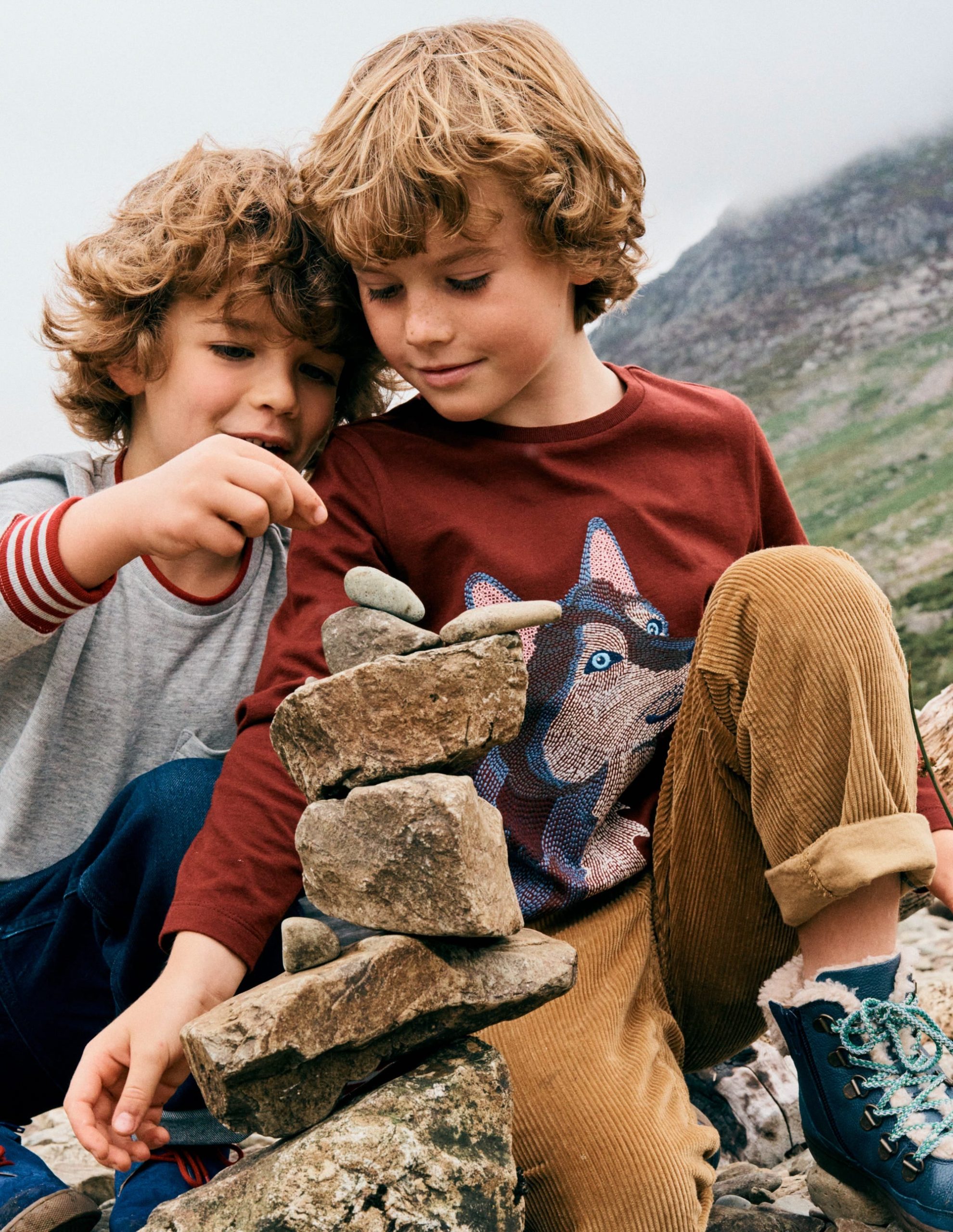 Fiery dragons. trains and tusky walruses? Meet Minis’ favourite things (made from teeny tiny stitches) on our cotton T-shirts and let their imaginations run wild. Our Christmas print is brimming with magic.