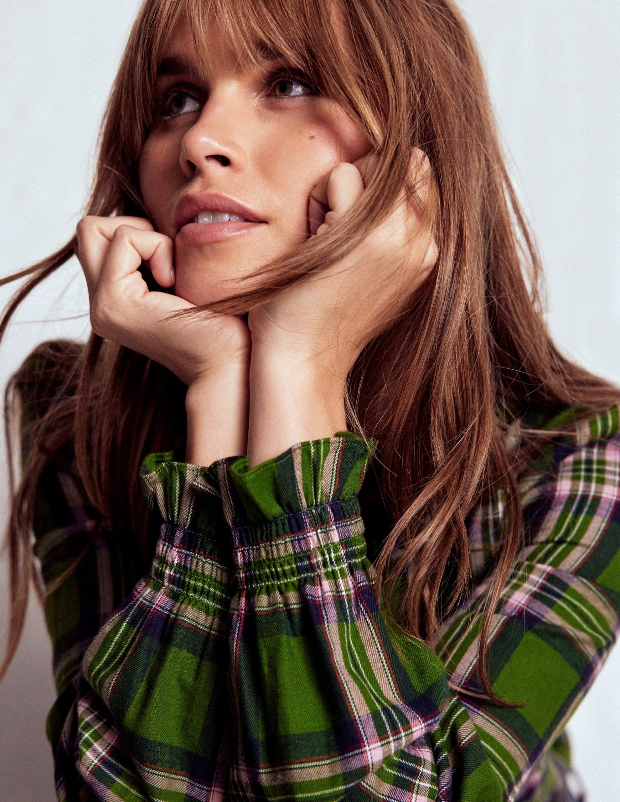 Lorna Brushed Cotton Top-Green. Navy & Pink Check