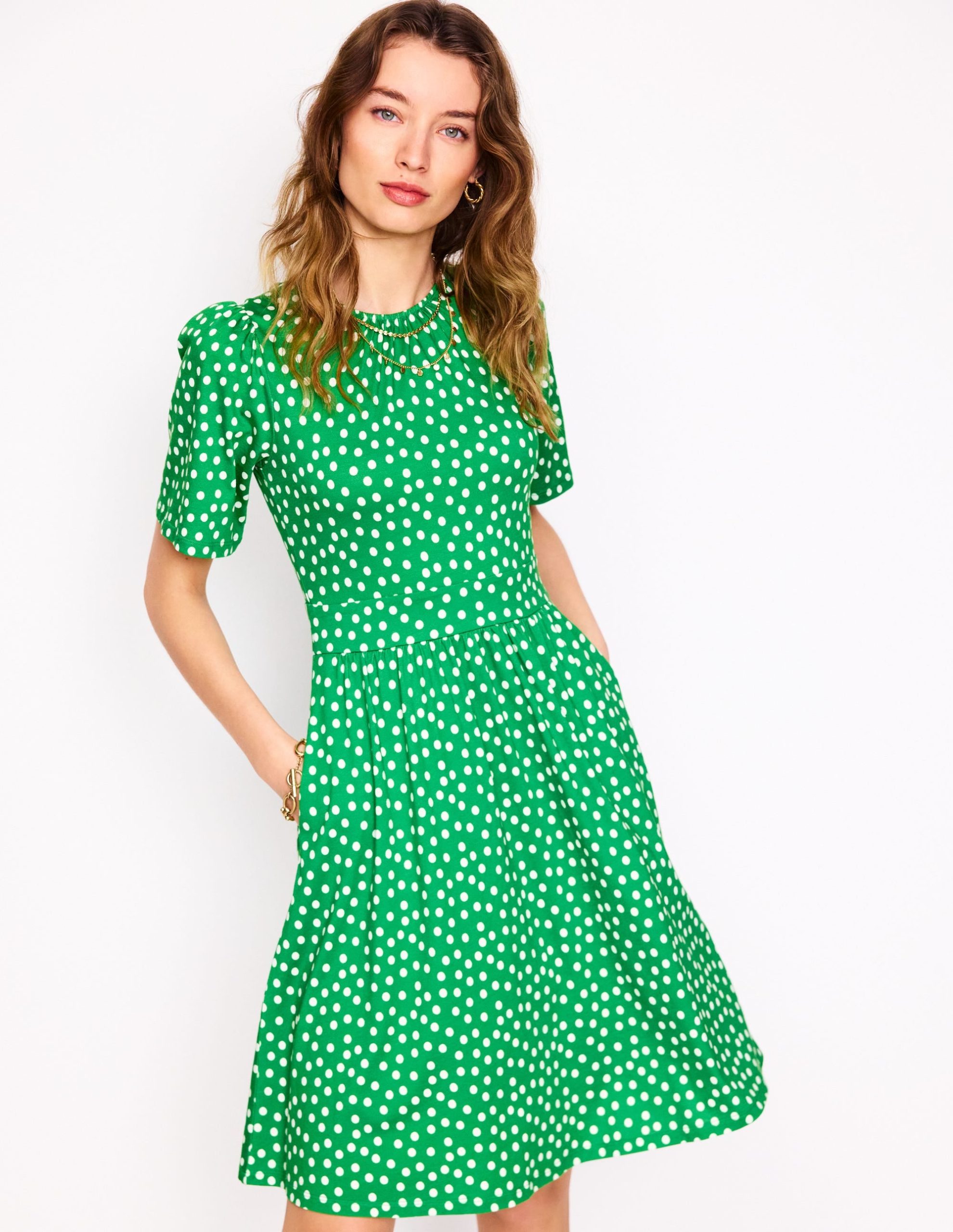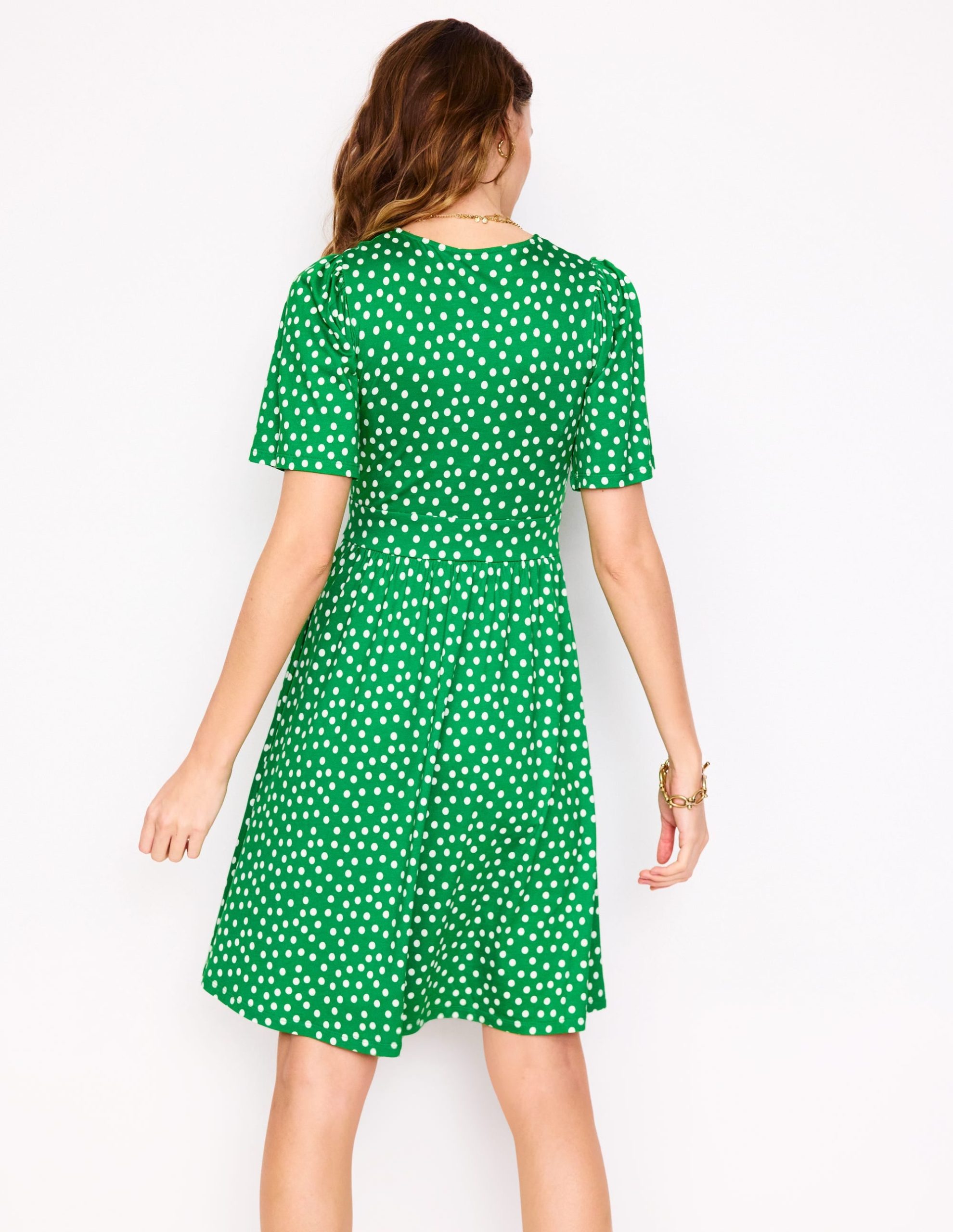 Louisa Short Jersey Dress-Lime Juice Green. Abstract Dot