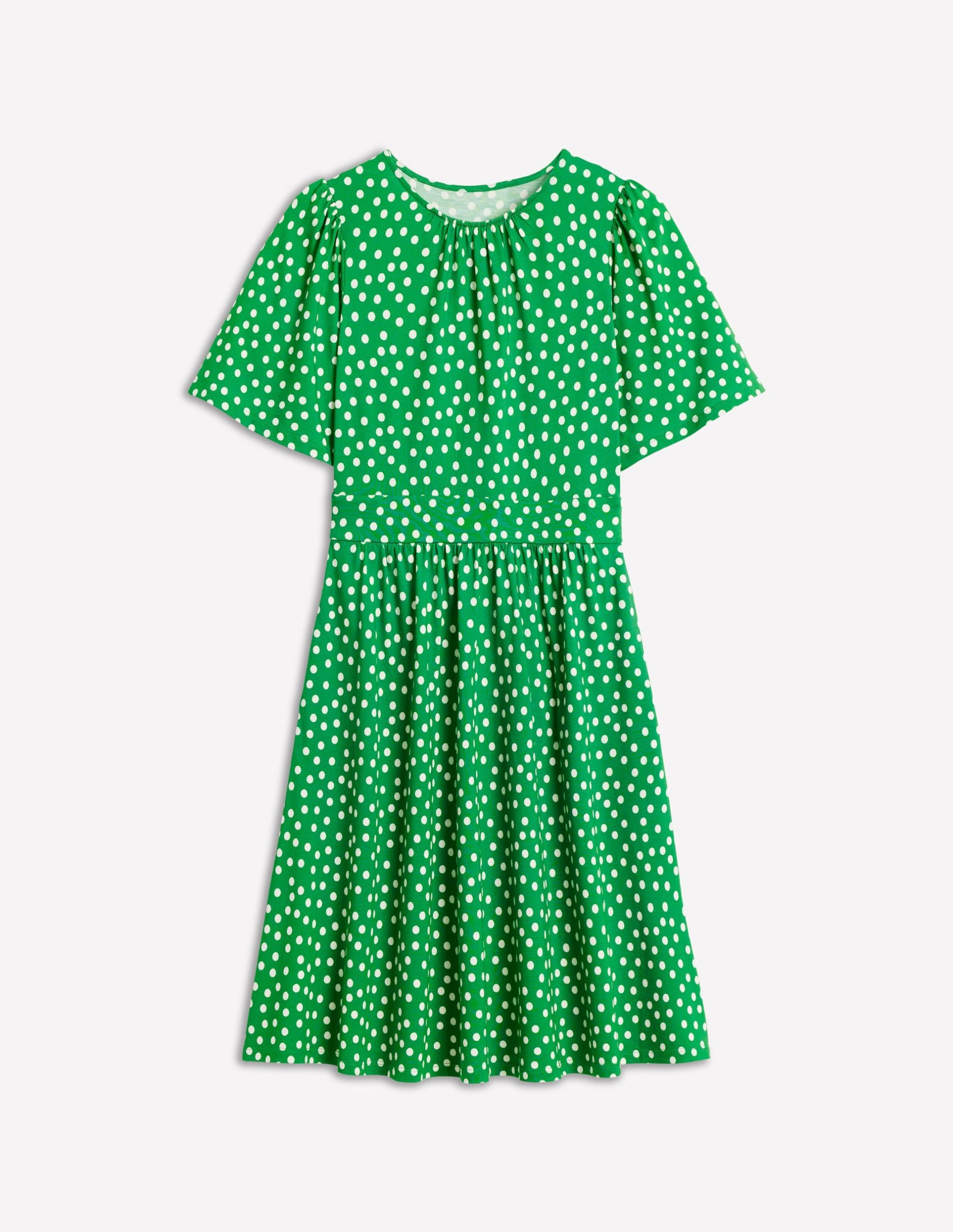 A soon-to-be summer classic. the Louisa is crafted from crease-free jersey with gathered angel sleeves. nipped in waist and knee-grazing floaty skirt.