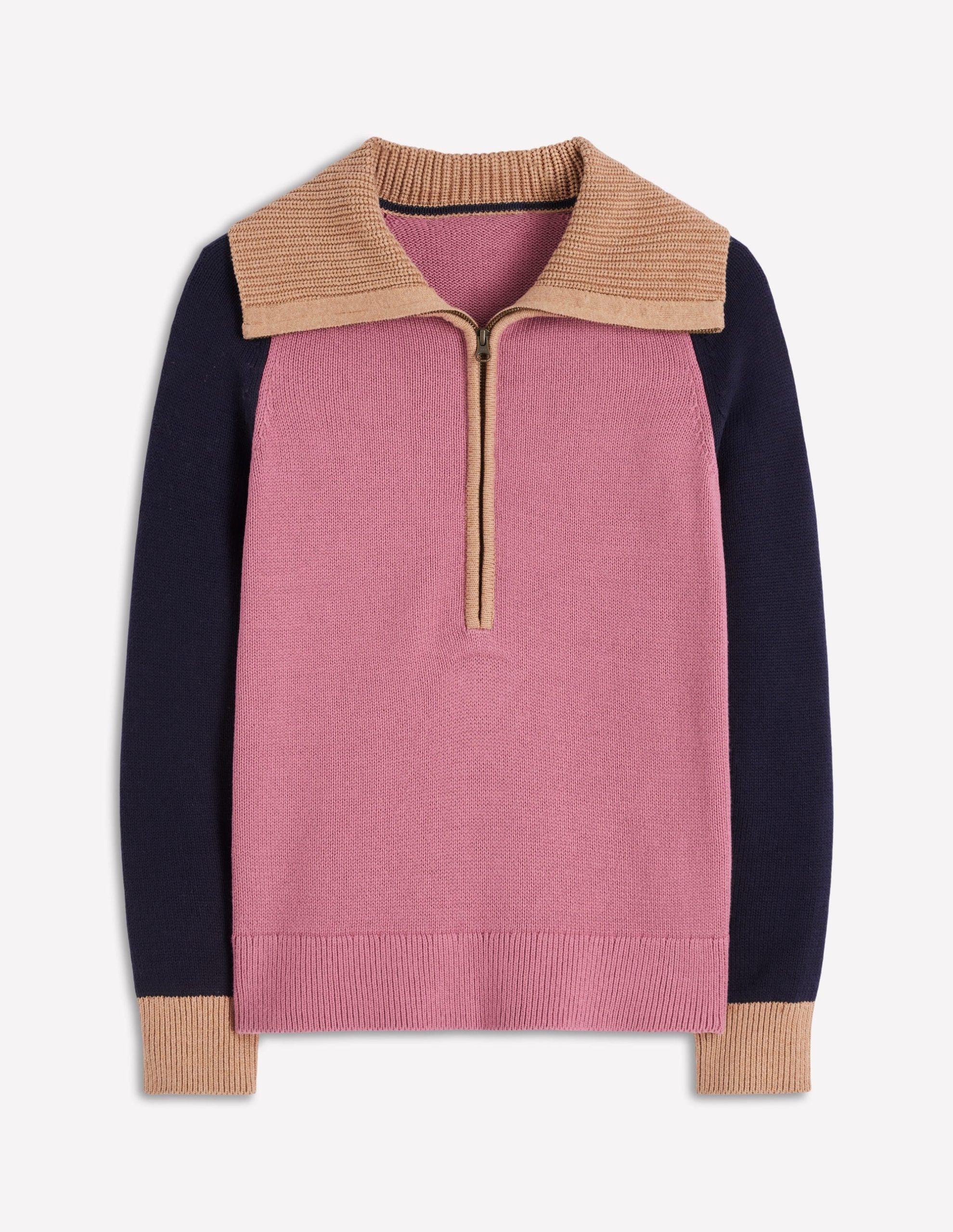 Lucy Half-zip Sweater-Pink Heather. Navy