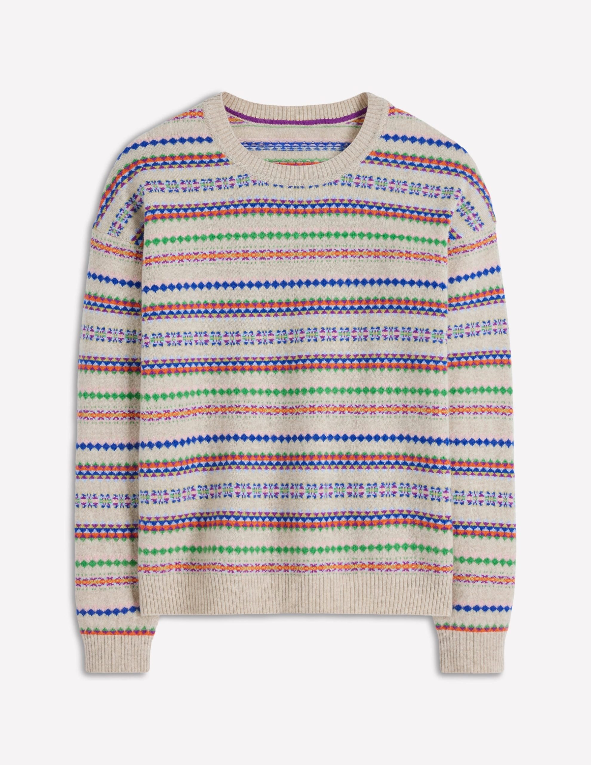 Lydia Cashmere Jumper-Oatmeal Melange Fair Isle