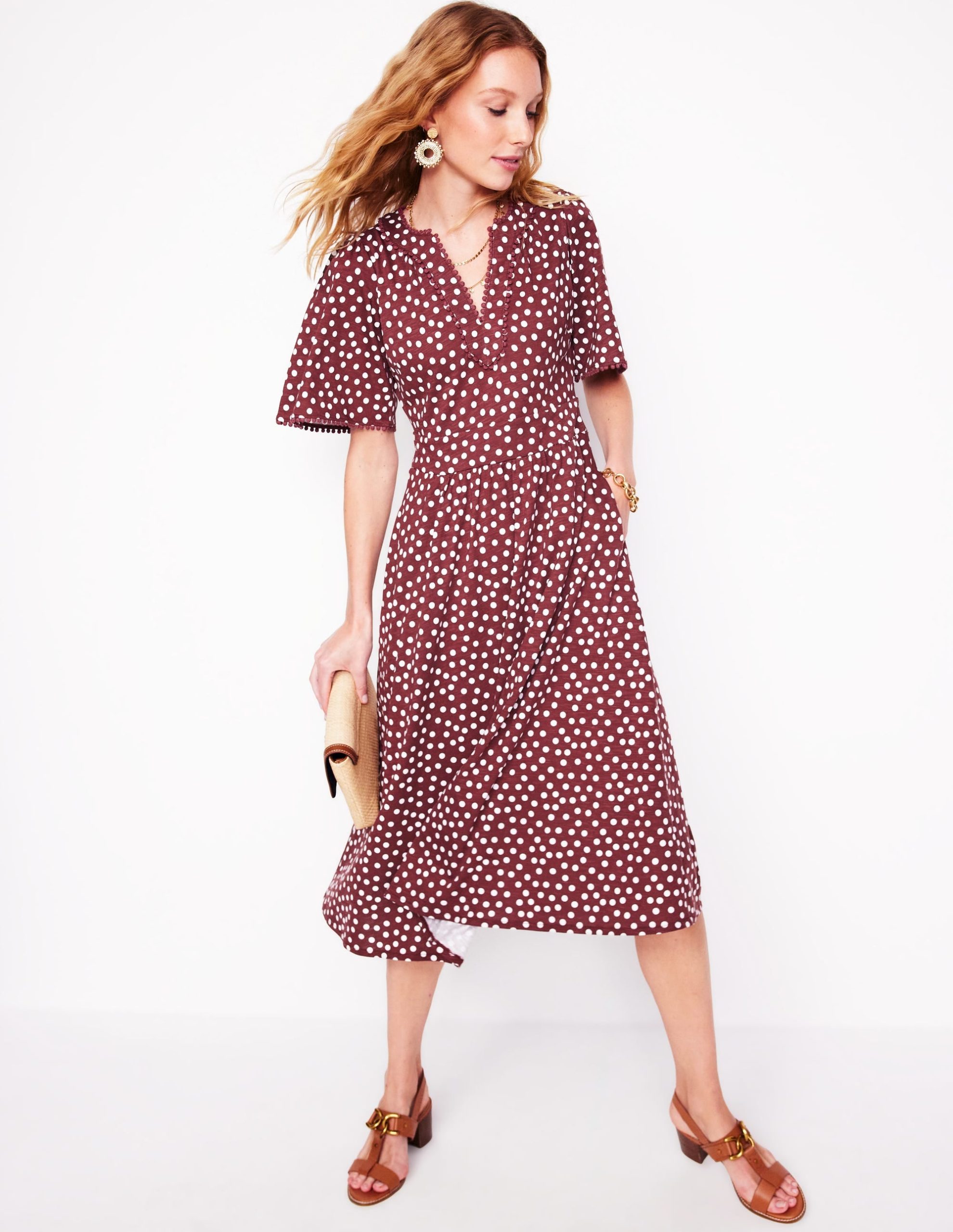 Maddie Trim Jersey Dress-Port and Ivory. Abstract Dot