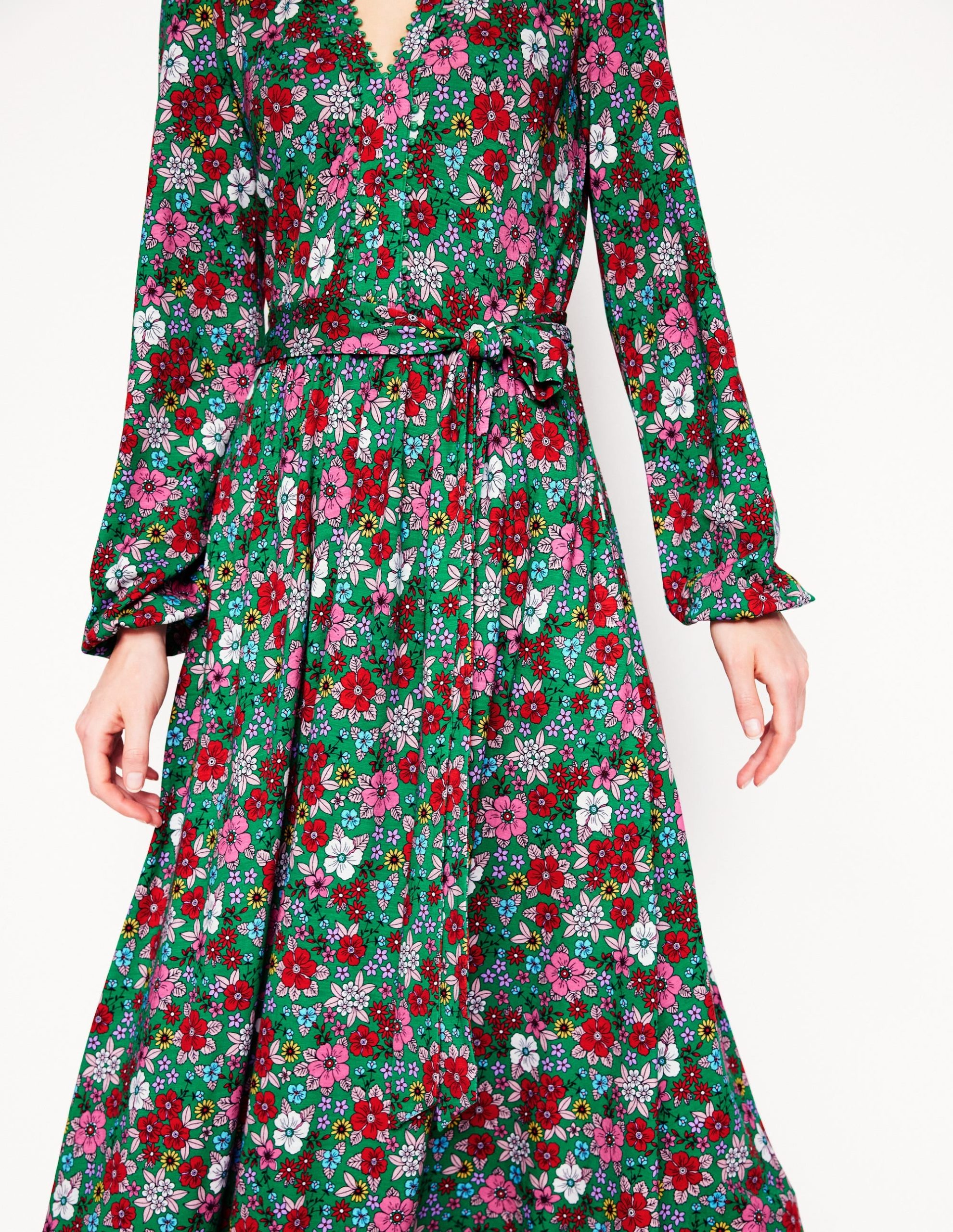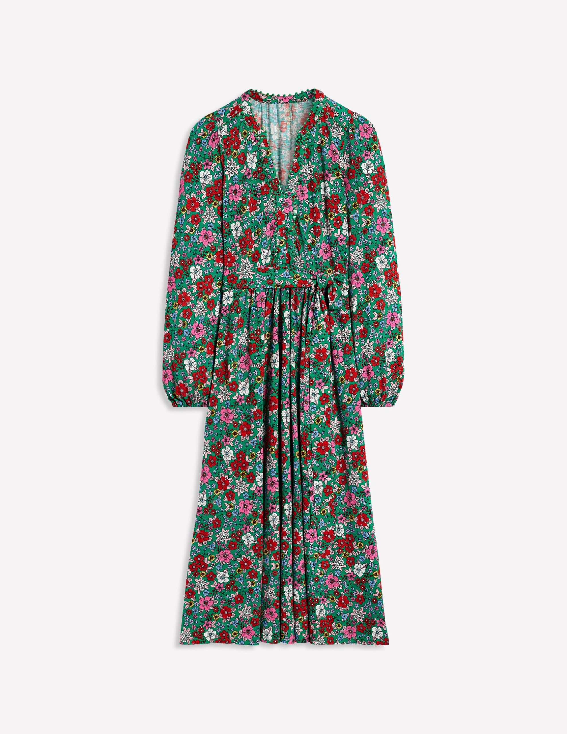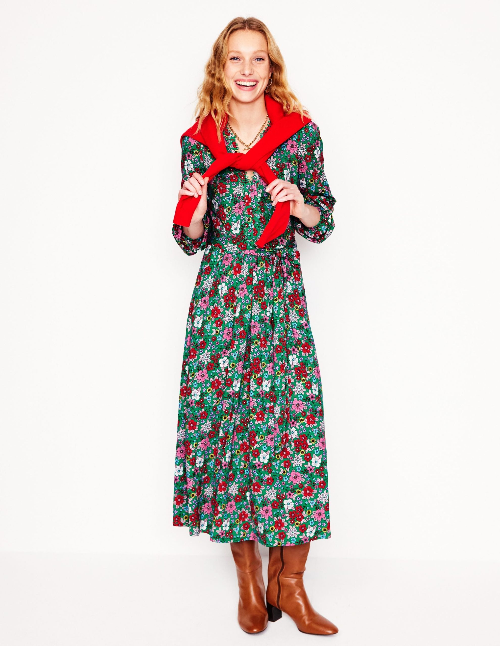 Maeve Trim Jersey Midi Dress-Rich Emerald. Blossom Scatter