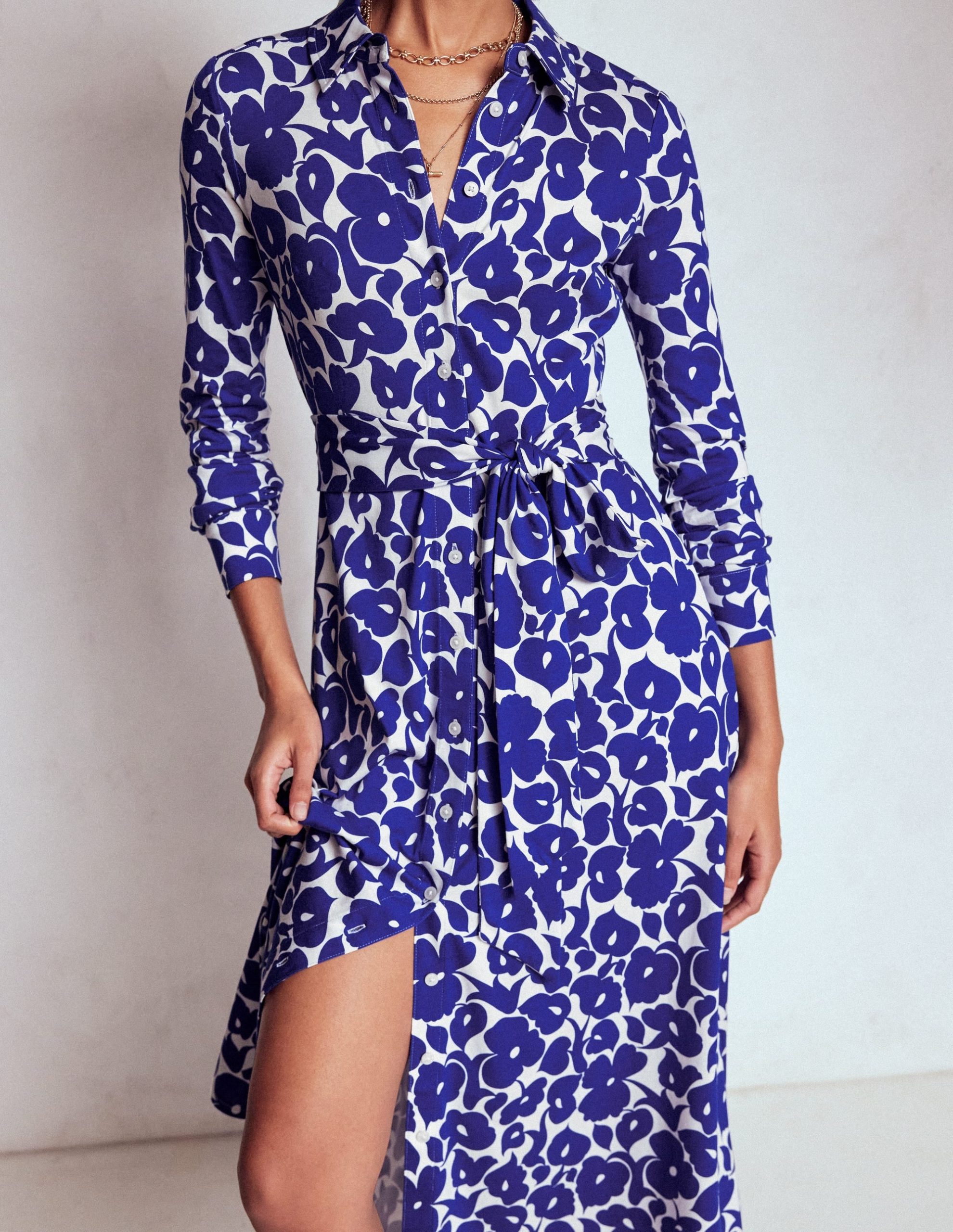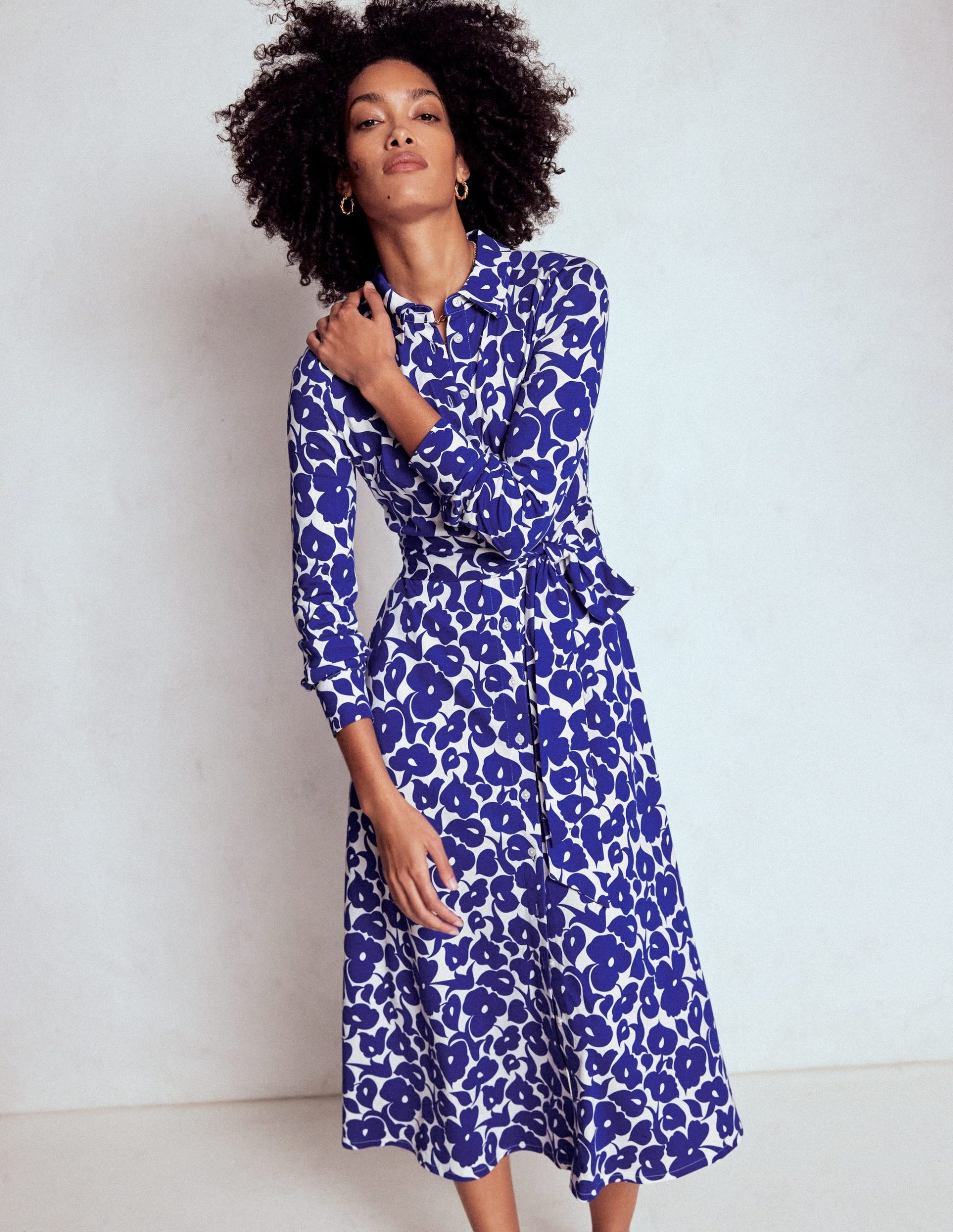 Cut from soft jersey. our Marcia dress is both comfortable and flattering. The classic shirt dress shape and waist-defining belt say you mean business. Choose a different print for every day of the week.