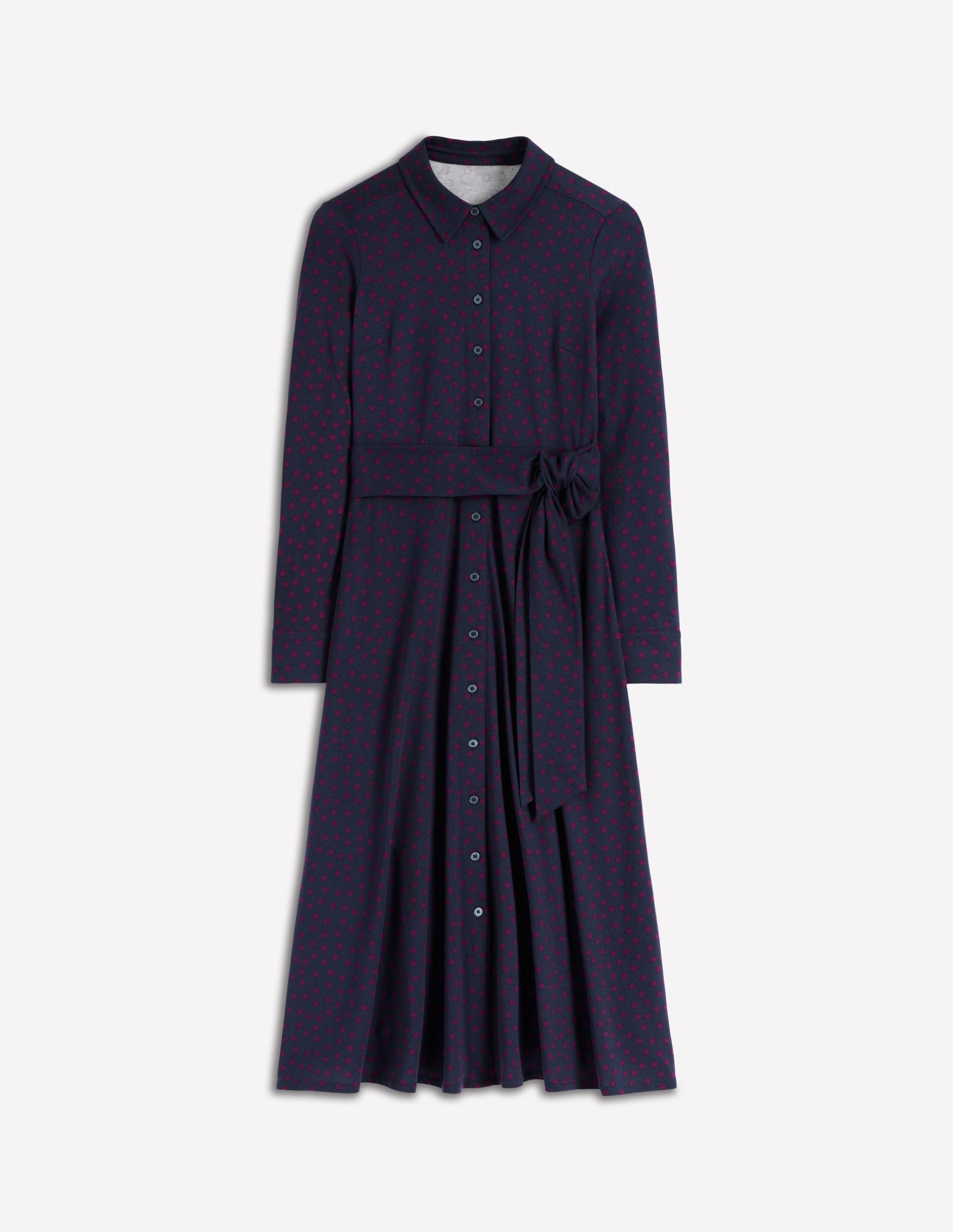 Cut from soft jersey. our Marcia dress is both comfortable and flattering. The classic shirt dress shape and waist-defining belt say you mean business. Choose a different print for every day of the week.