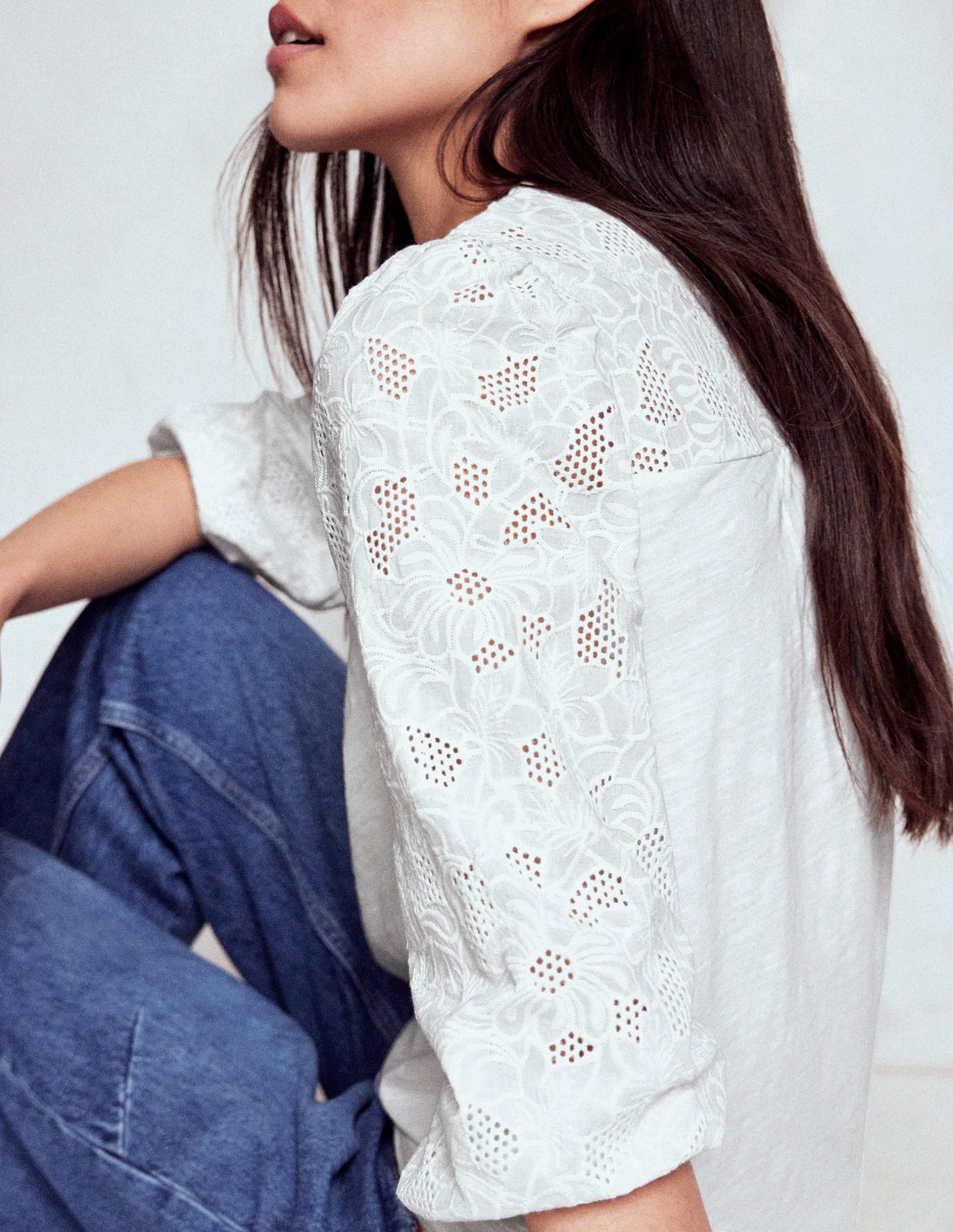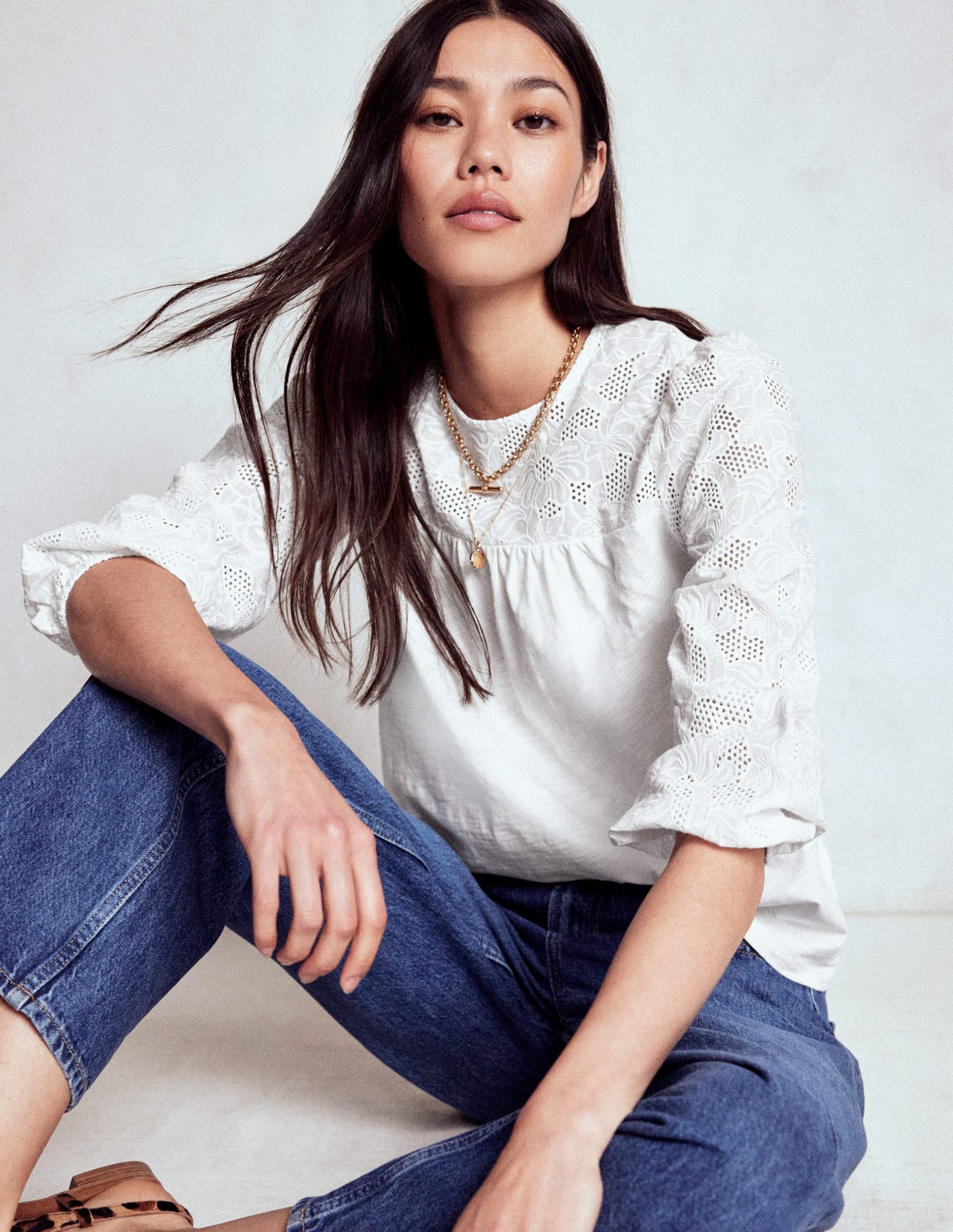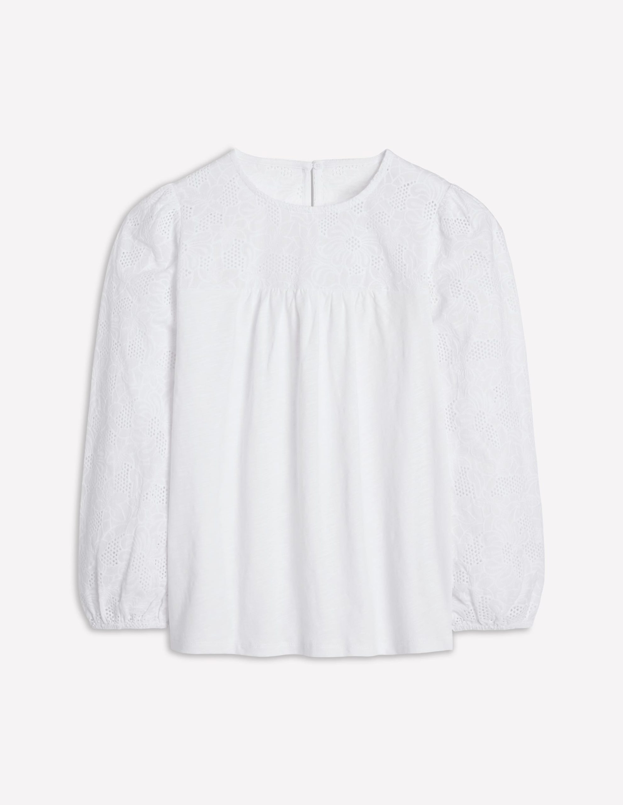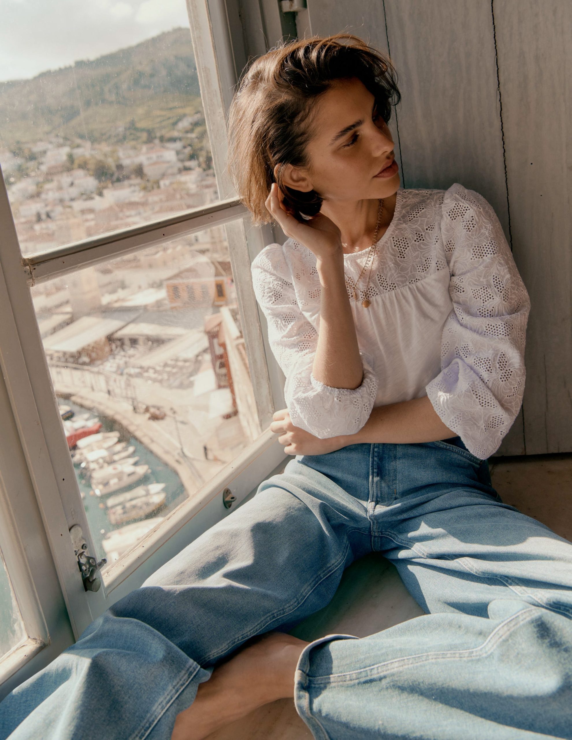 A modern take on classic broderie. plus billowy sleeves and a swing shape body: this go-with-everything top is positively poetic.