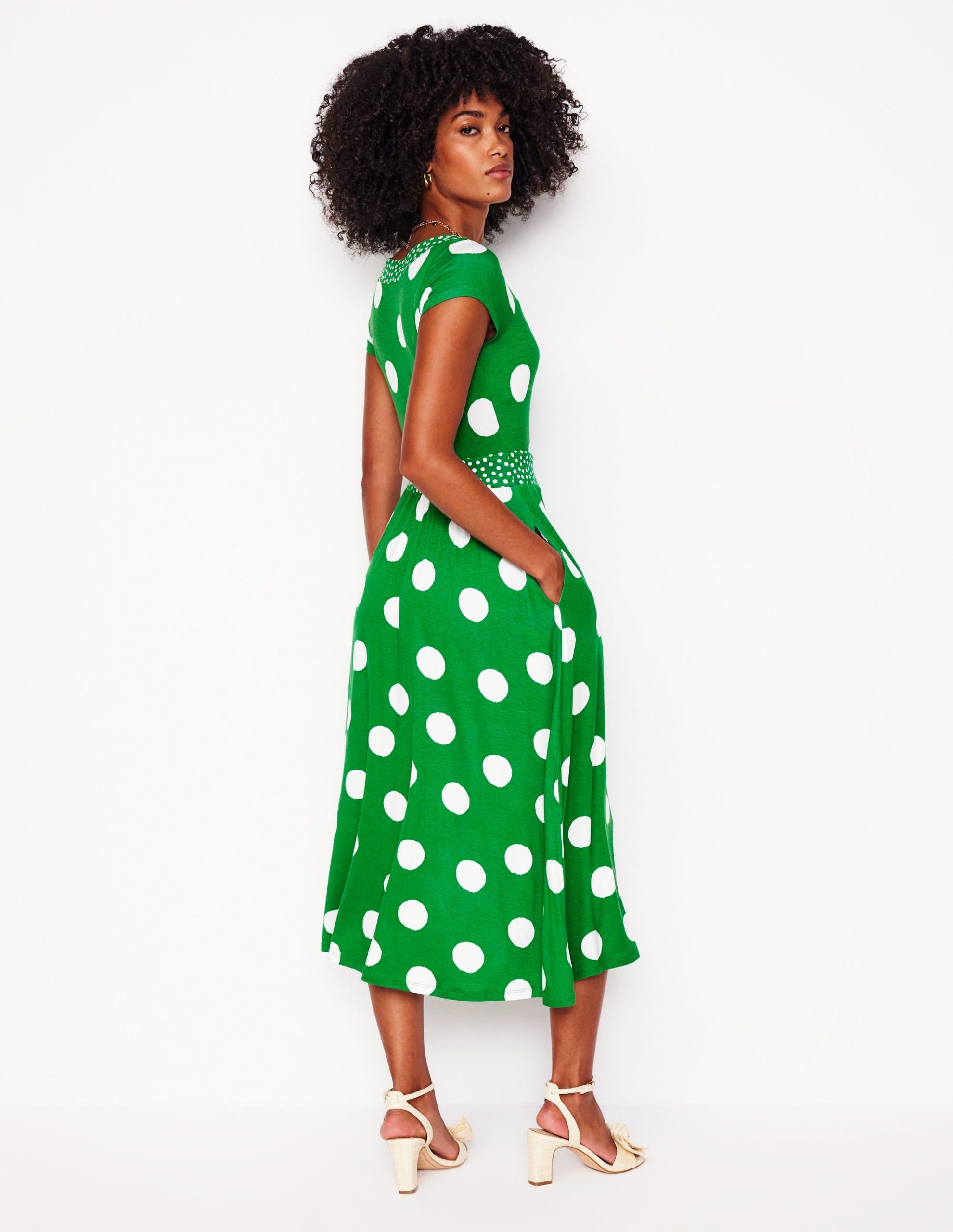 Our Melanie midi dress is spun from soft jersey. with a flattering wide waistband and ?C of course ?C pockets. Eternally comfortable. endlessly stylish.