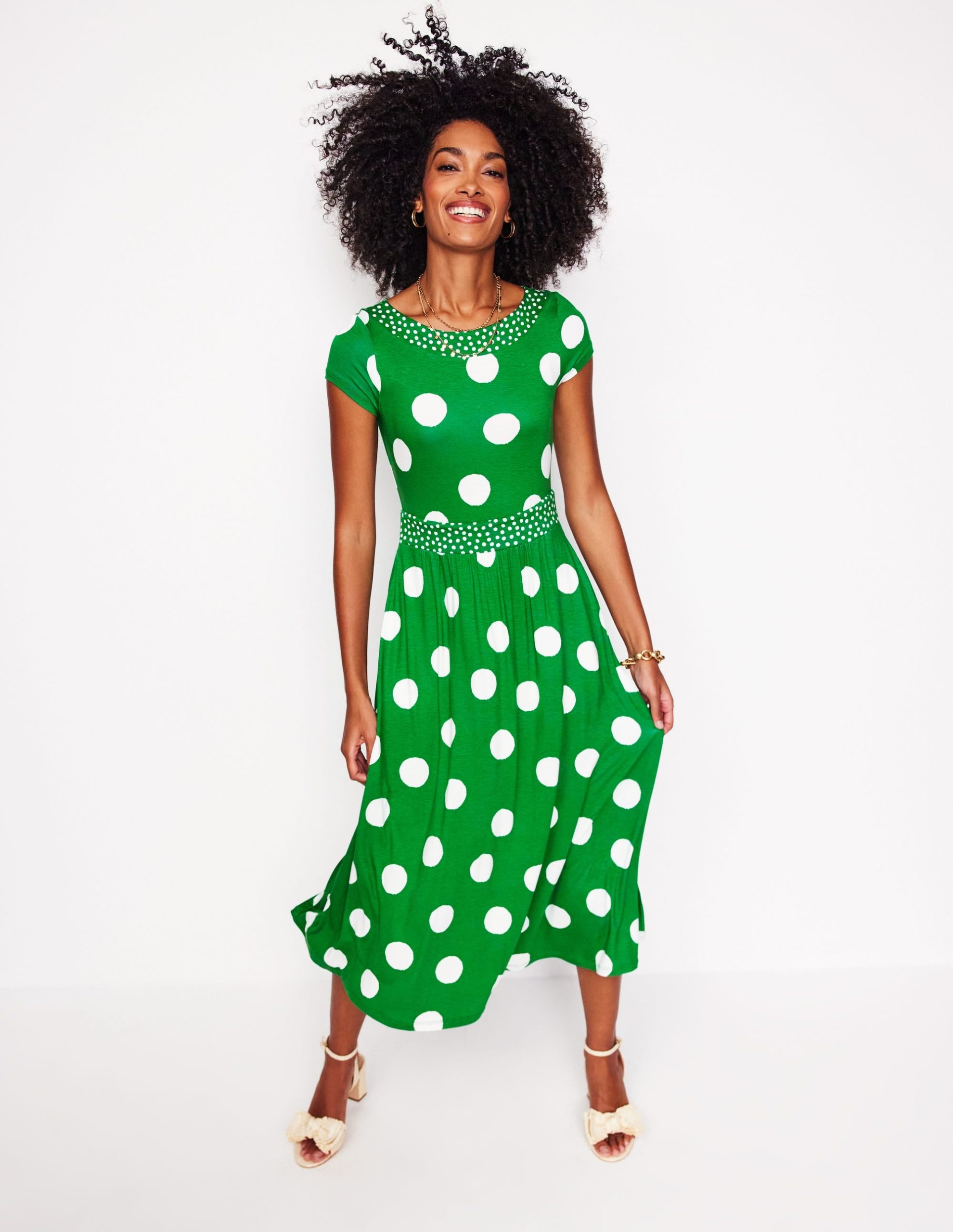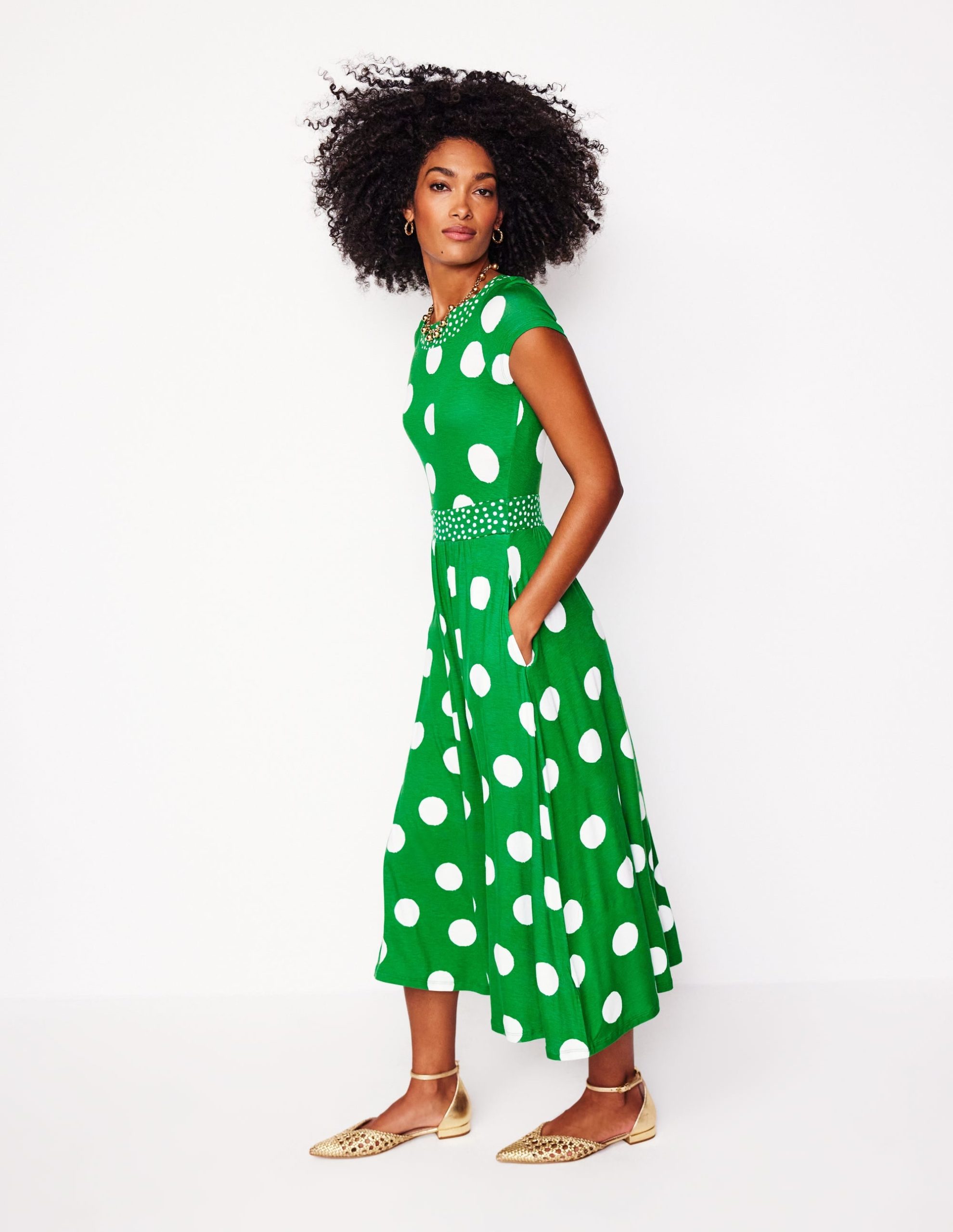 Melanie Jersey Midi Dress-Rich Emerald. Abstract Dot