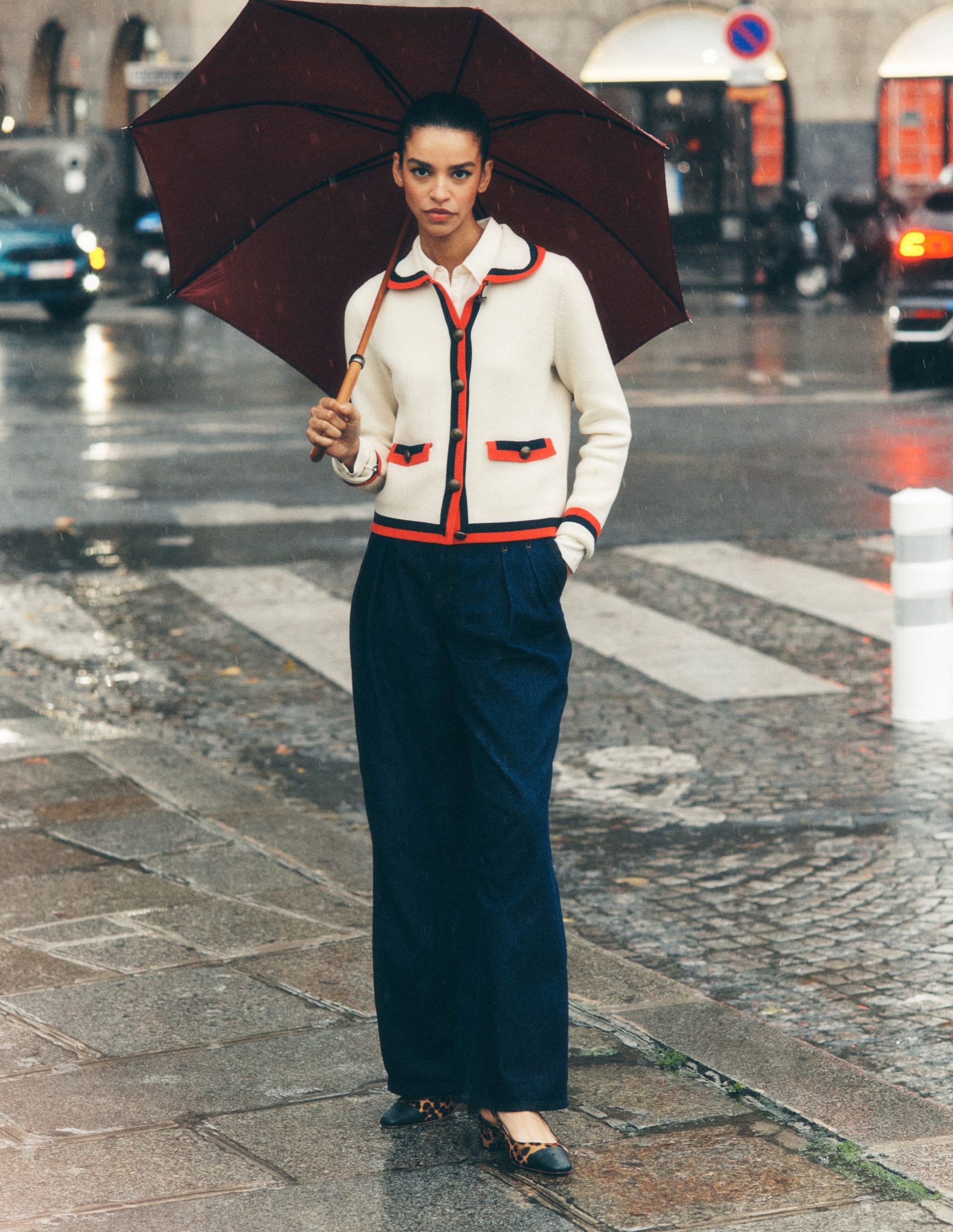 Cut with wide legs. these trousers are finished in an indigo wash. We love them dressed down with a simple T-shirt. or smartened up using a shirt and knitted vest.