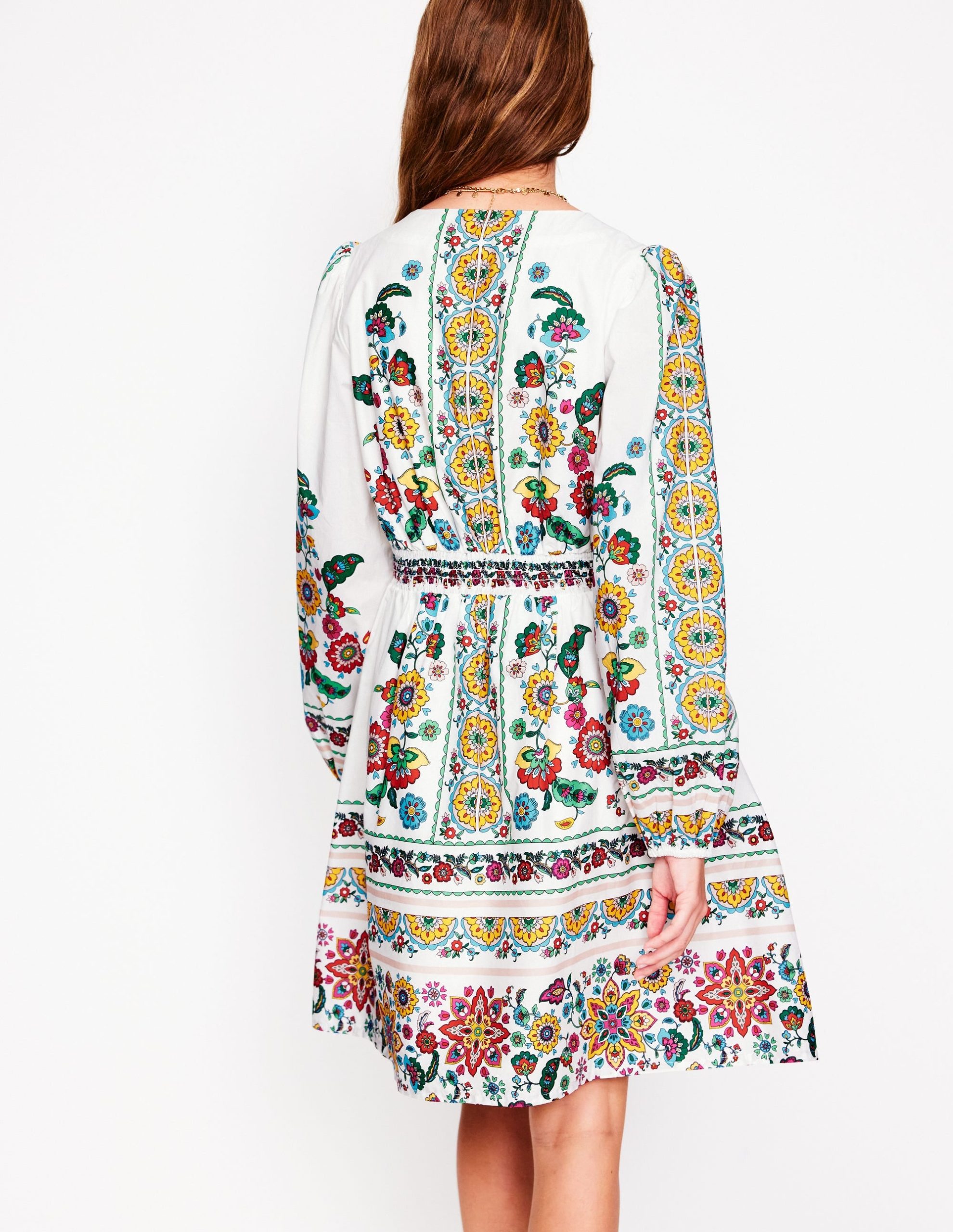 Mya Cotton Short Dress-Ivory. Botanical Sprig