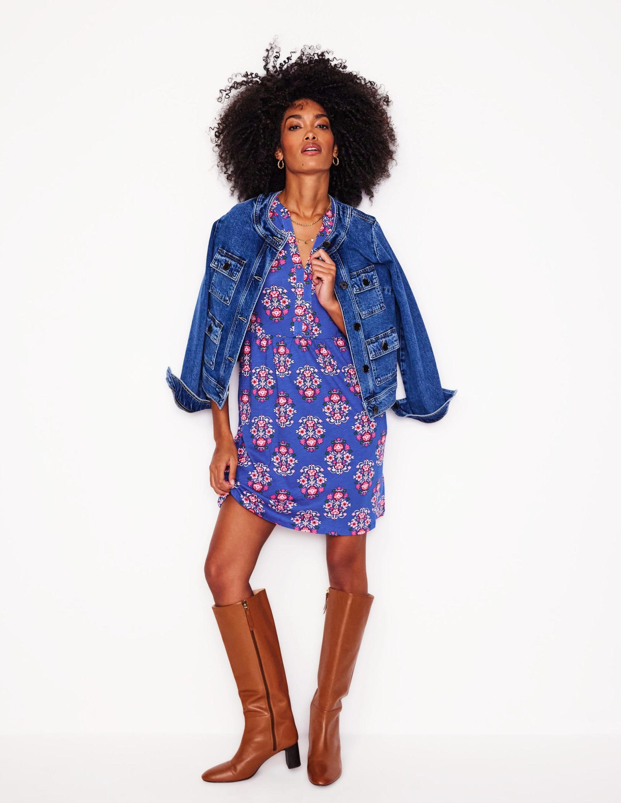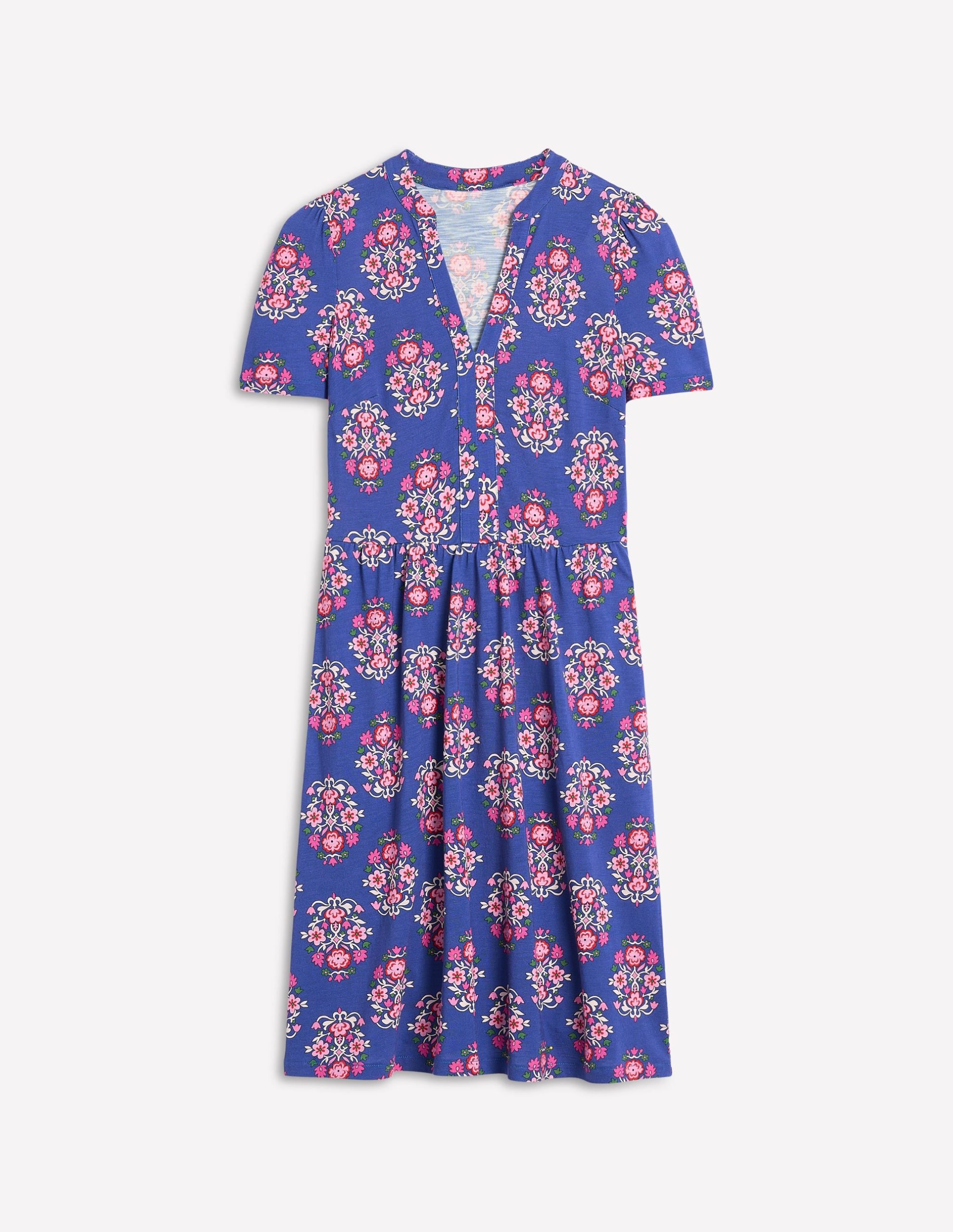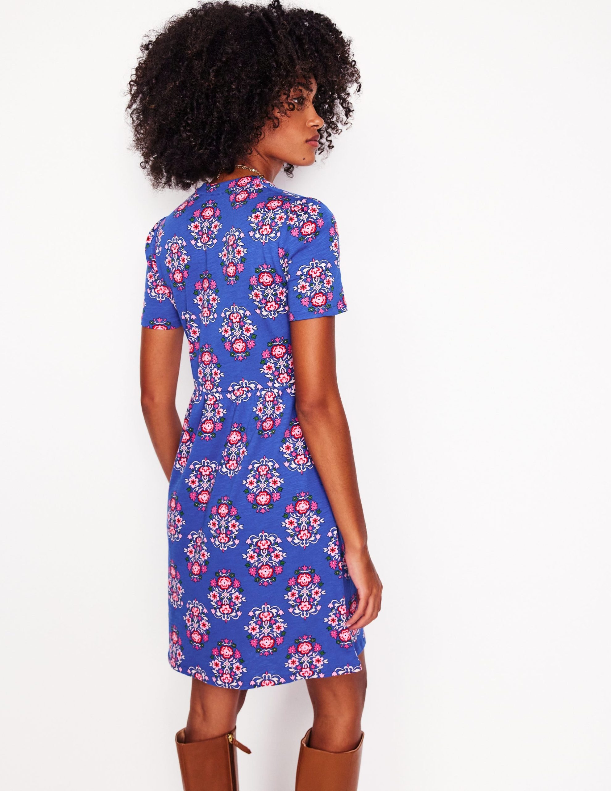 Naomi Short Sleeve Dress-Bright Blue. Wildflower Stamp