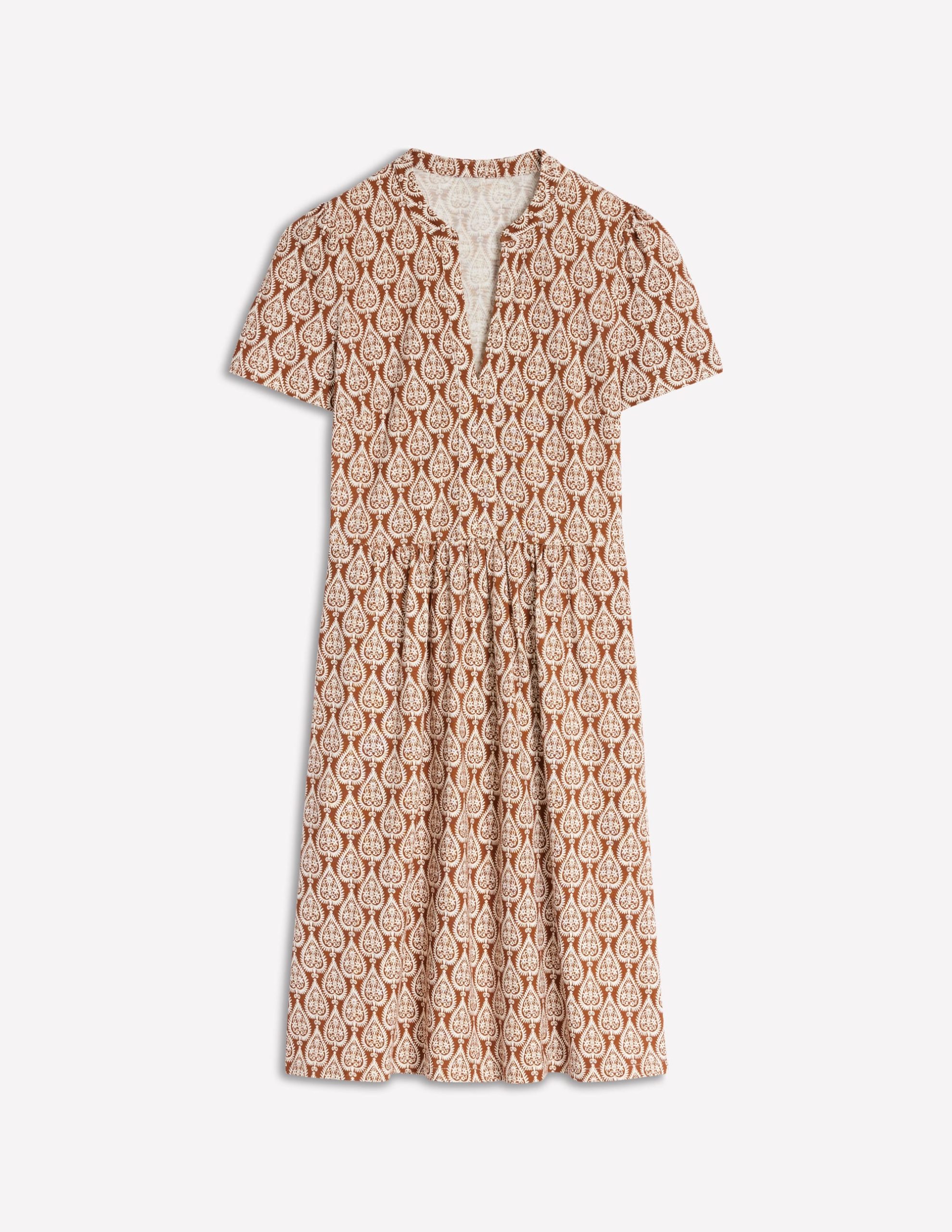 Naomi Short Sleeve Dress-Cognac. Ornate Geo