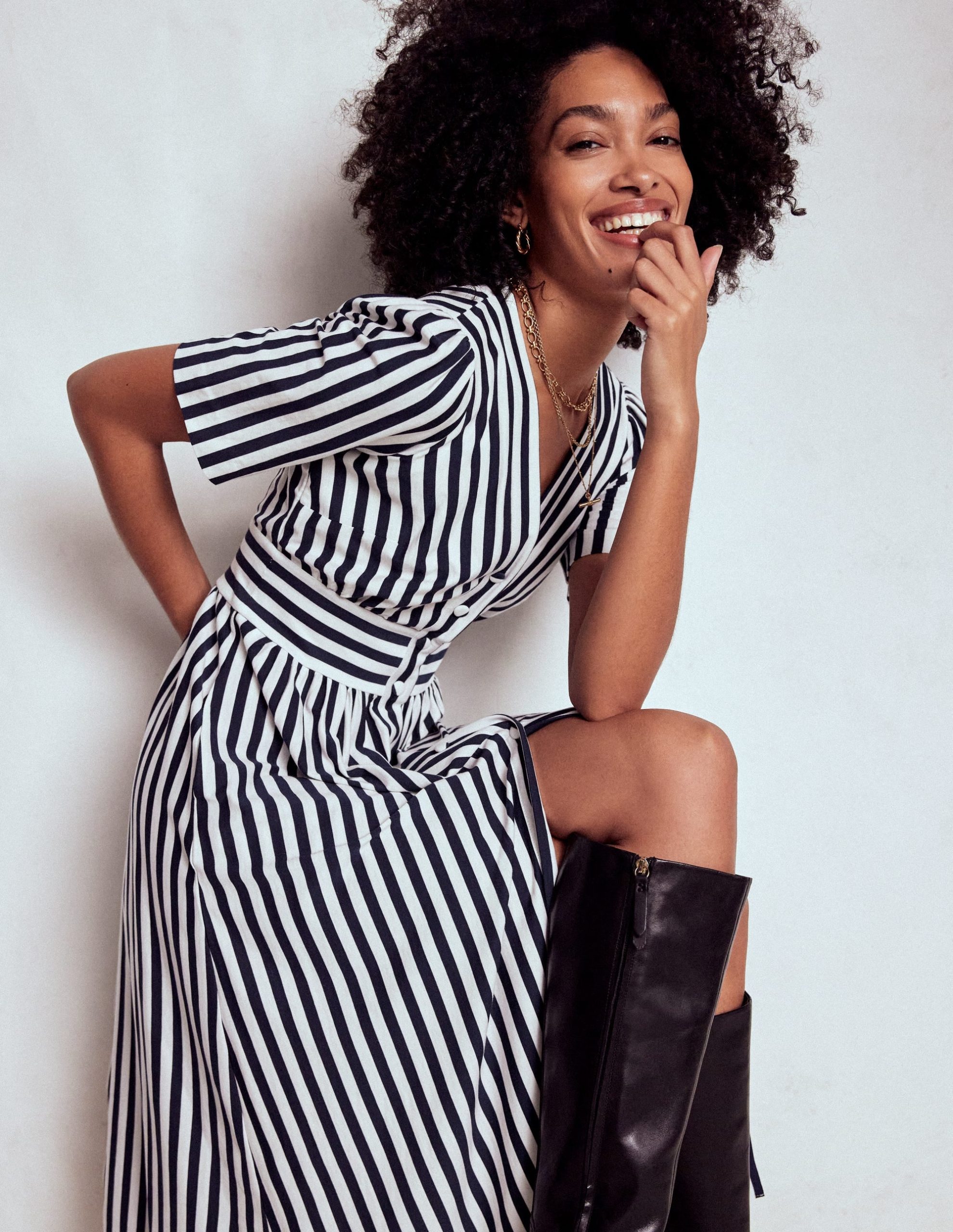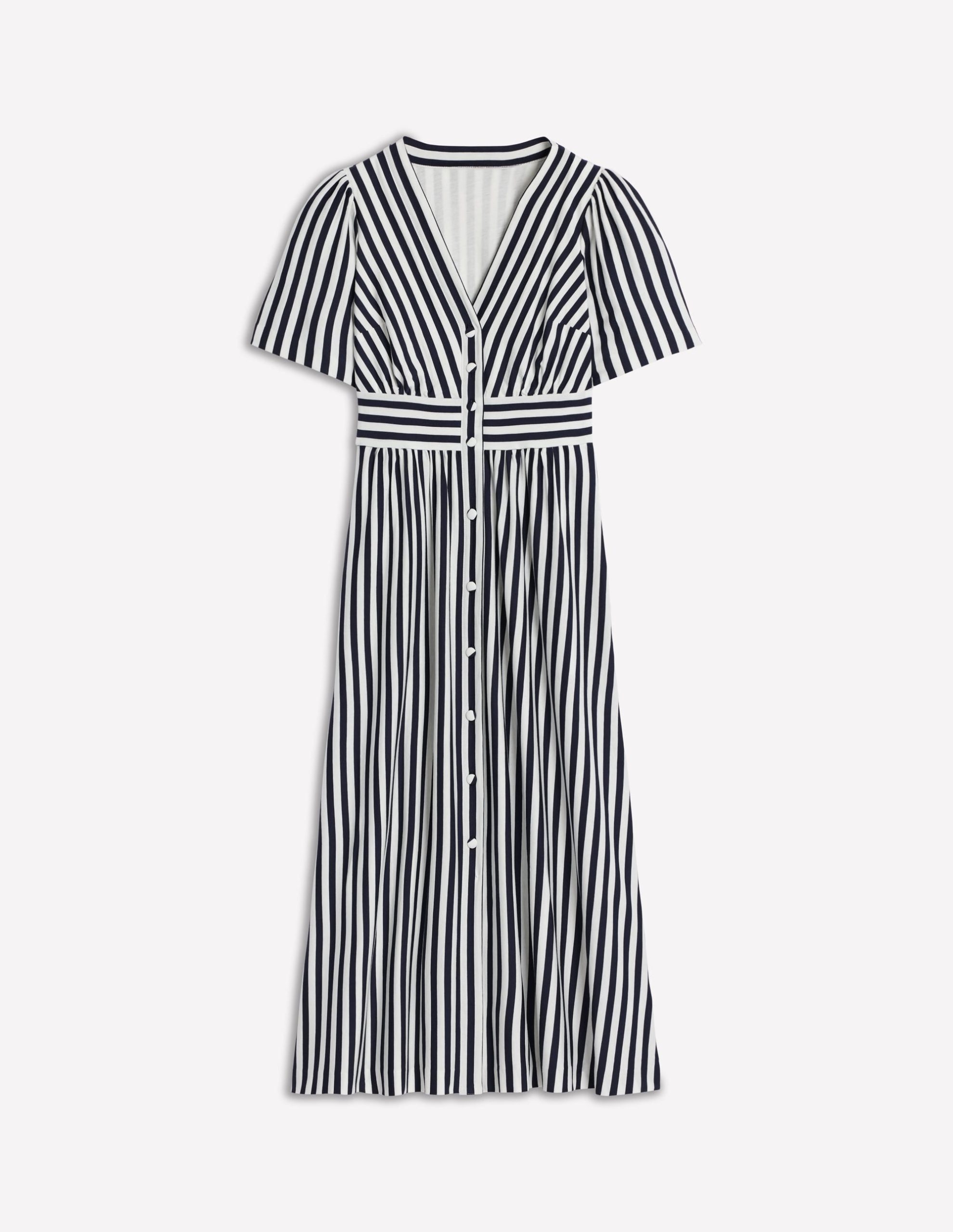 Natalia Jersey Tea Dress-French Navy. Ivory Stripe