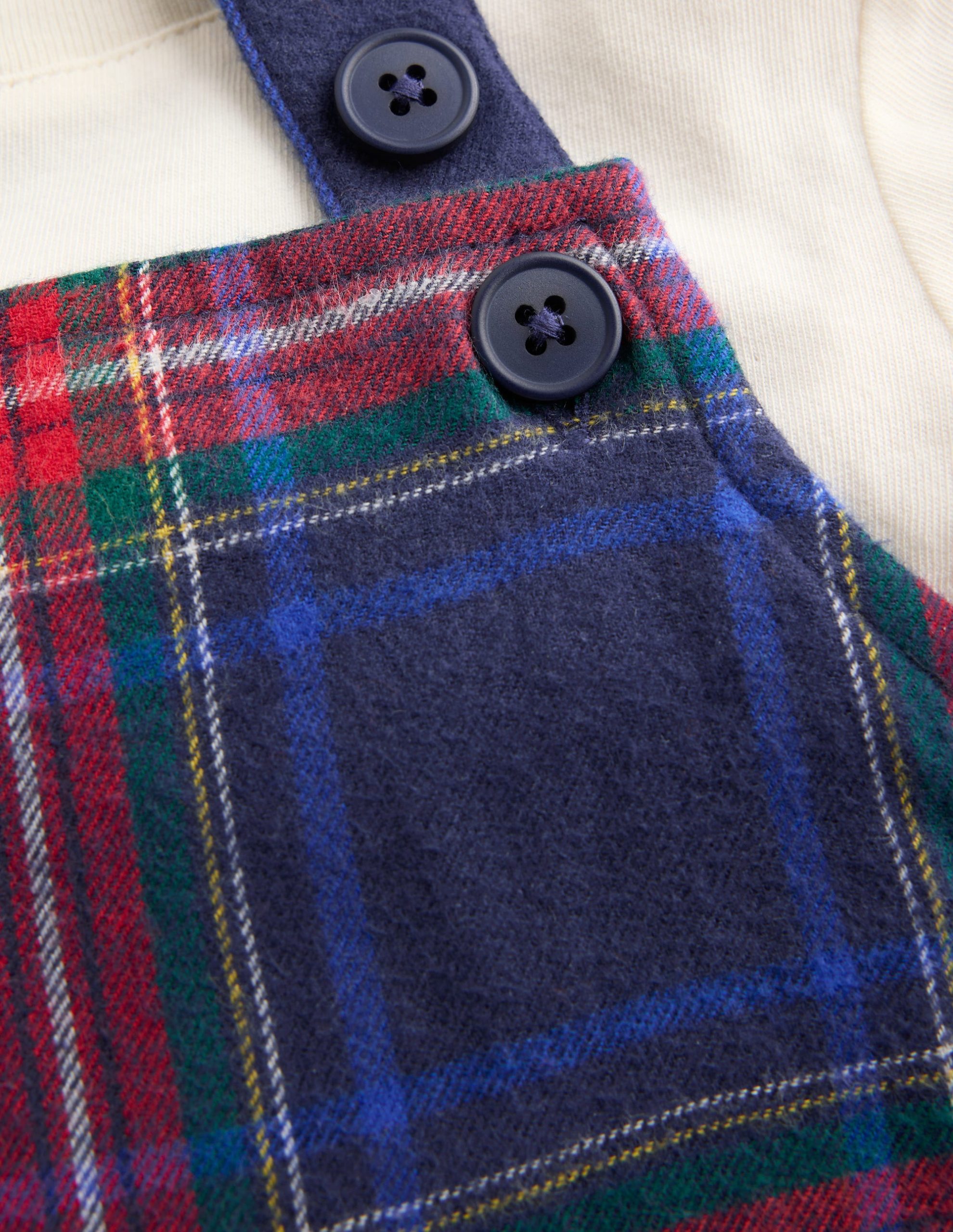 Nothing says ‘autumn cosy’ quite like tartan with a long sleeve tee. This soft cotton romper set is perfect for little wrigglers with its adjustable straps. adorable pockets and hidden poppers.