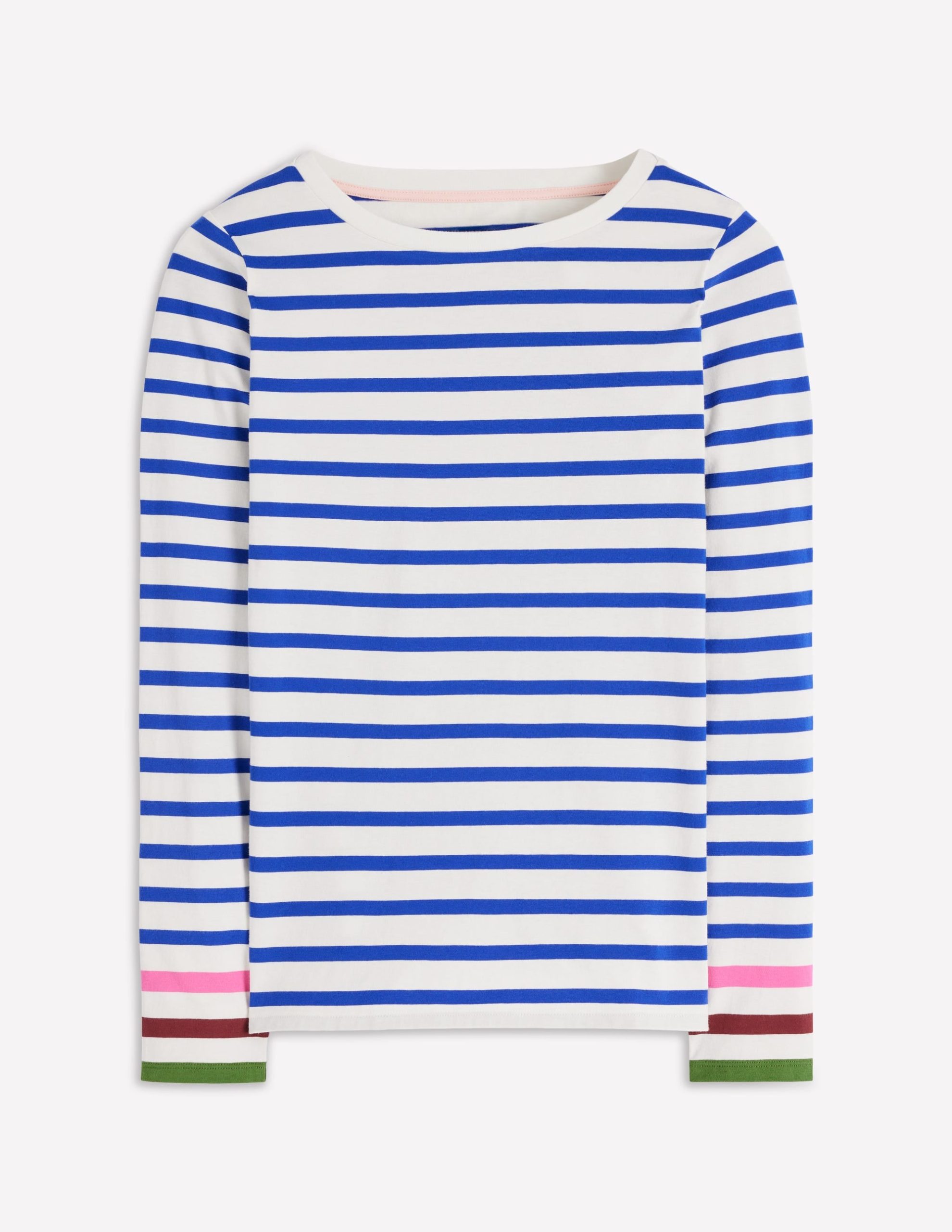 Our Bretons are forever classics for good reason: the soft cotton. boat neck and (of course) stripes. Here. we’ve had some fun adding new colours. How bold will you go with Olivia?