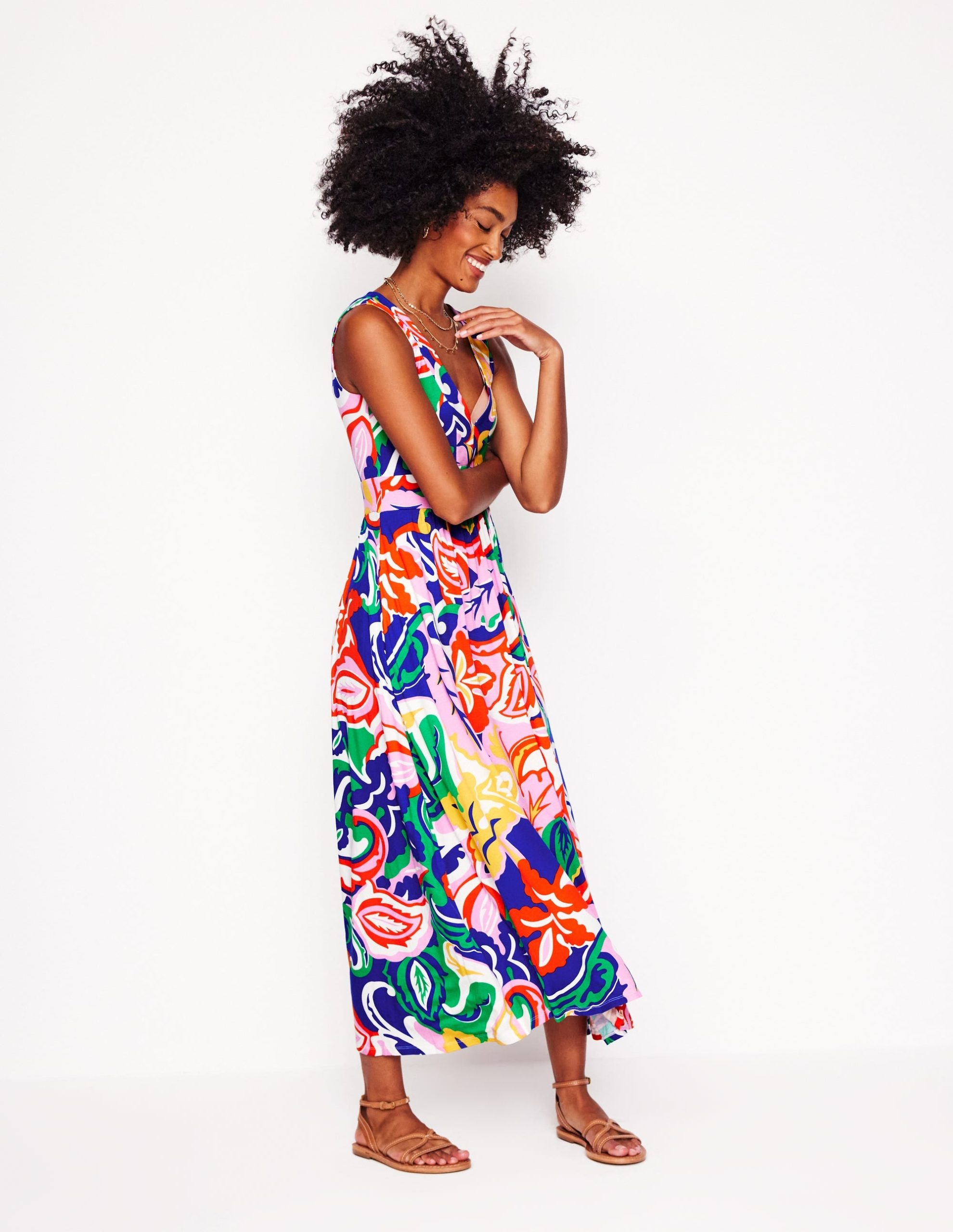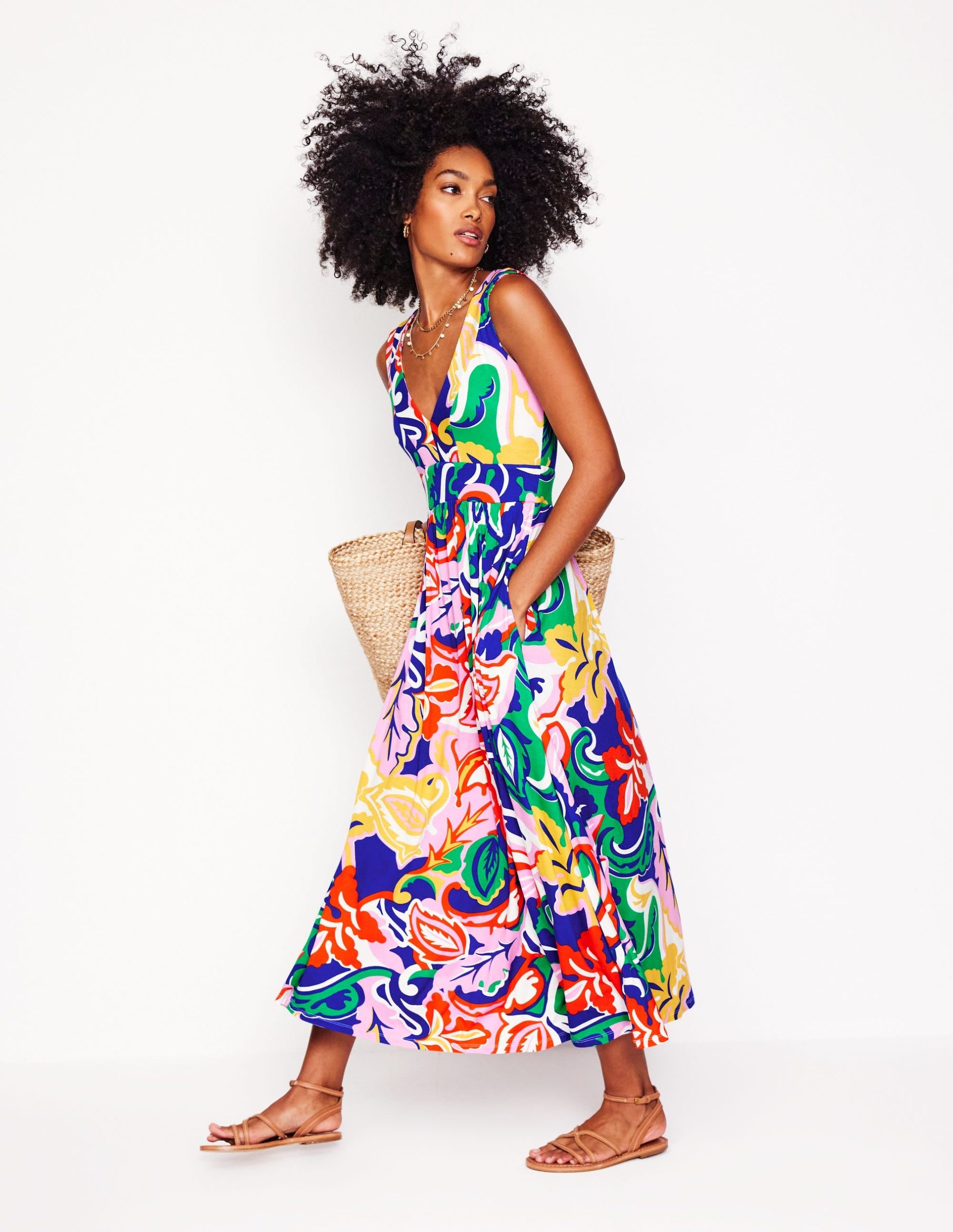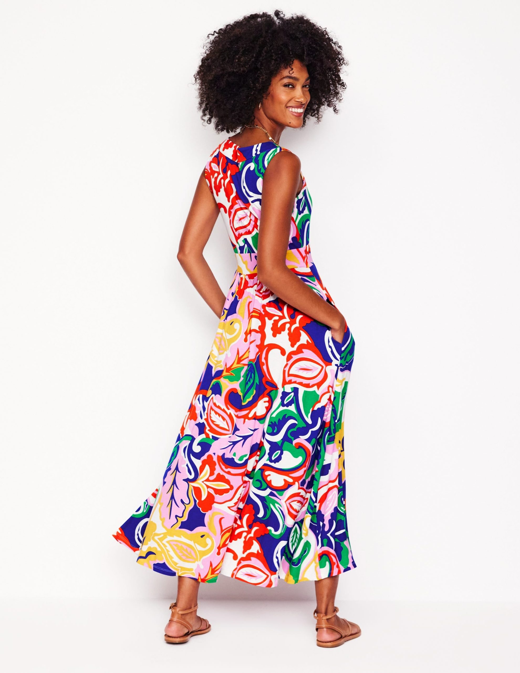 Olympia Jersey Maxi Dress-Multi. Foliage Twirl
