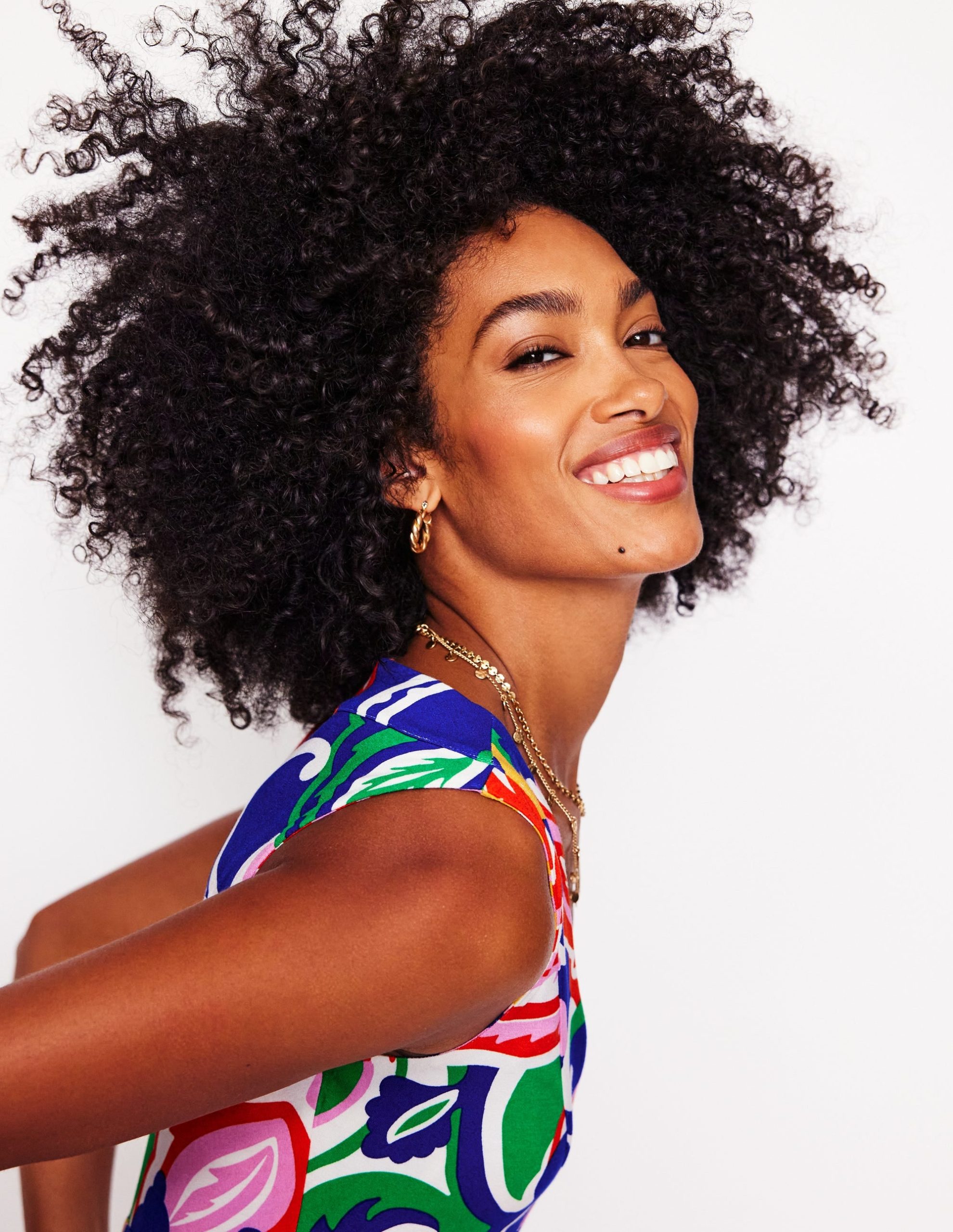 Olympia serves up a double dose of swishy drama thanks to her tiered maxi cut and slew of attention-grabbing prints.
