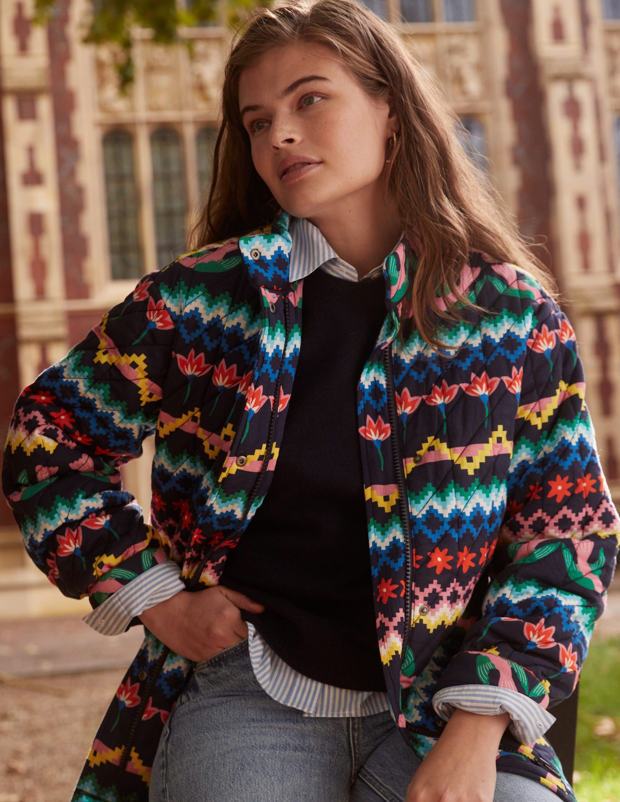 Oversized Quilted Jacket-French Navy. Decorative Garden