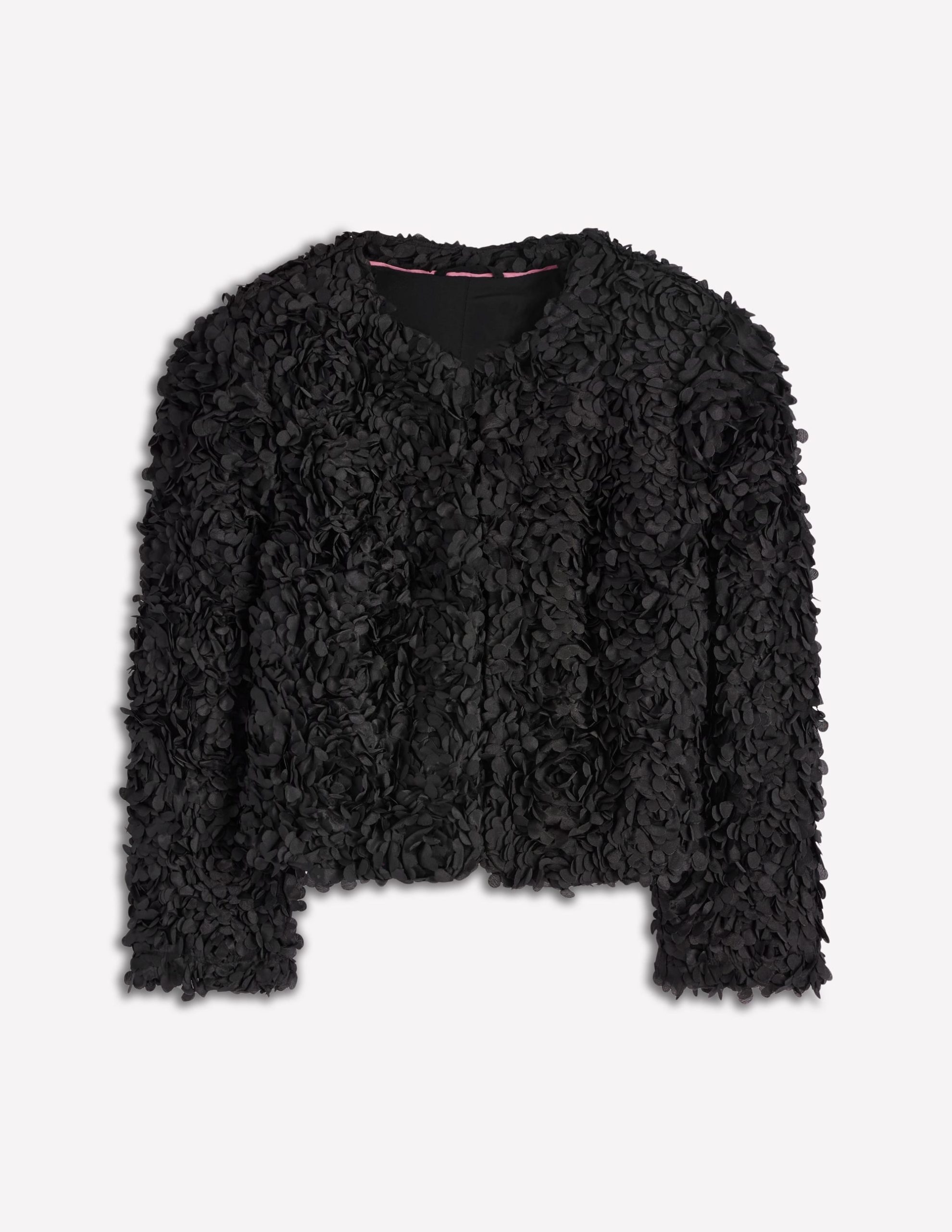 Petal Textured Cropped Jacket-Black. Petal Tulle