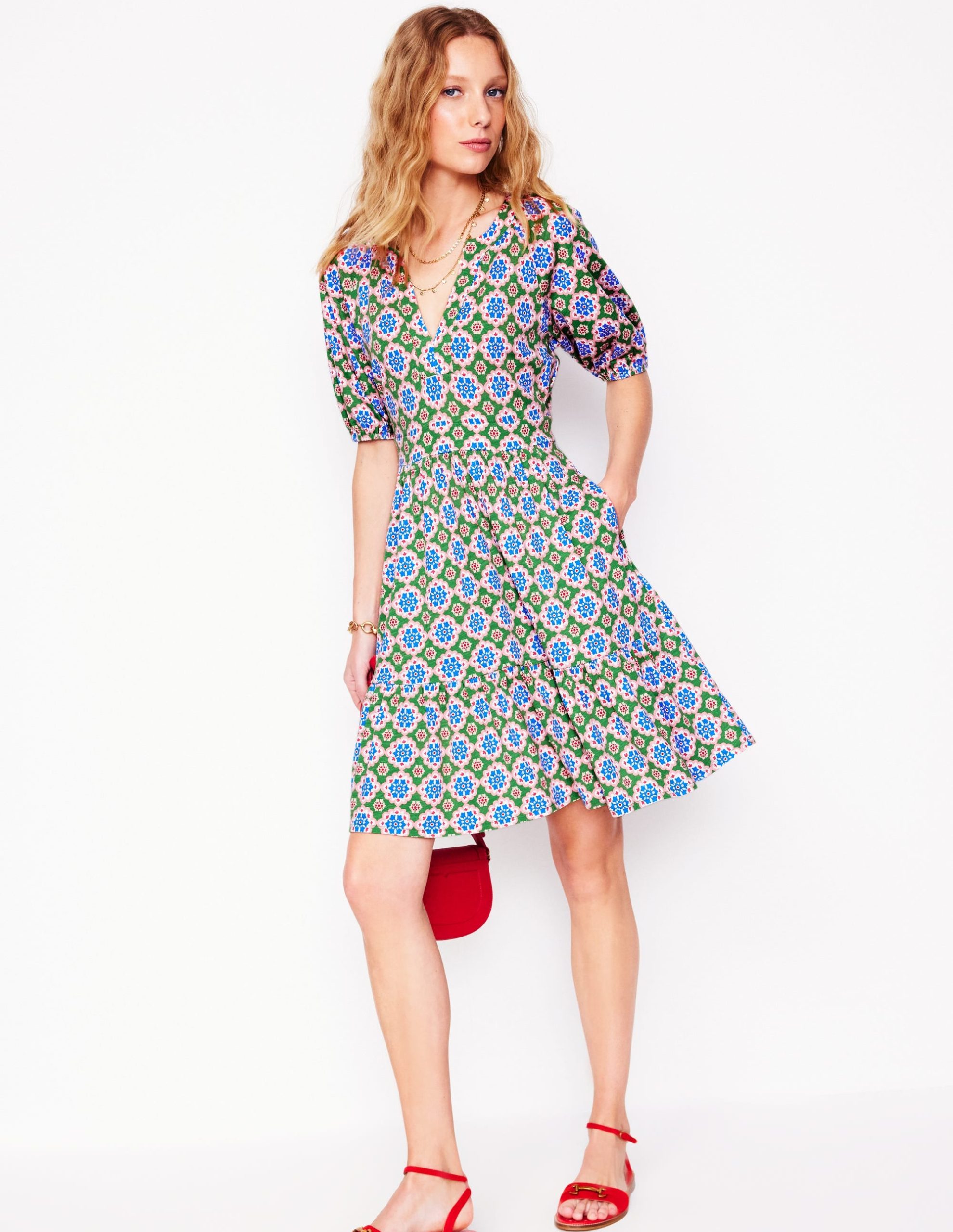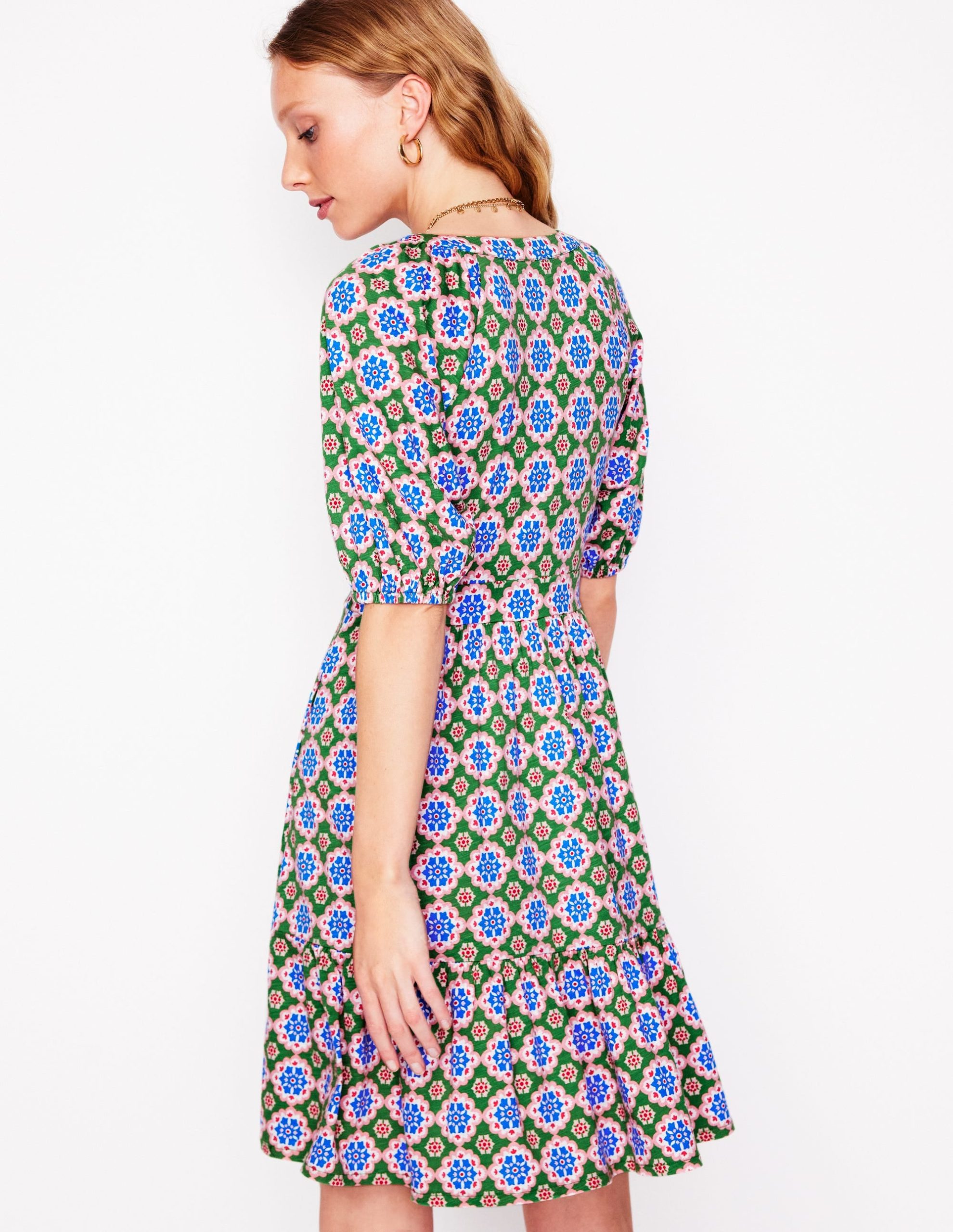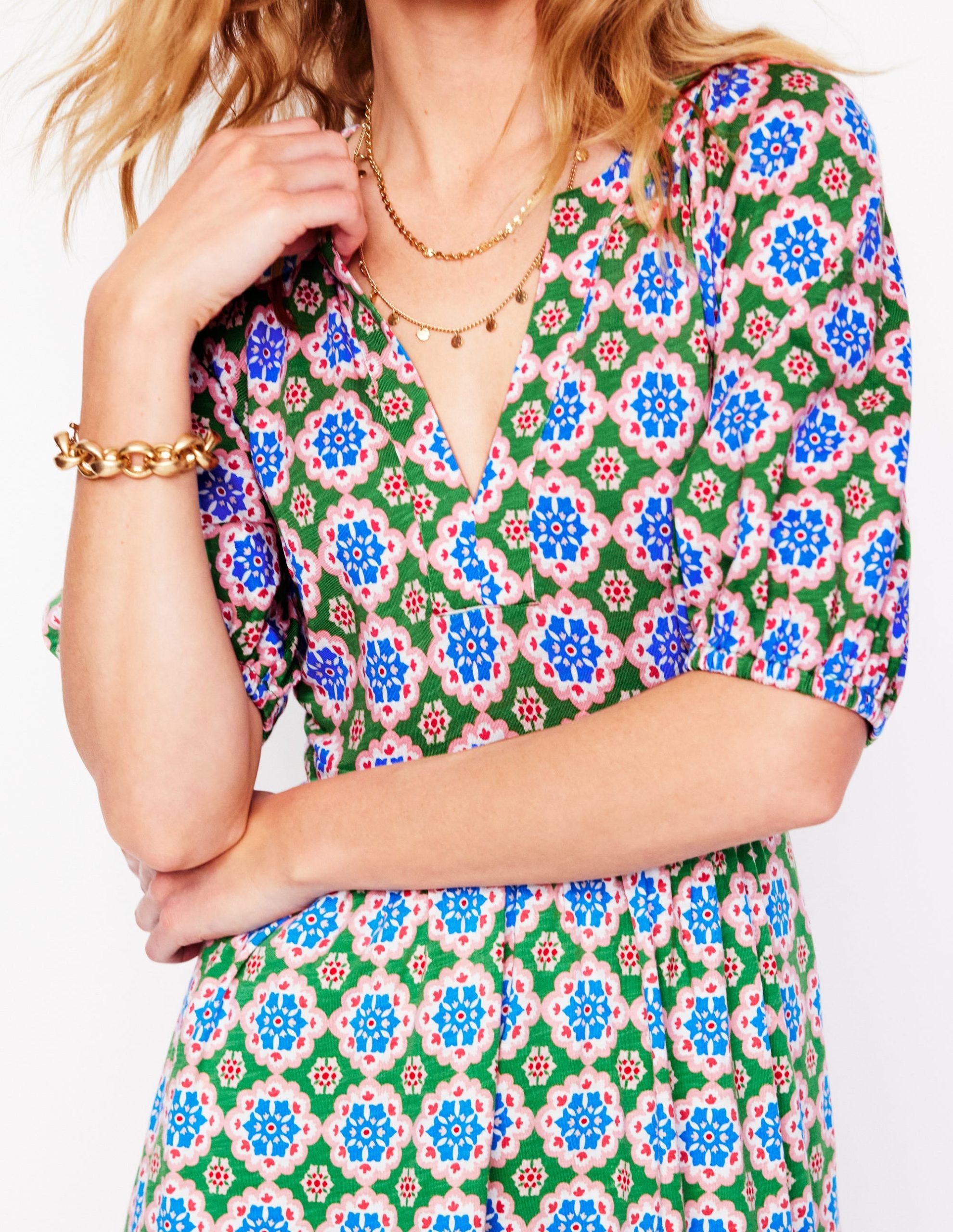 Piper Short Jersey Dress-Iguana Green. Bloom Geo
