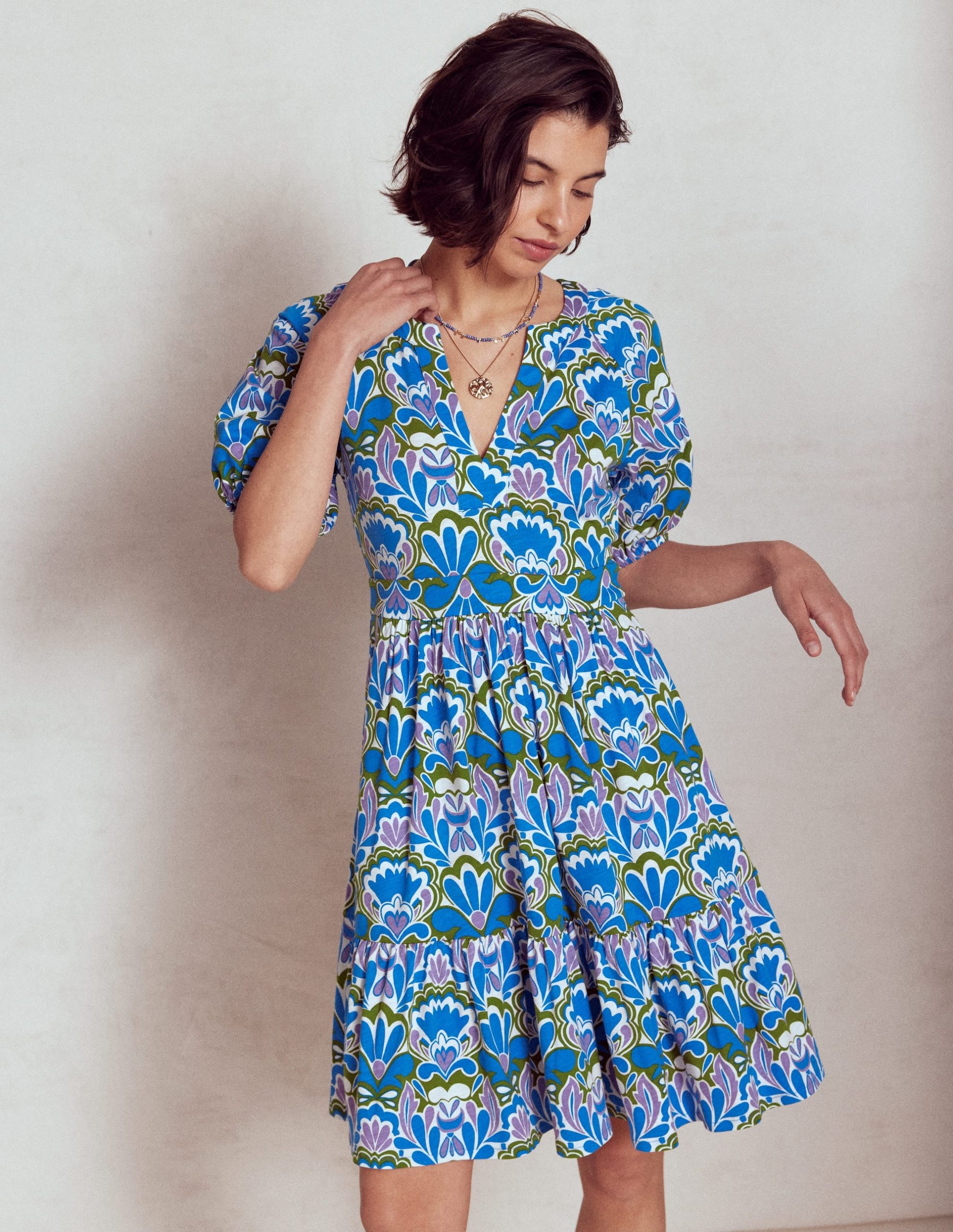 Piper Short Jersey Dress-Kingfisher Blue. Freesia Stamp