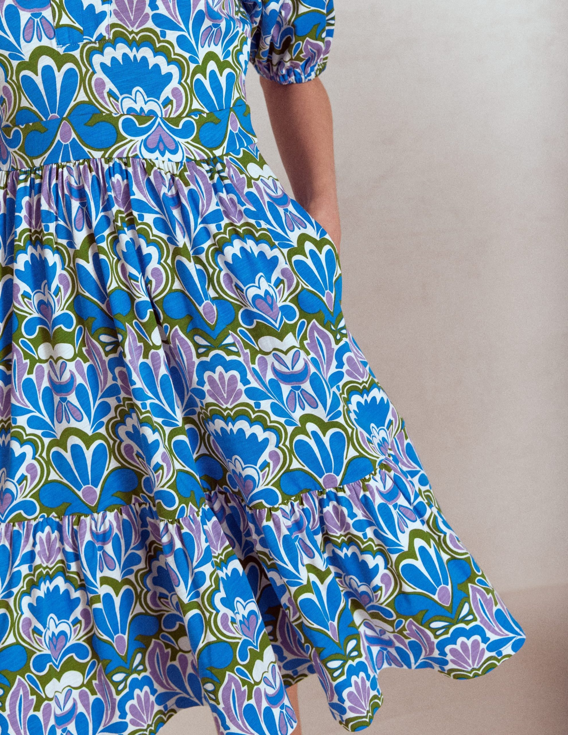 Piper Short Jersey Dress-Kingfisher Blue. Freesia Stamp