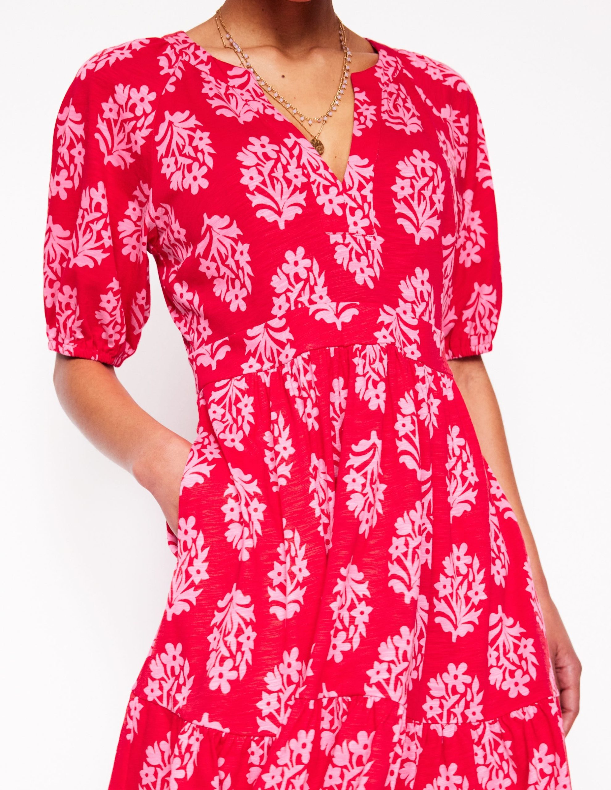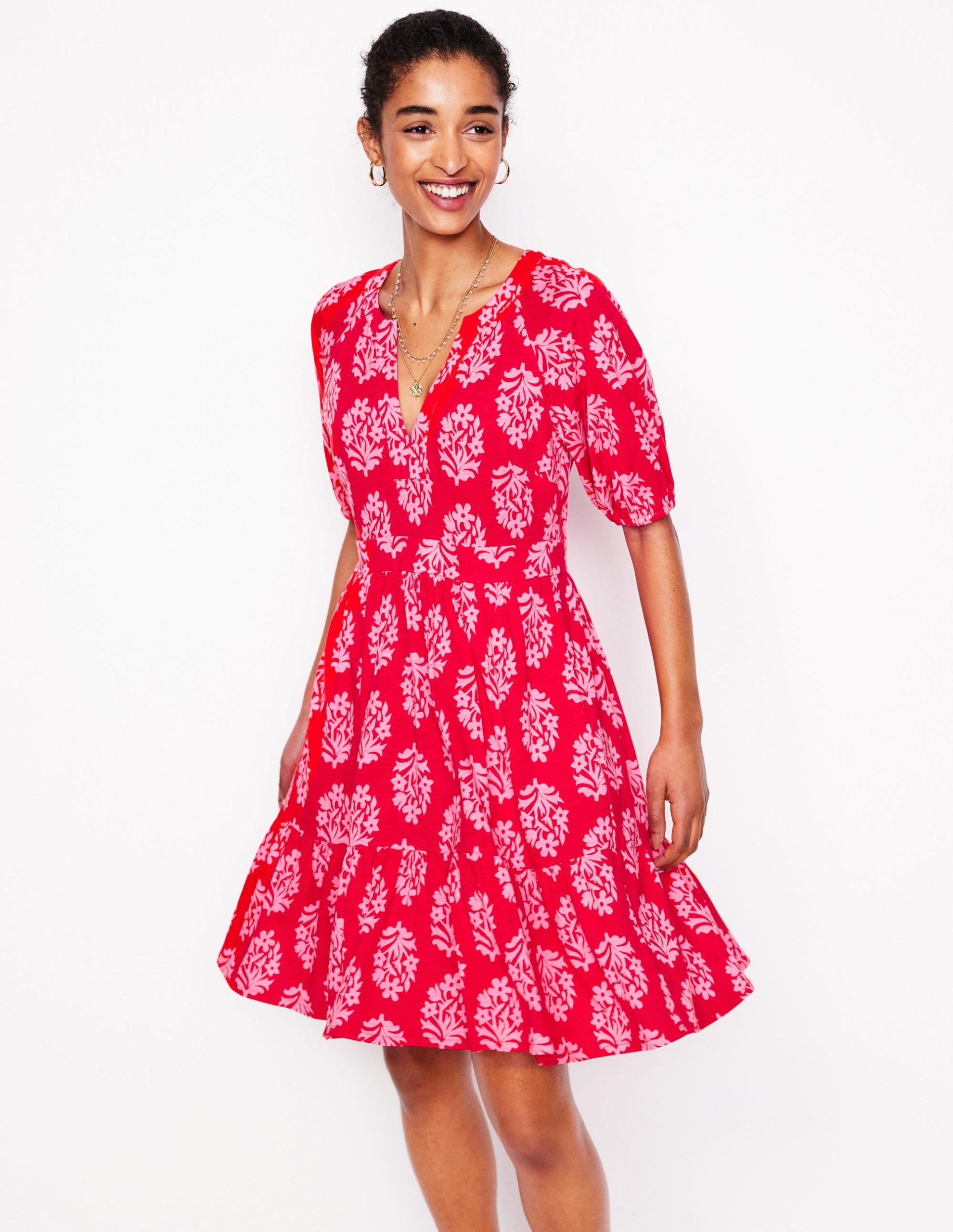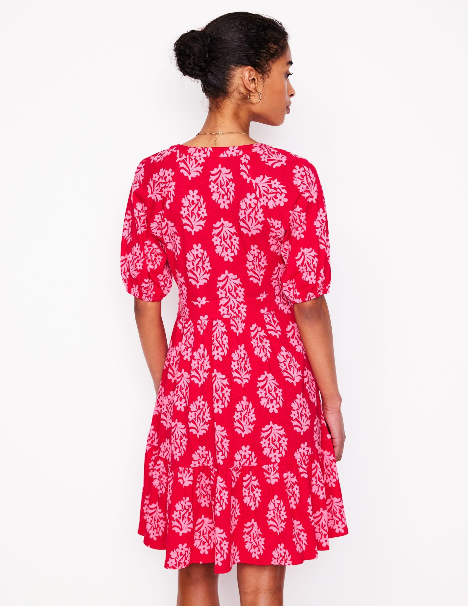 Piper Short Jersey Dress-Poppy Red. Posy Stamp
