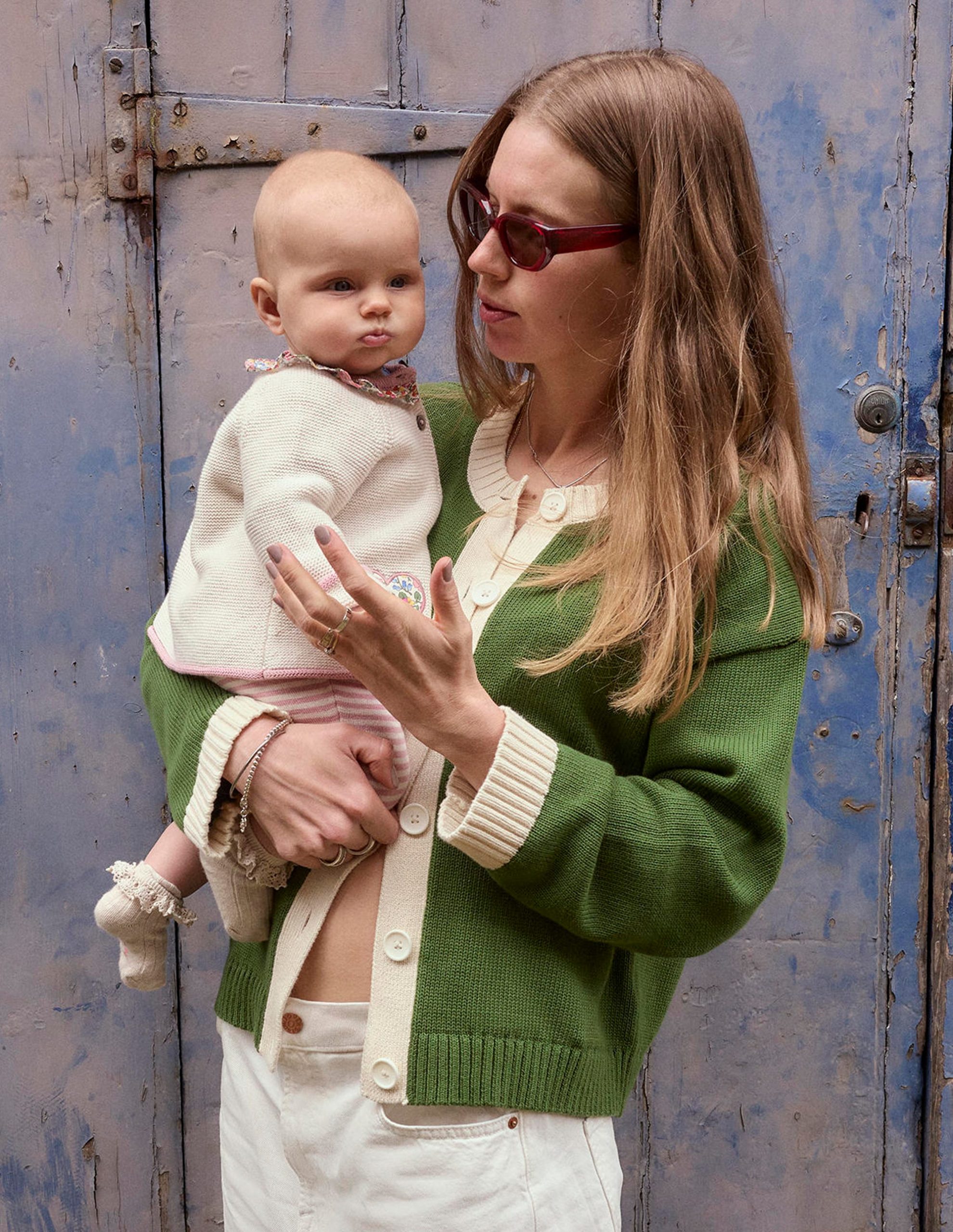 All the adorable features in one easy outfit. This knitted play set is spun from soft cotton with a floral frilly neck and matching appliqué hearts. The stripy bottoms have an elasticated waistband and ribbed cuffs for easy changes and comfort.