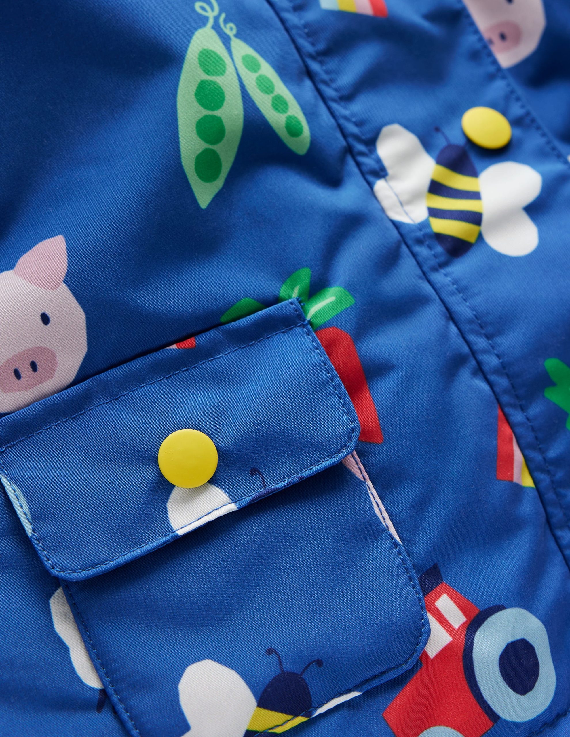 Rainy days are no match for our Fisherman jacket. It’s made from waterproof material and topped with a hood to keep Minis dry. plus the playful print adds a spot of sunshine to even the gloomiest of days.