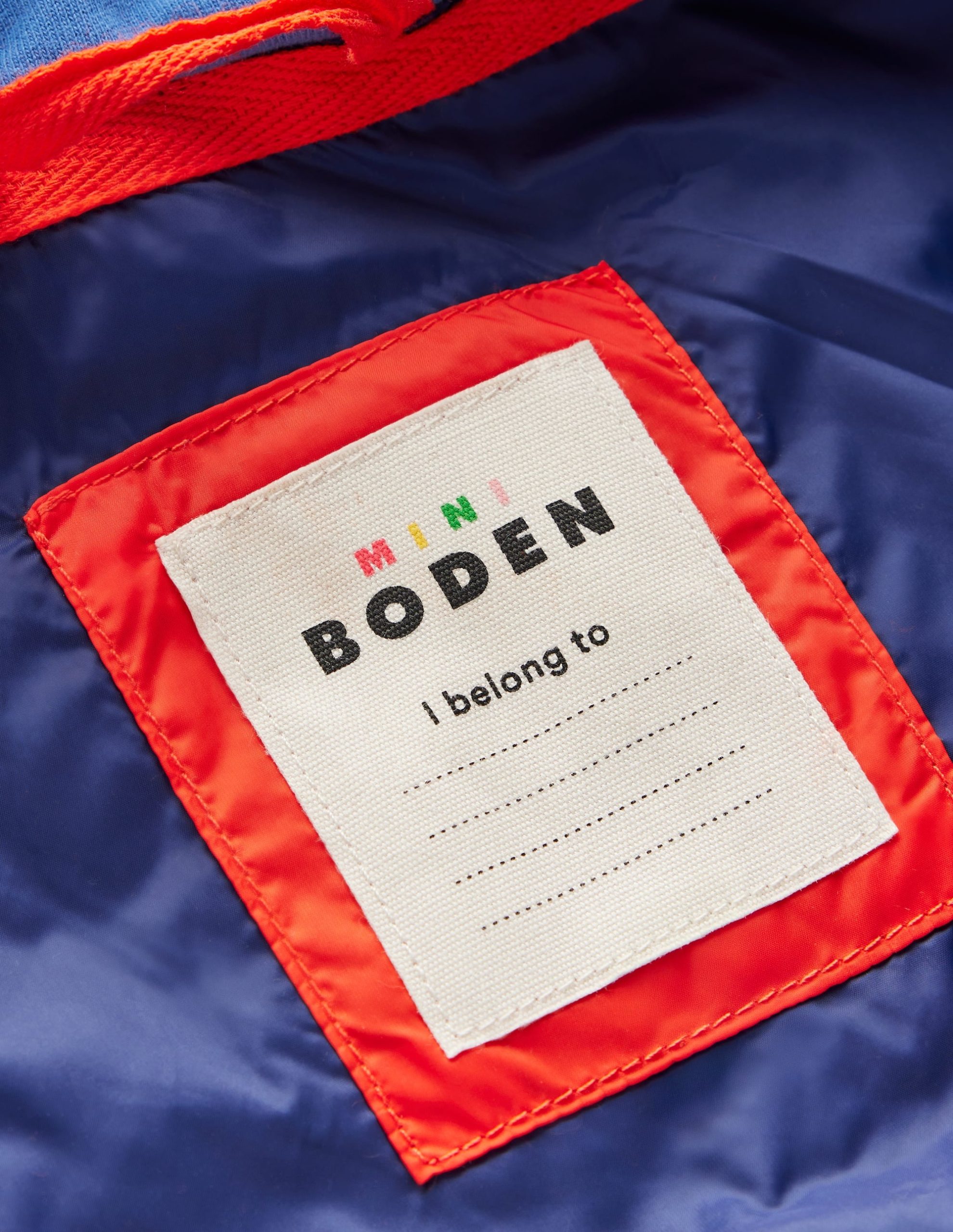 The borg panels make this colourful jacket so soft Minis will transform into huggable (and easy to spot) everyday explorers. The elasticated hood. quilting and two fleece-lined pockets will keep them toasty.