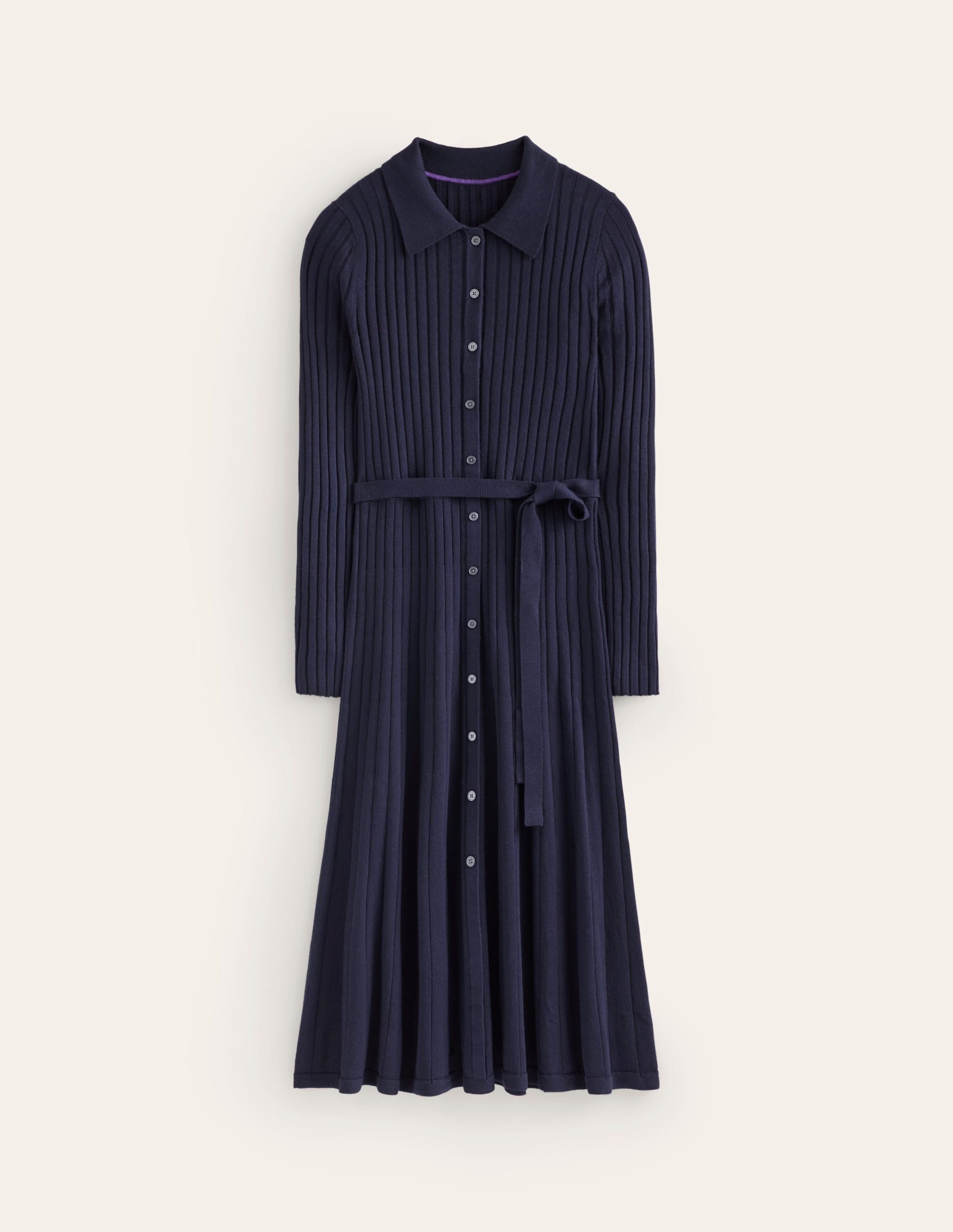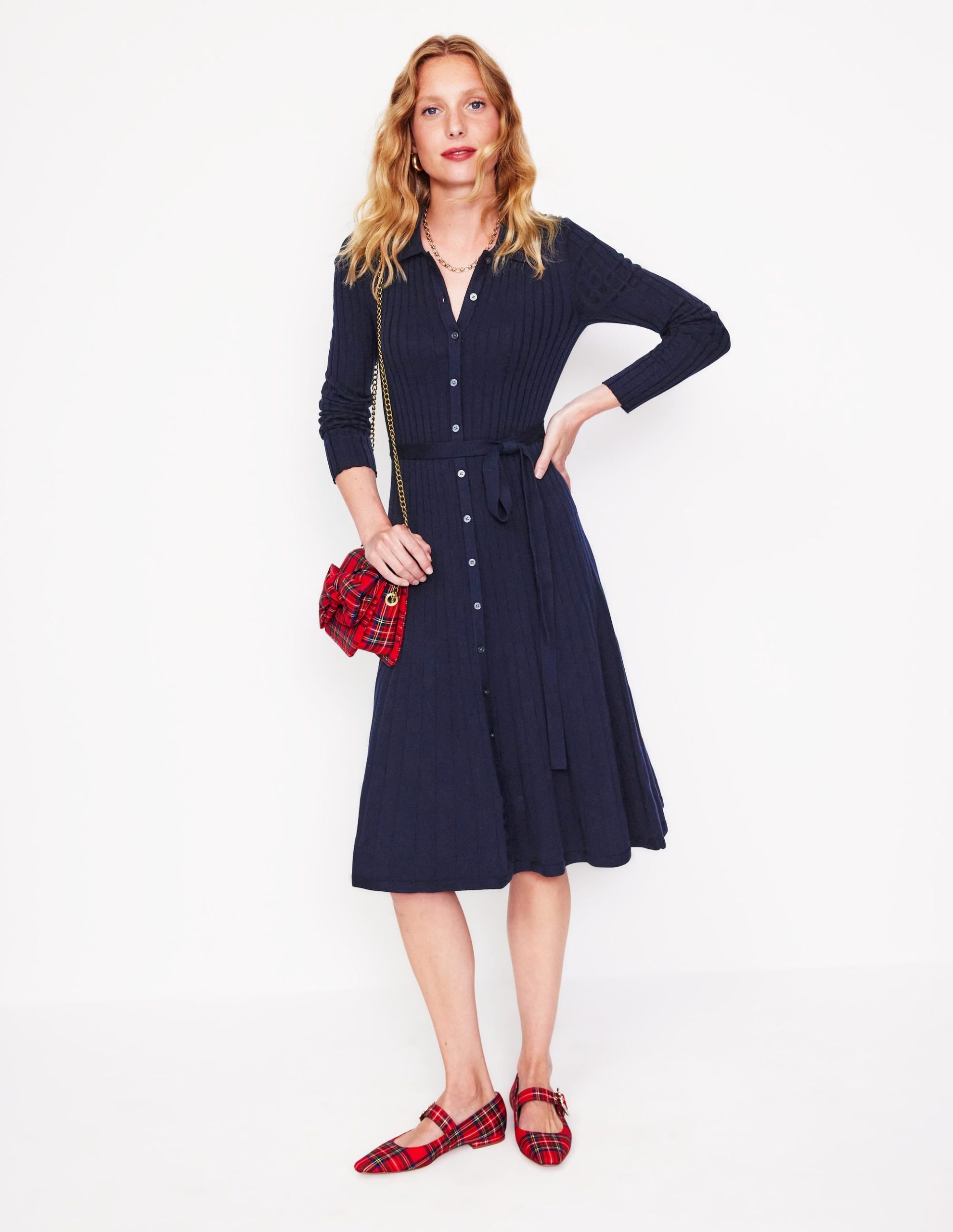 Our Rachel dress is made with a blend of cotton and wool for that all-important mix of comfort and warmth. The ribbed fabric hugs the body with a belt to add definition across the waist. Pair with knee-high boots for a timeless look.
