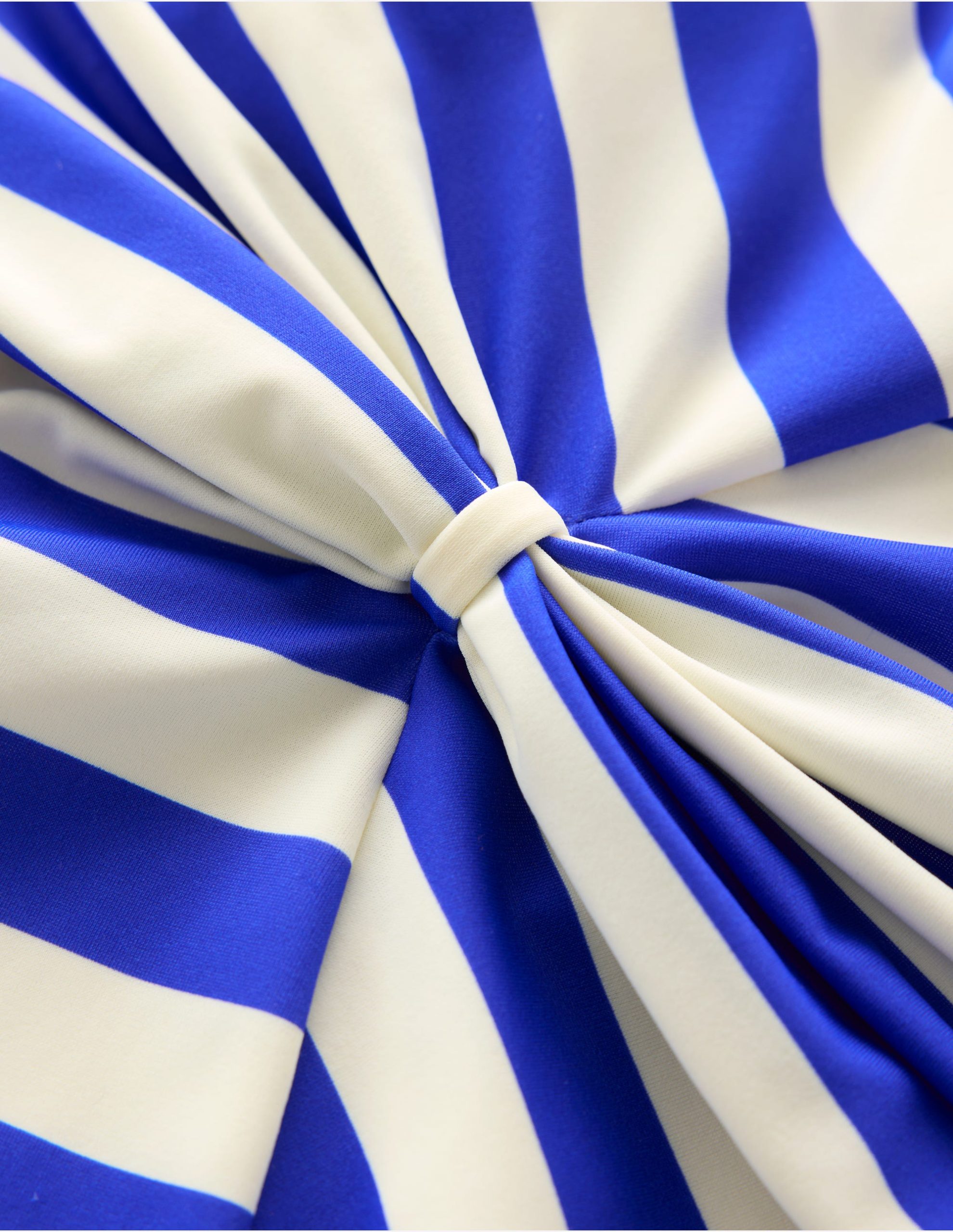 Ruched Loop Swimsuit-Blue and Ivory Stripe