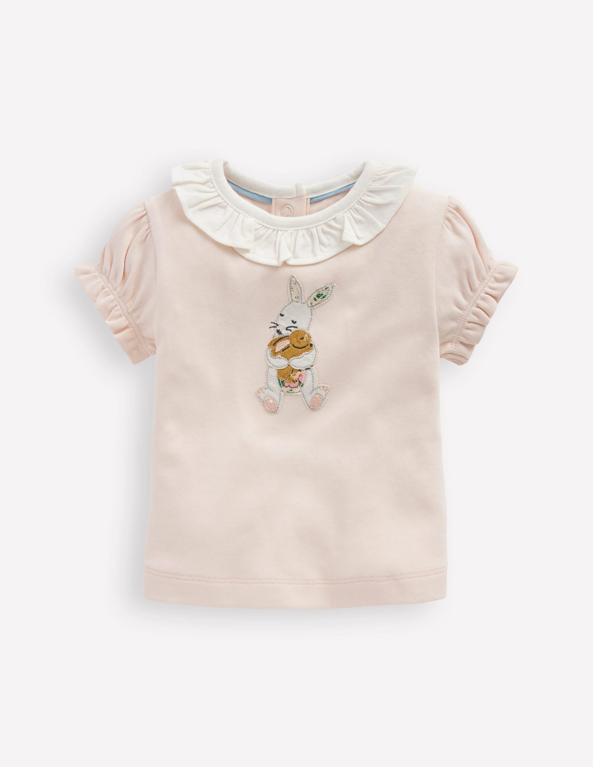 We designed a warmer-weather version of our ruffle T-shirt. Think: short frilled sleeves. adorable animal motif and ?C of course ?C a ruffled neck.