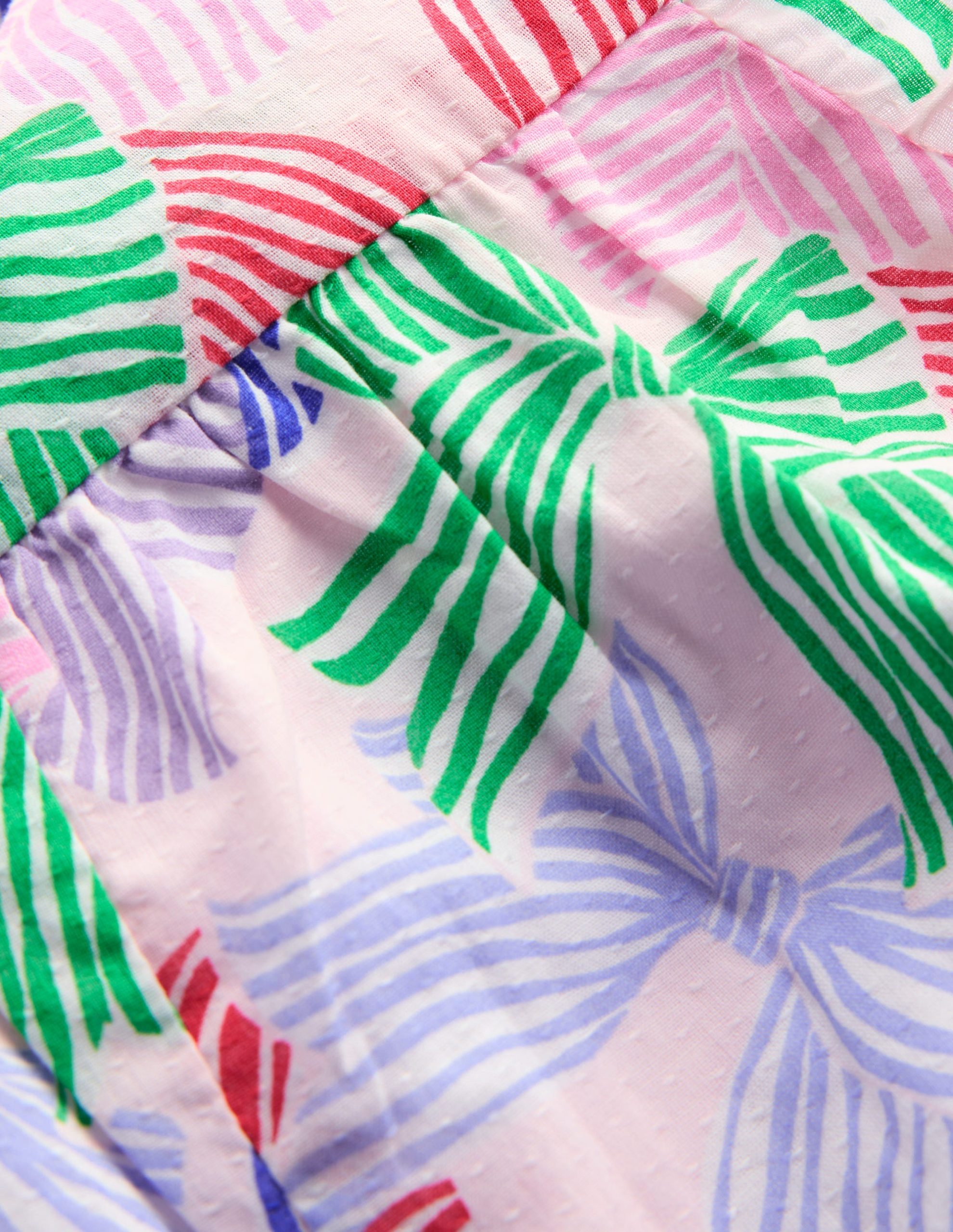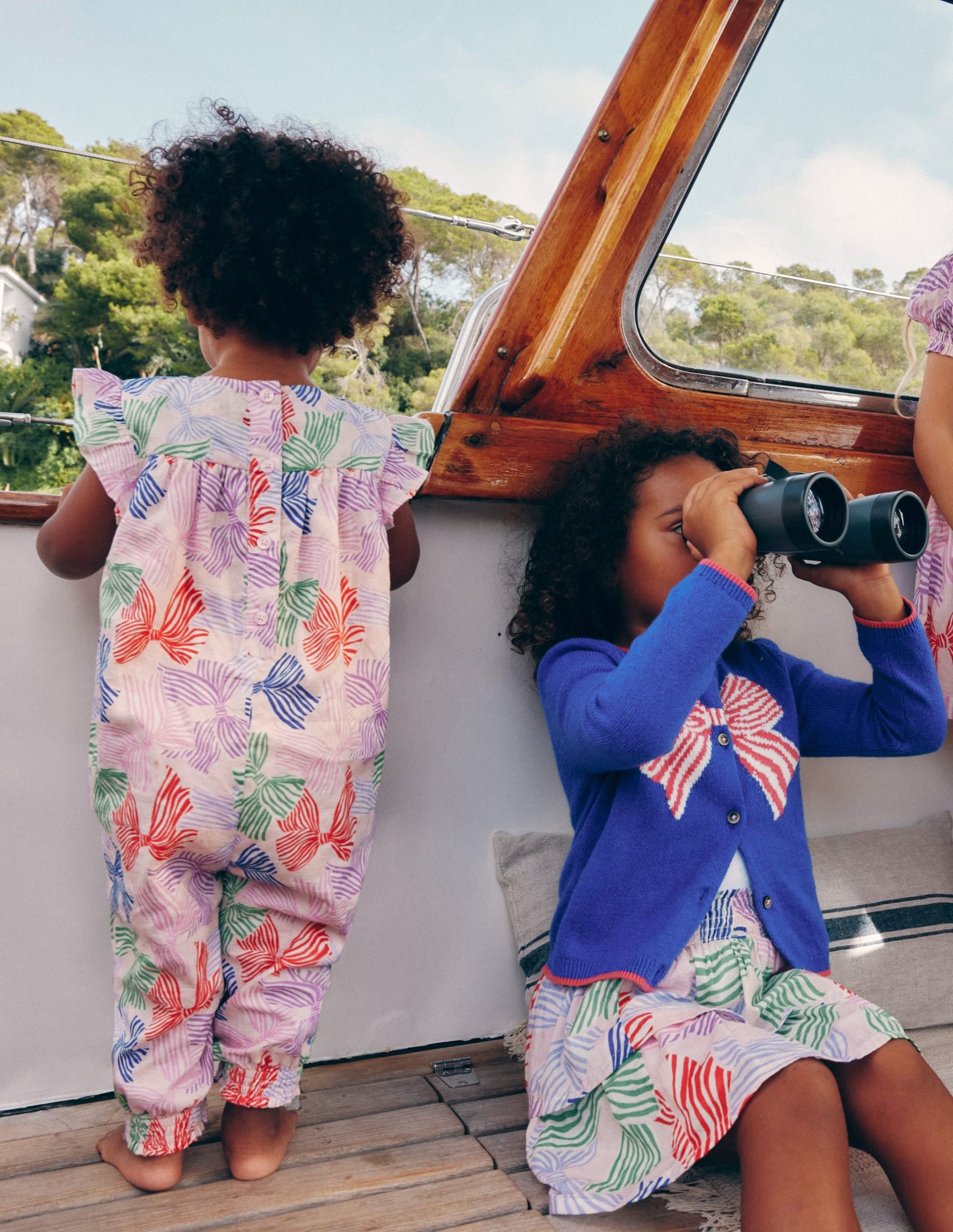 Minis will be wrapped up in ruffles and ready to roll. crawl or waddle in this frilly romper. We love the colourful prints and buttons at the back. Hidden poppers make quick changes easy.