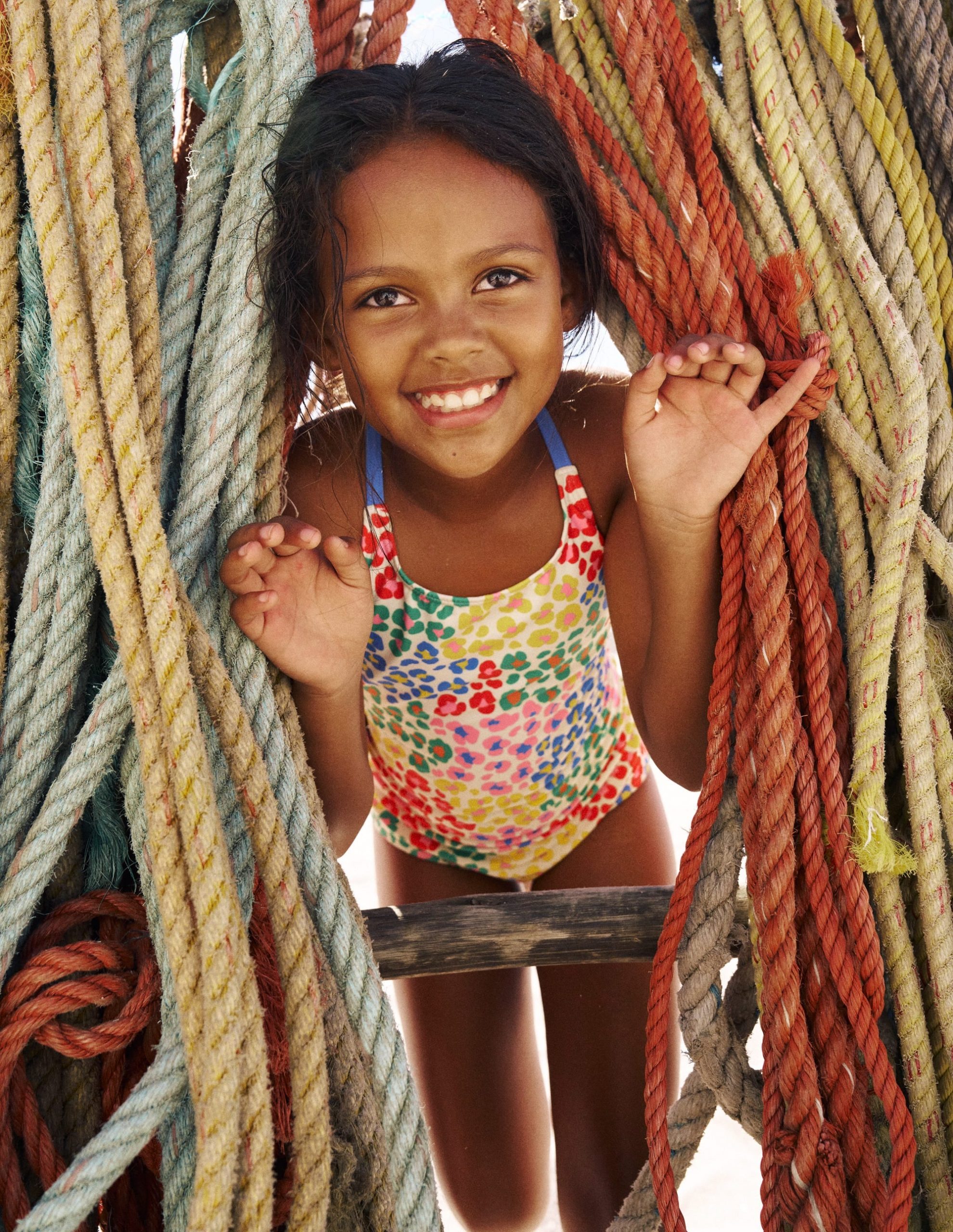 Lucky Minis slide down a rainbow and make a splash into summer with this multi-strap swimsuit. The Selena comes in lots of bright colours and bold patterns. That’s why we love her.