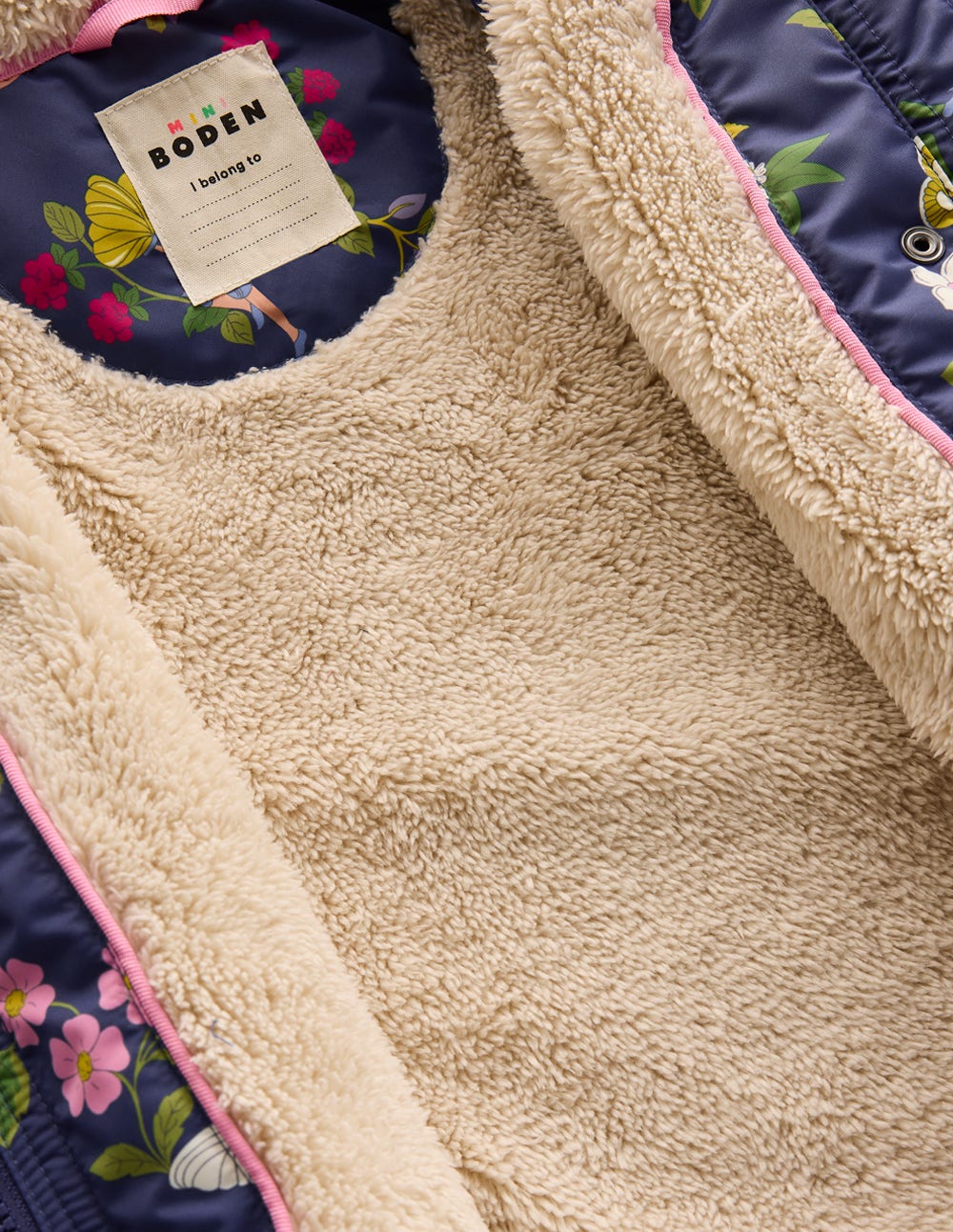 Staying dry is fun wearing this clever anorak. We’ve pulled out all our best tricks to keep the rain out while the faux sherpa lining will keep Minis snug as a bug. Choose from a variety of exciting prints.