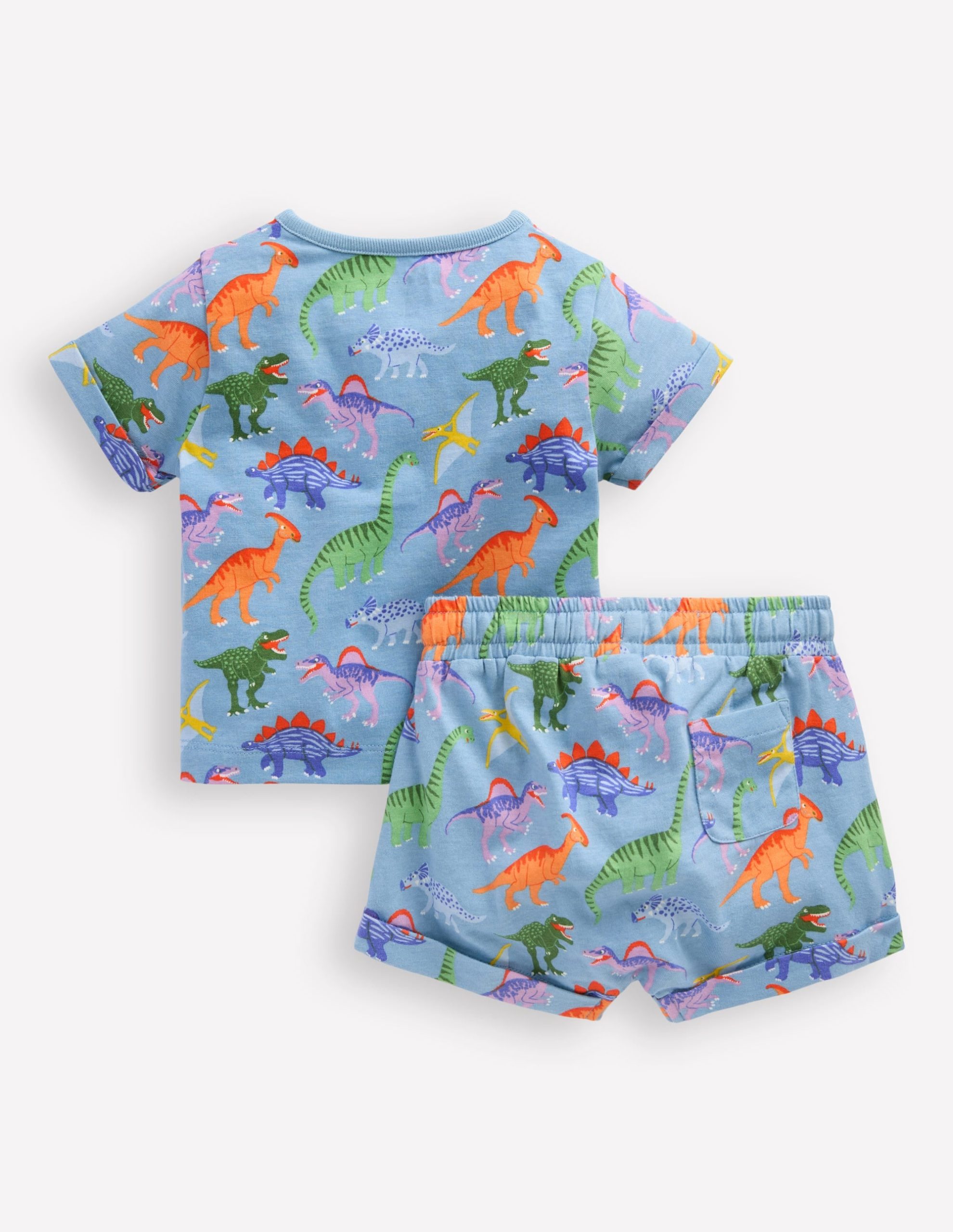 Short Sleeve Printed Play Set-Vintage Blue Dinosaurs